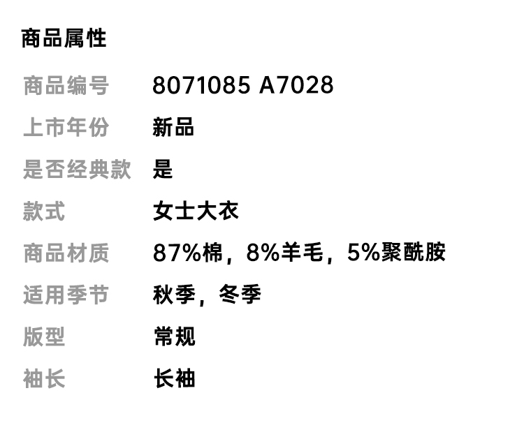 BURBERRY 巴宝莉 女士格纹花呢轻便大衣 格子 8071085 A7028