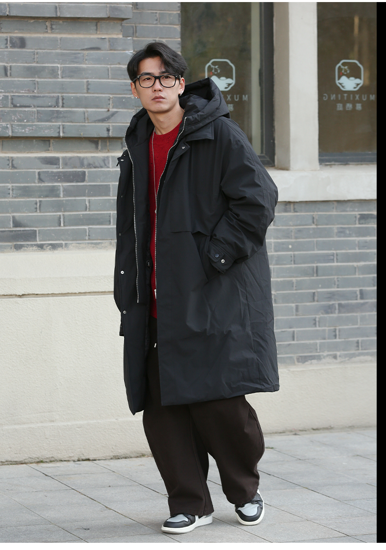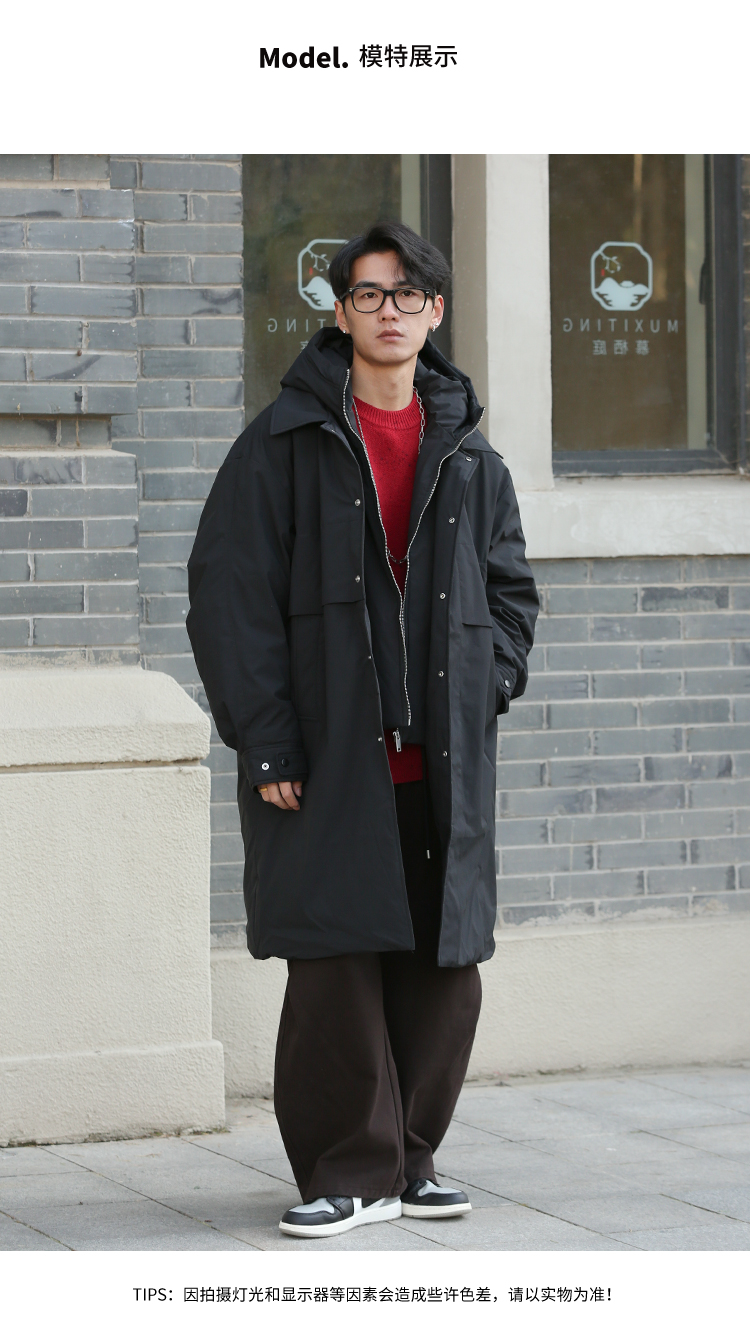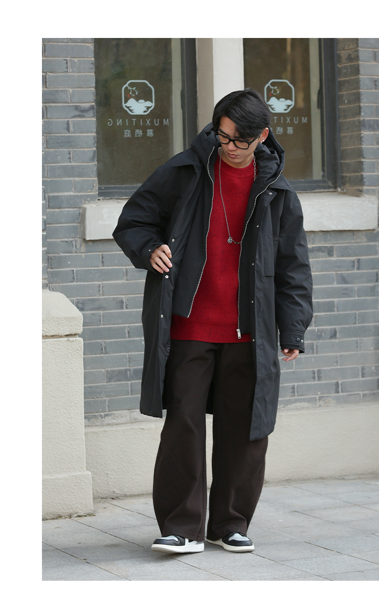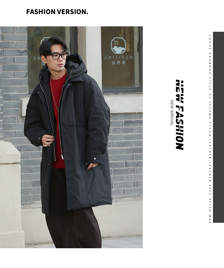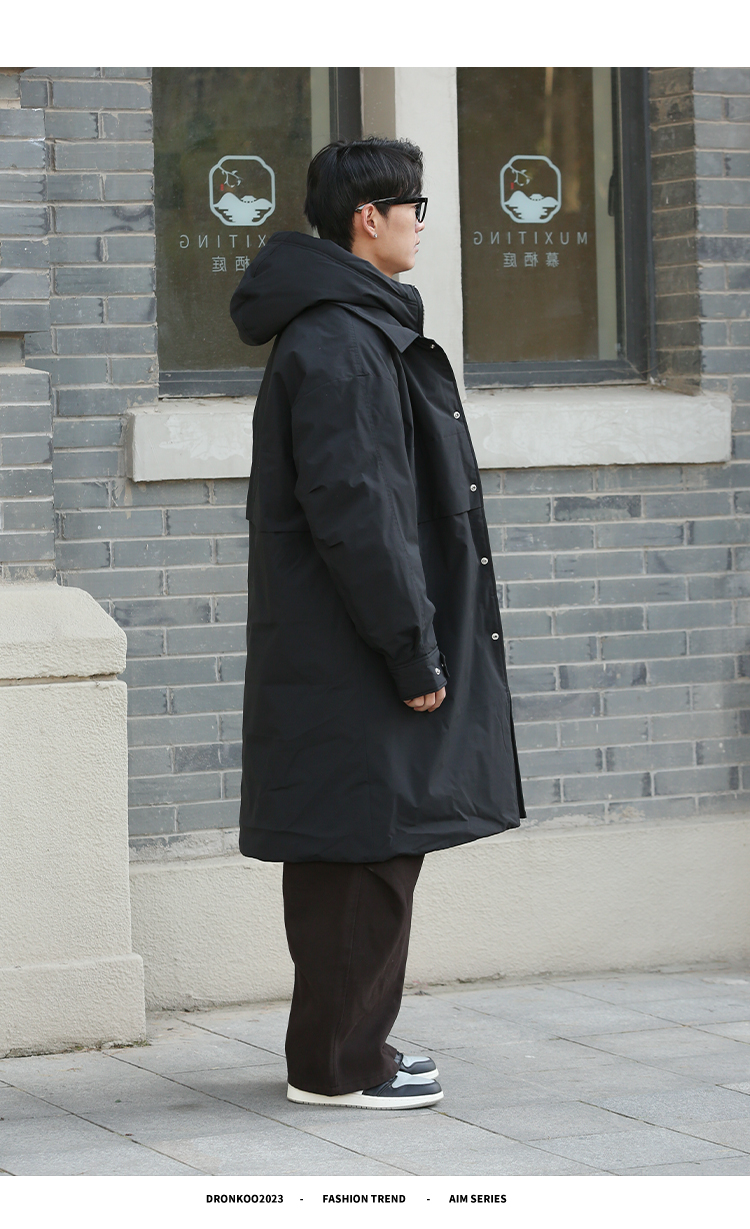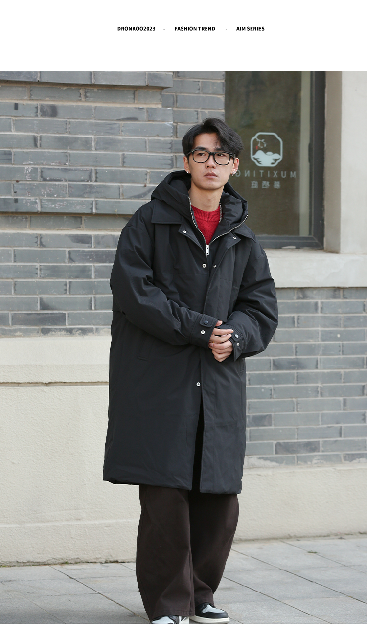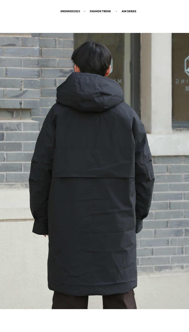 DRONKOO 2025 翻领加连帽假两件活页中长款厚羽绒服