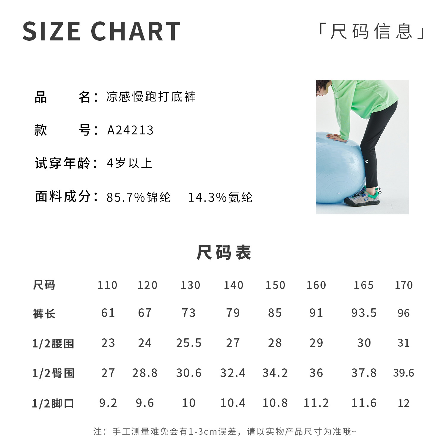 预售3.23发 cicochild儿童凉感透气运动瑜伽裤2024春夏UPF50+防晒高弹打底裤