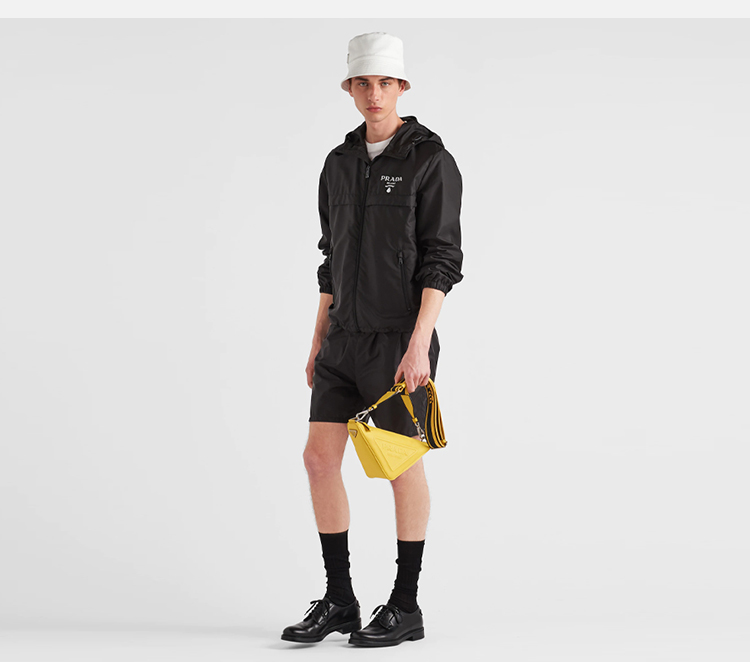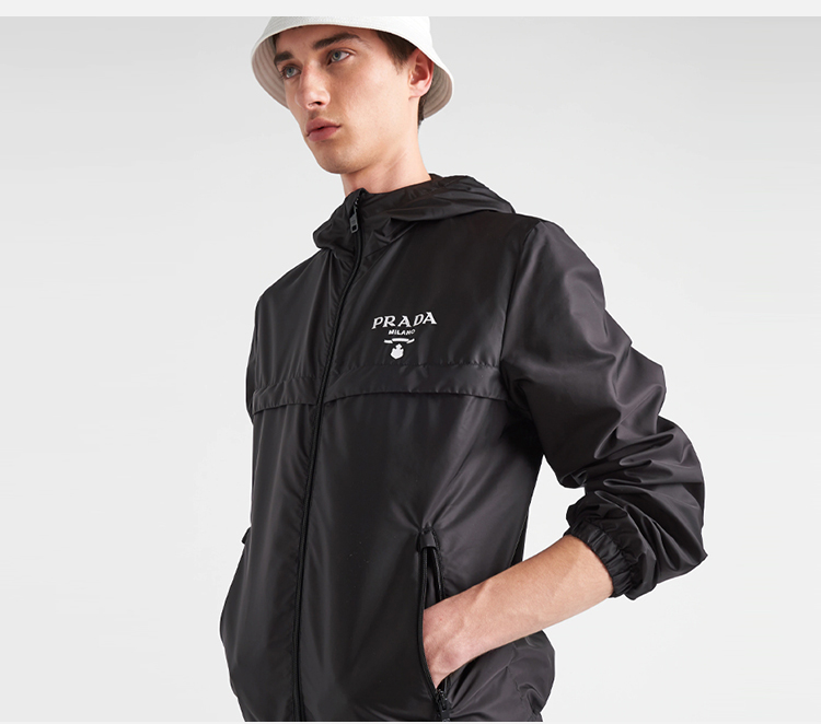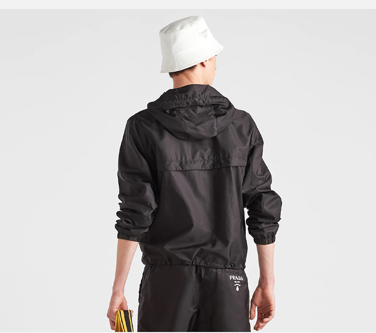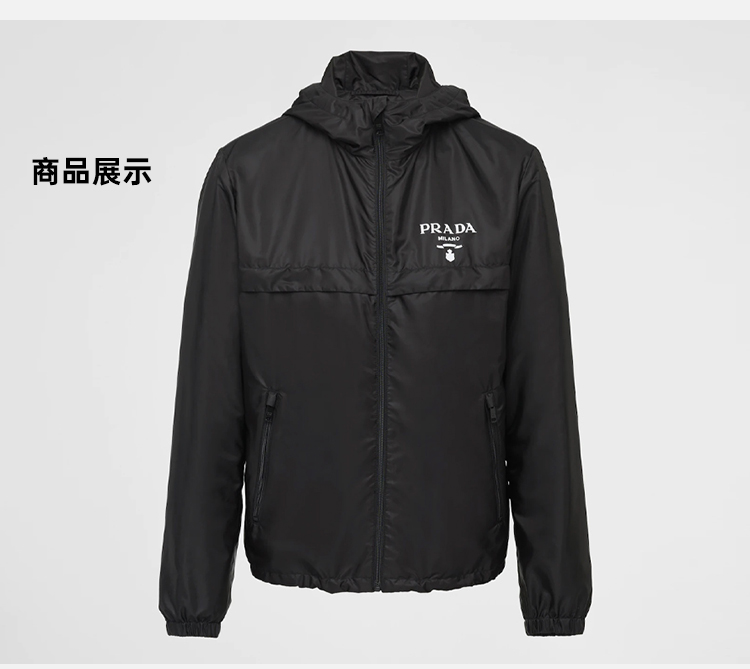 PRADA 普拉达 男士 Re-Nylon 再生尼龙字母徽标印花拉链连帽束口夹克外套 黑色 SGC052 1WQ9 F0002