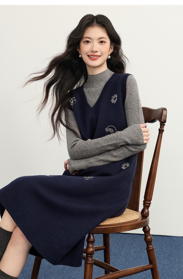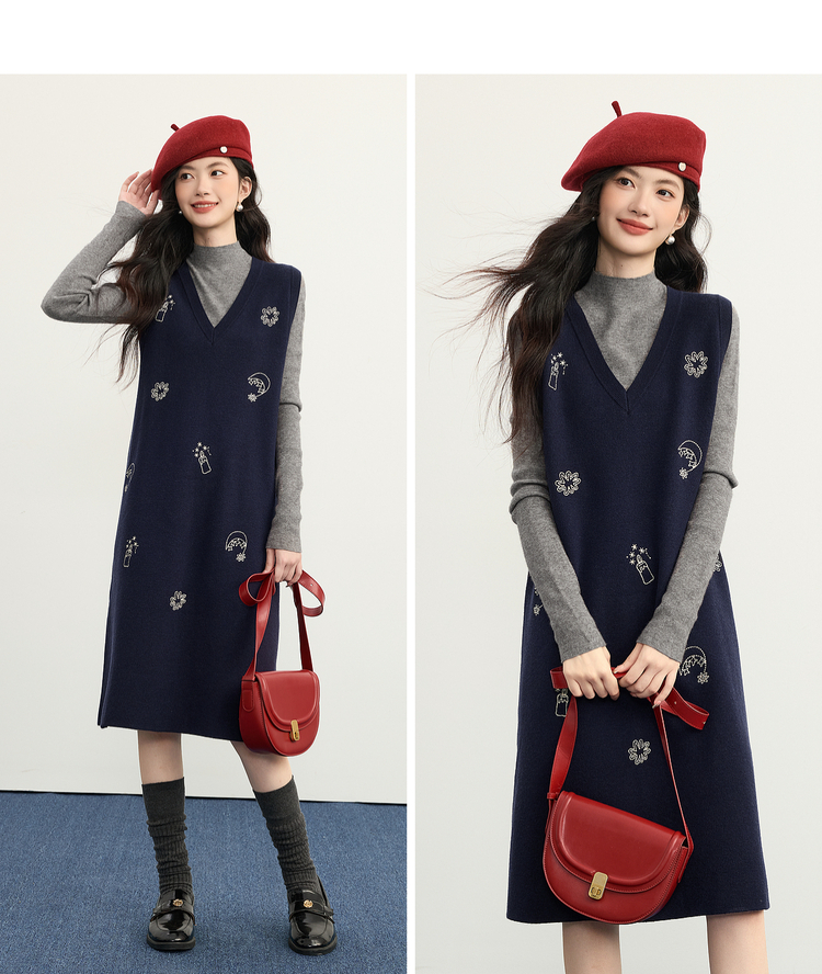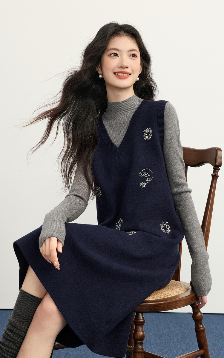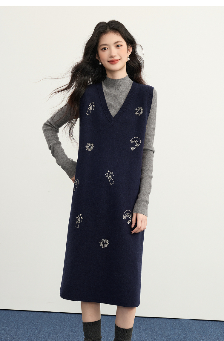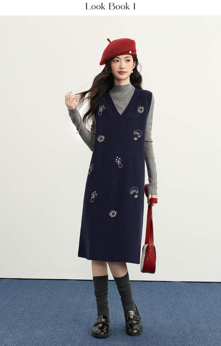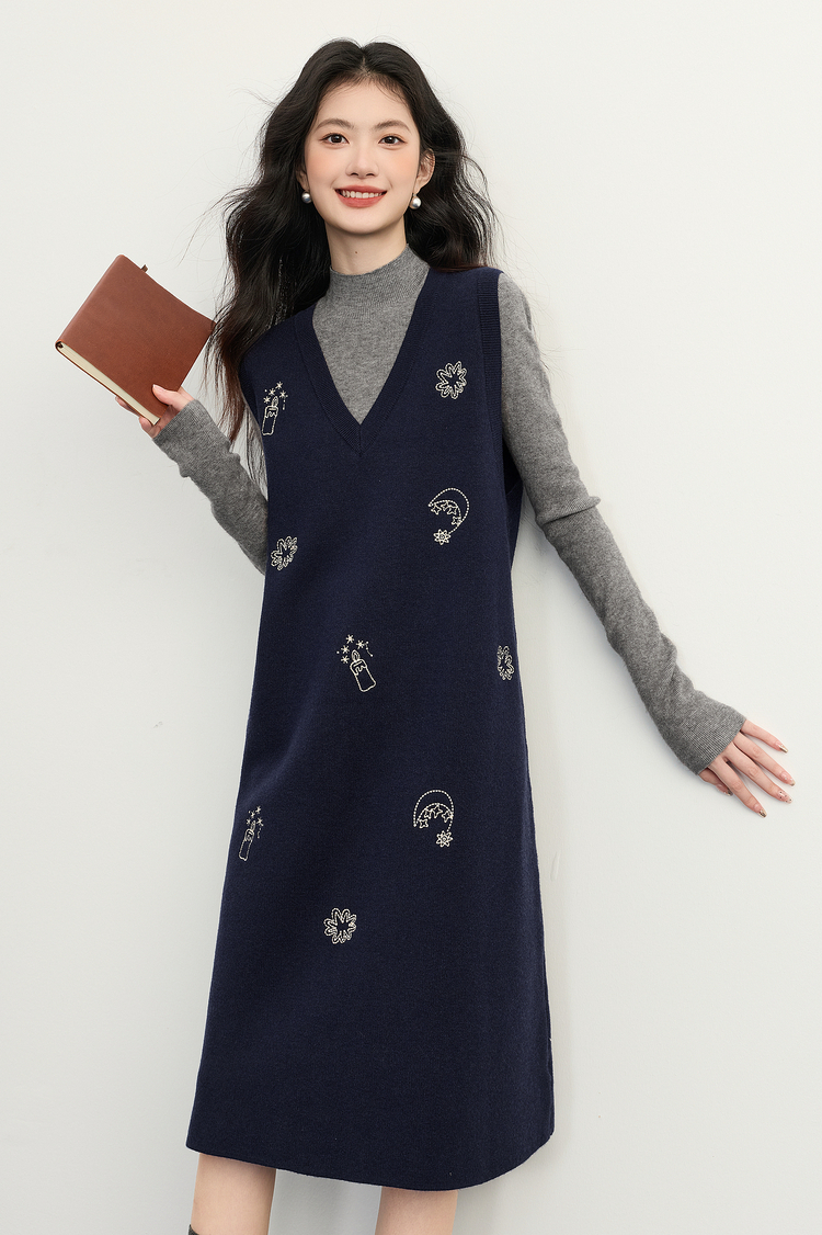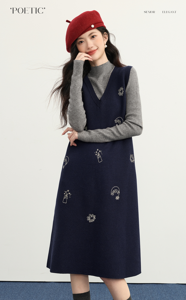 【11/26新品】熙世界【日月星辰】千金风刺绣V领背心裙子女秋冬新款无袖连衣裙