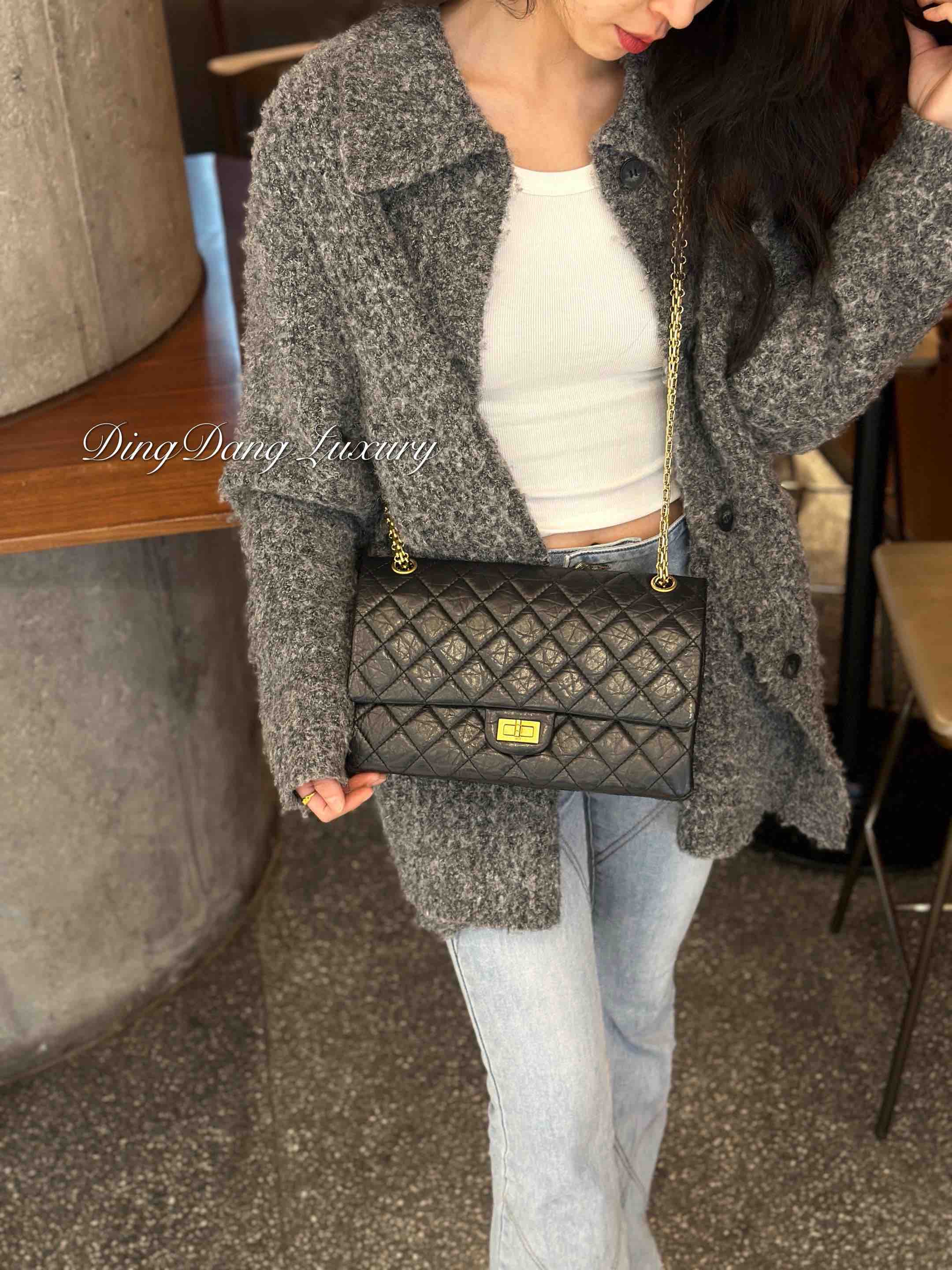 正品二手 Chanel 中号 黑金 油蜡牛皮 2.55 单肩包🪓98新 28*18 镭射25开 配件:防尘袋。内里微微使用感 时尚经典款