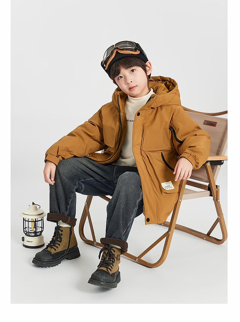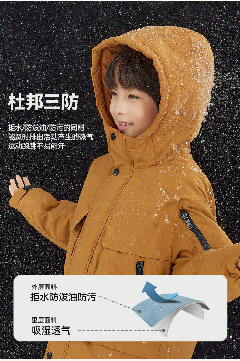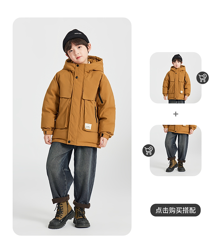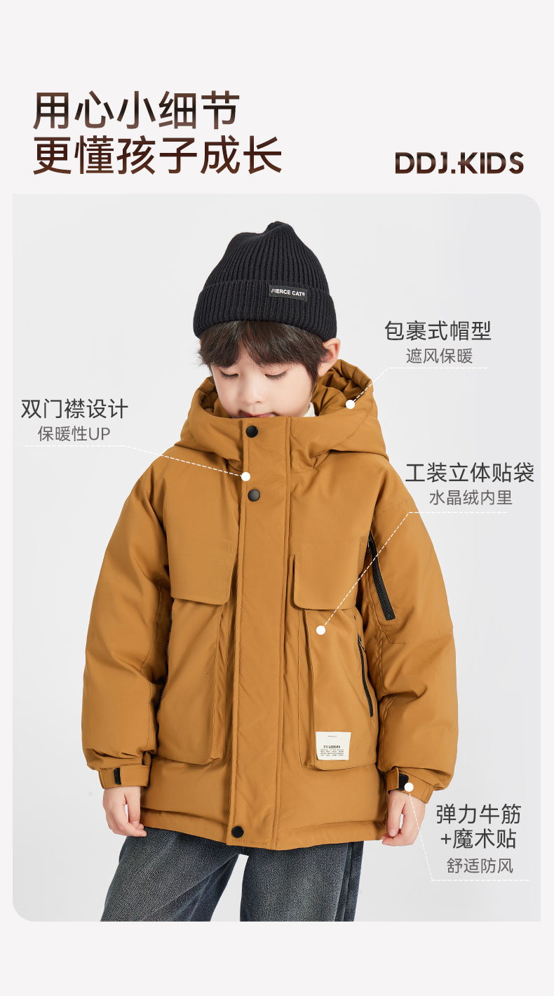 【团购价279.9】多多家男童工装羽绒服三防2024秋冬新款儿童中大童冬装保暖外套潮9709