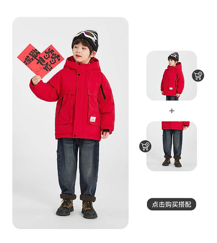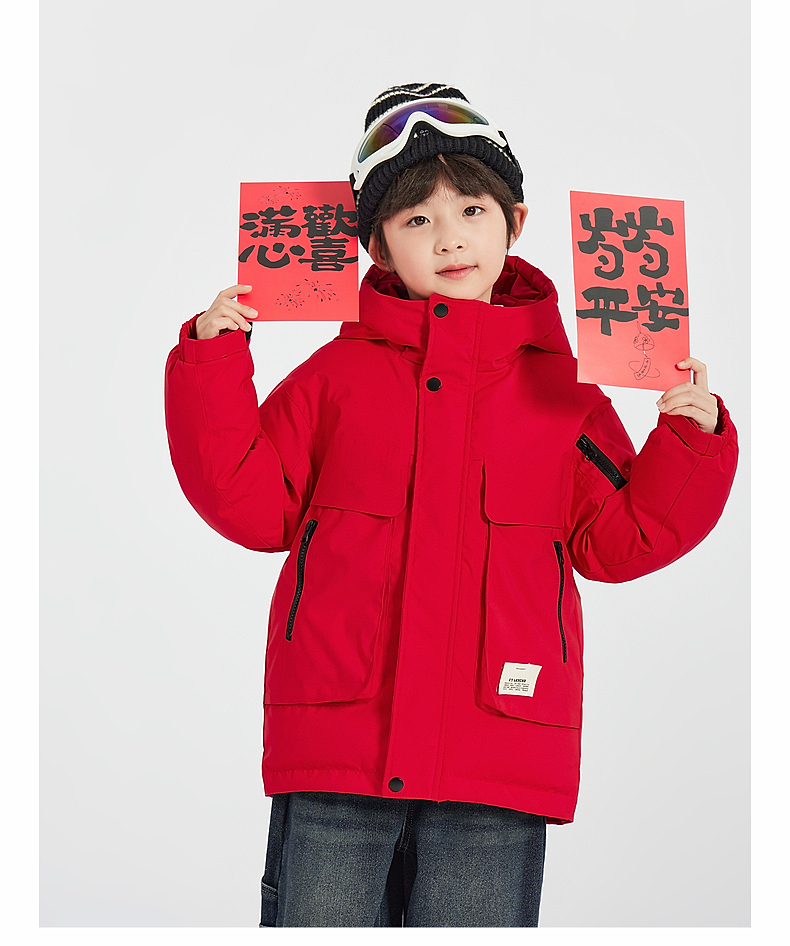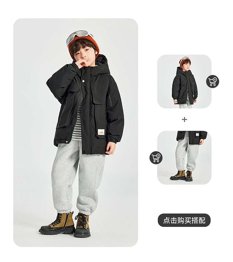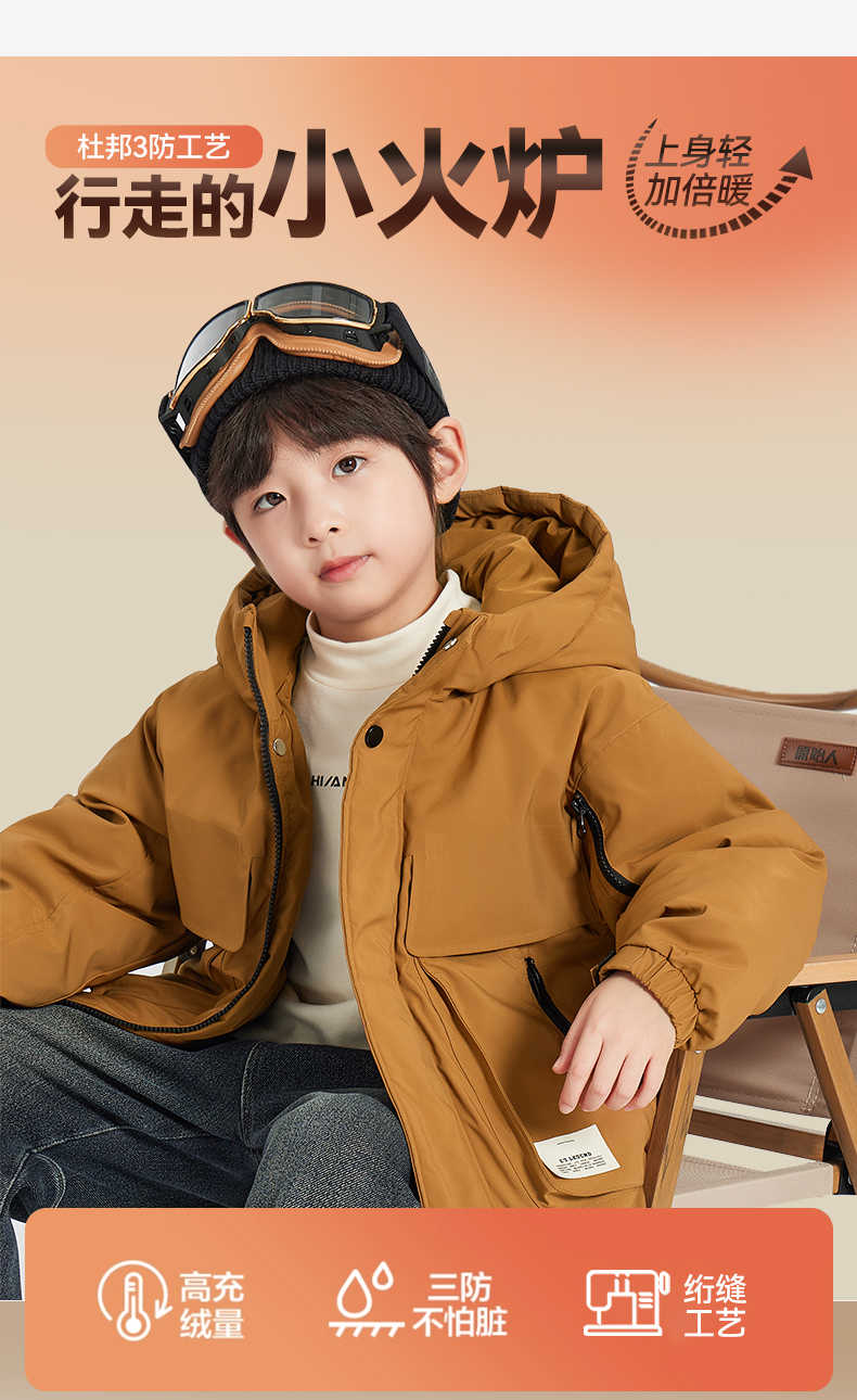 【团购价279.9】多多家男童工装羽绒服三防2024秋冬新款儿童中大童冬装保暖外套潮9709