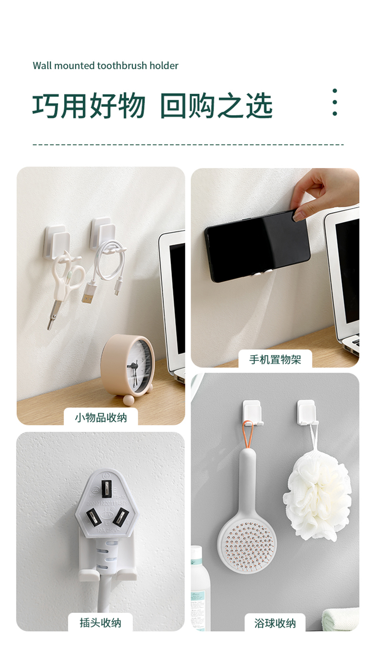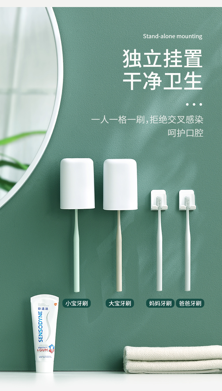FaSoLa 牙杯牙刷置物架壁挂式免打孔浴室卫生间牙刷架