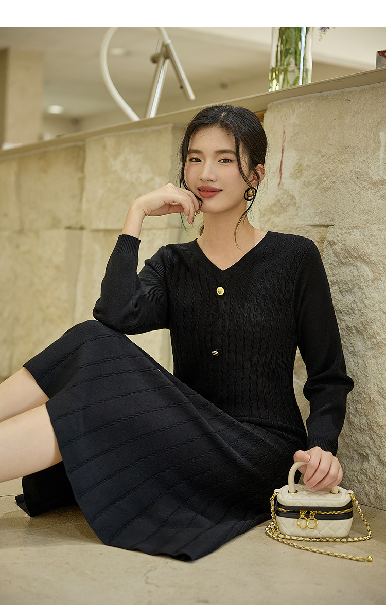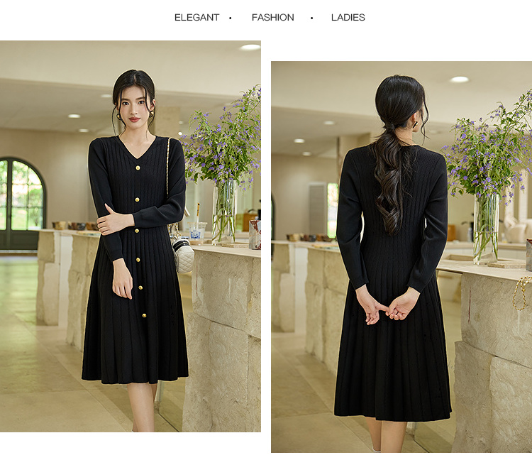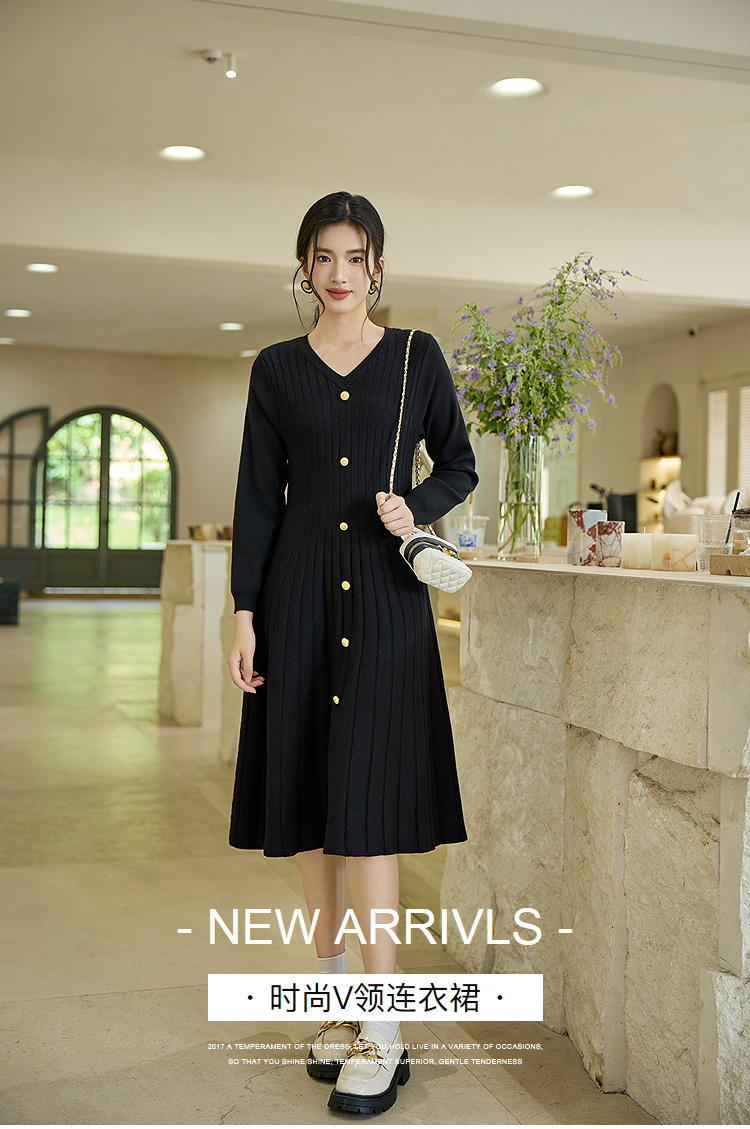 奢姿大码女装2025秋季时尚竖条纹设计V领连衣裙胖妹妹气质简约款9853894276