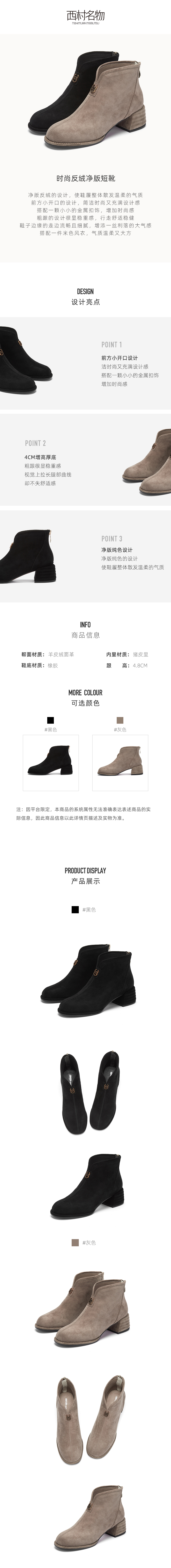 西村名物2020秋冬新款短靴羊皮绒中跟简约休闲女靴X20DS40441