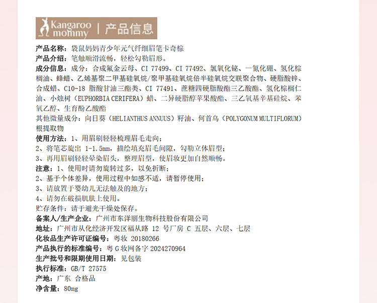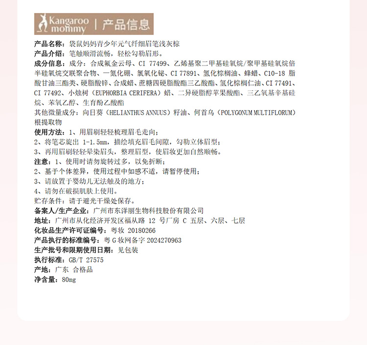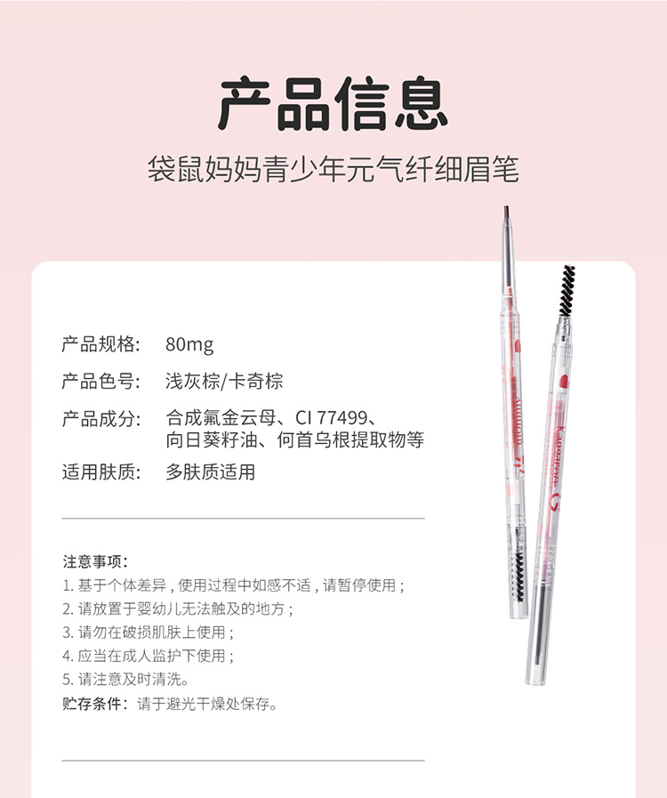 【青少年眉笔】自然顺滑持久不脱色青春期学生可用 青少年元气纤细眉笔(80mg)