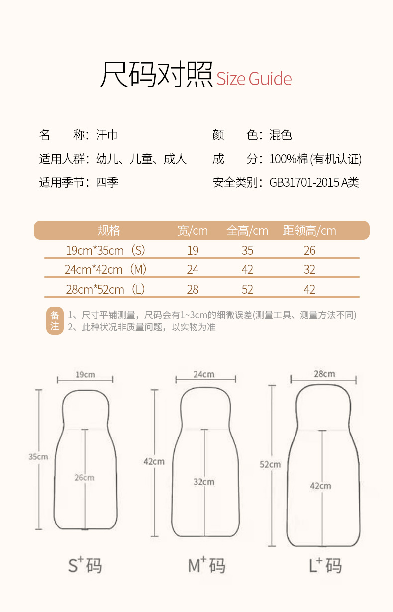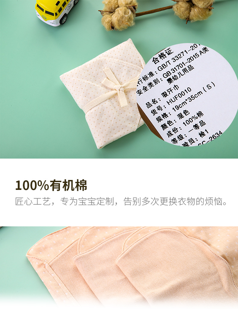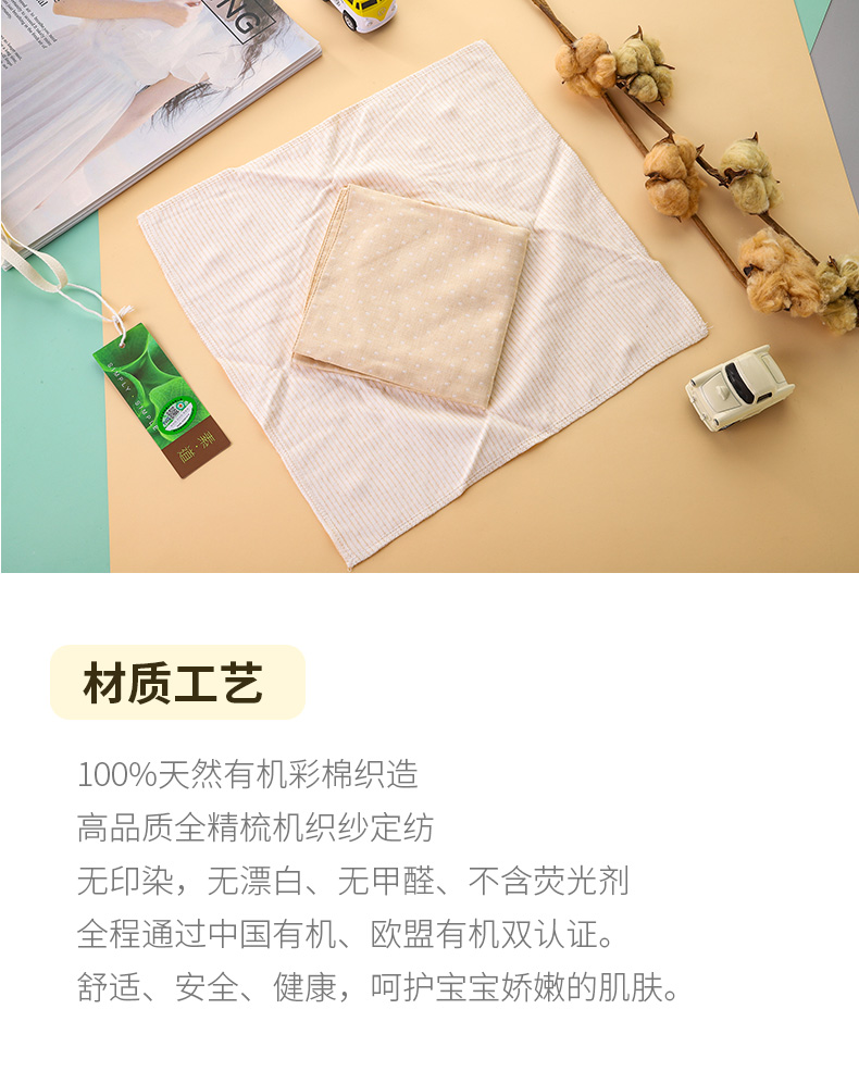 有机棉吸汗巾 垫背巾 宝宝汗巾 四季款 婴幼儿成人皆可用 A类标准 0%印染 0%漂白 0%甲醛 0%荧光剂 素道敦煌天然有机彩棉织造 舒适安全健康
