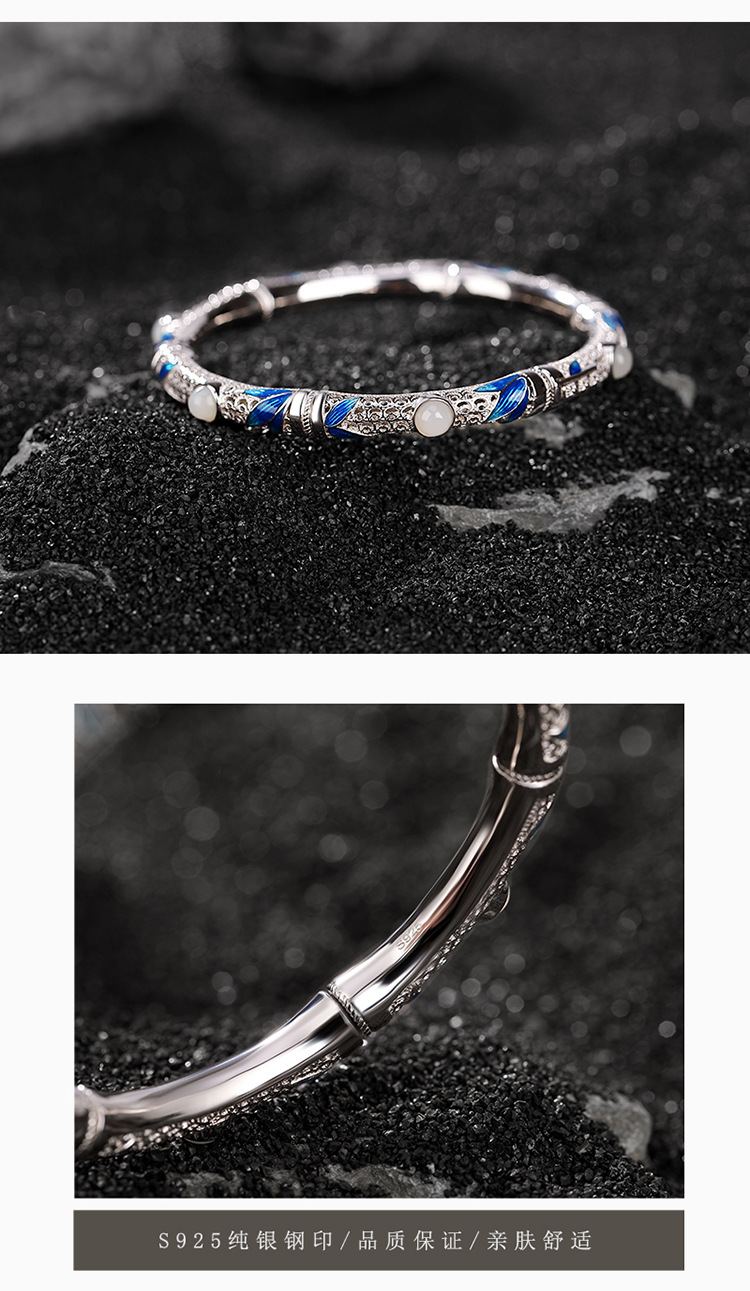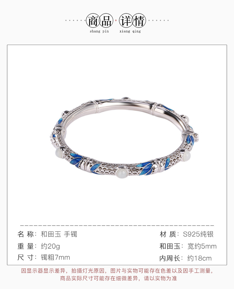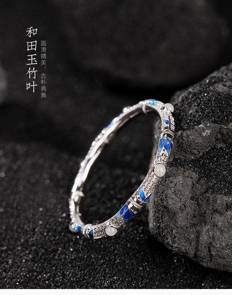 【韶华正茂】S925银和田玉竹叶手镯【CW-SZ01868】