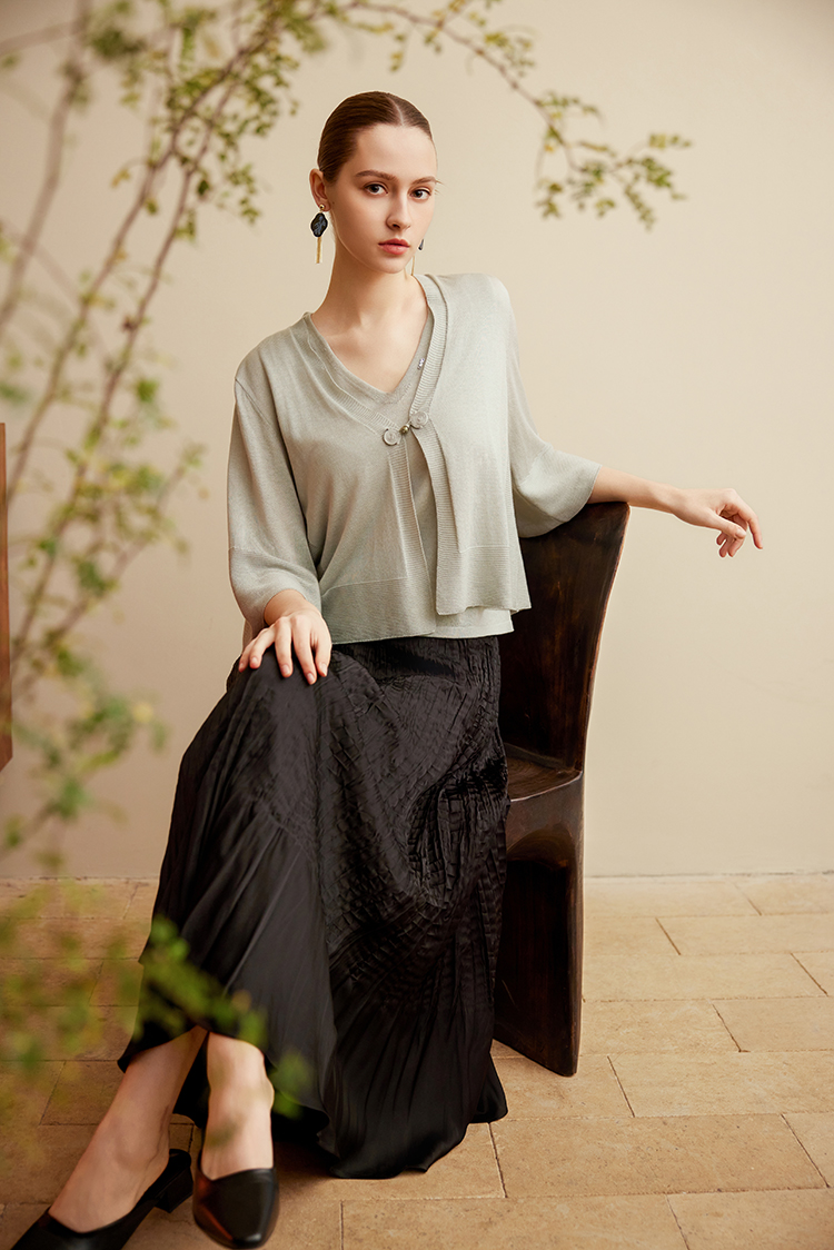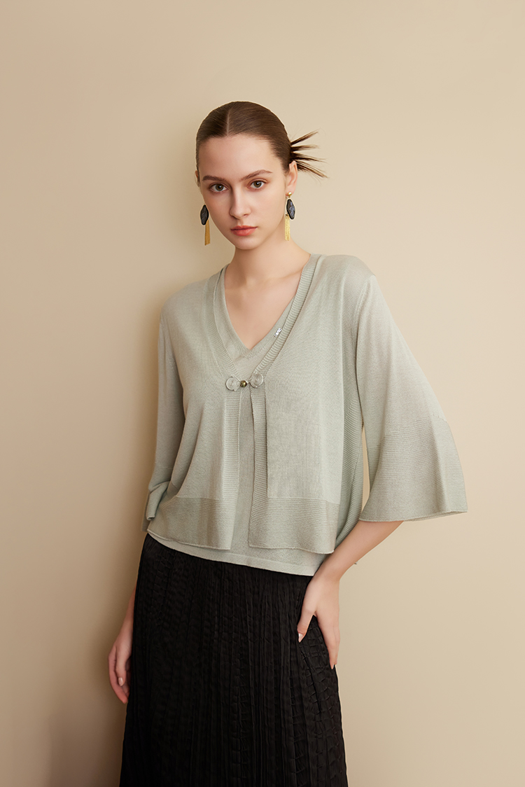 【一粒扣V领小开衫】25年春夏新品女士短款针织开衫时尚七分袖小外套