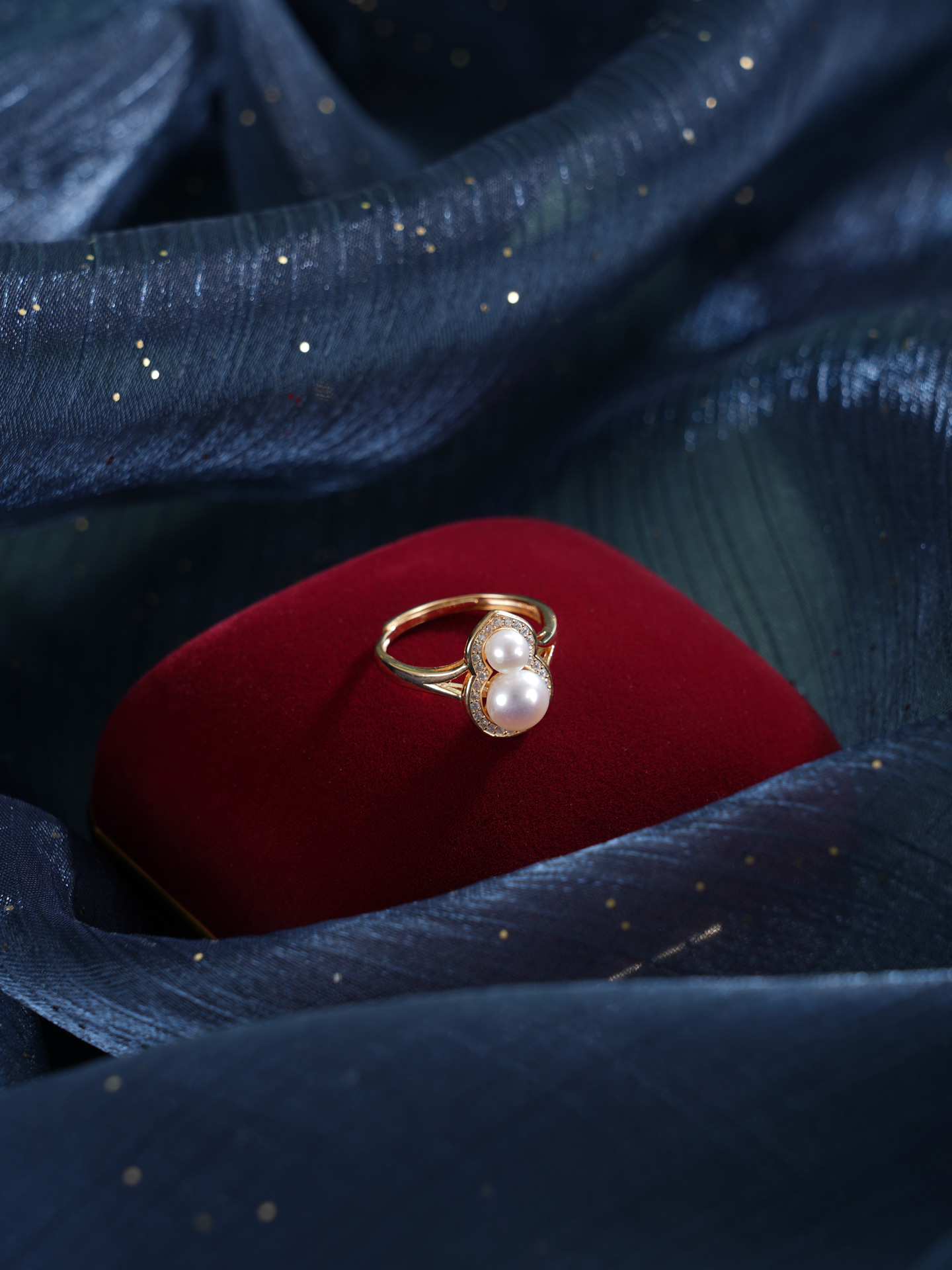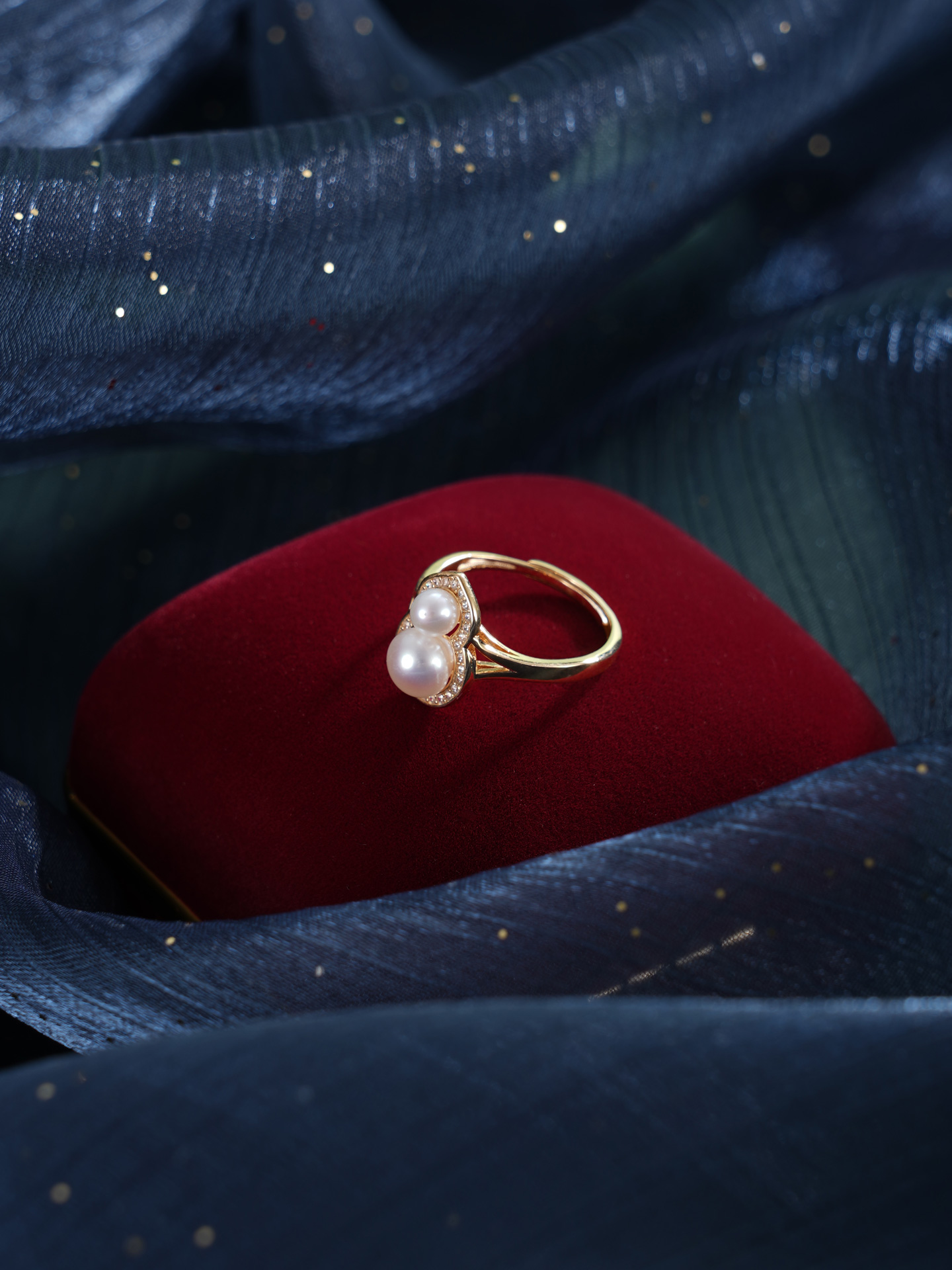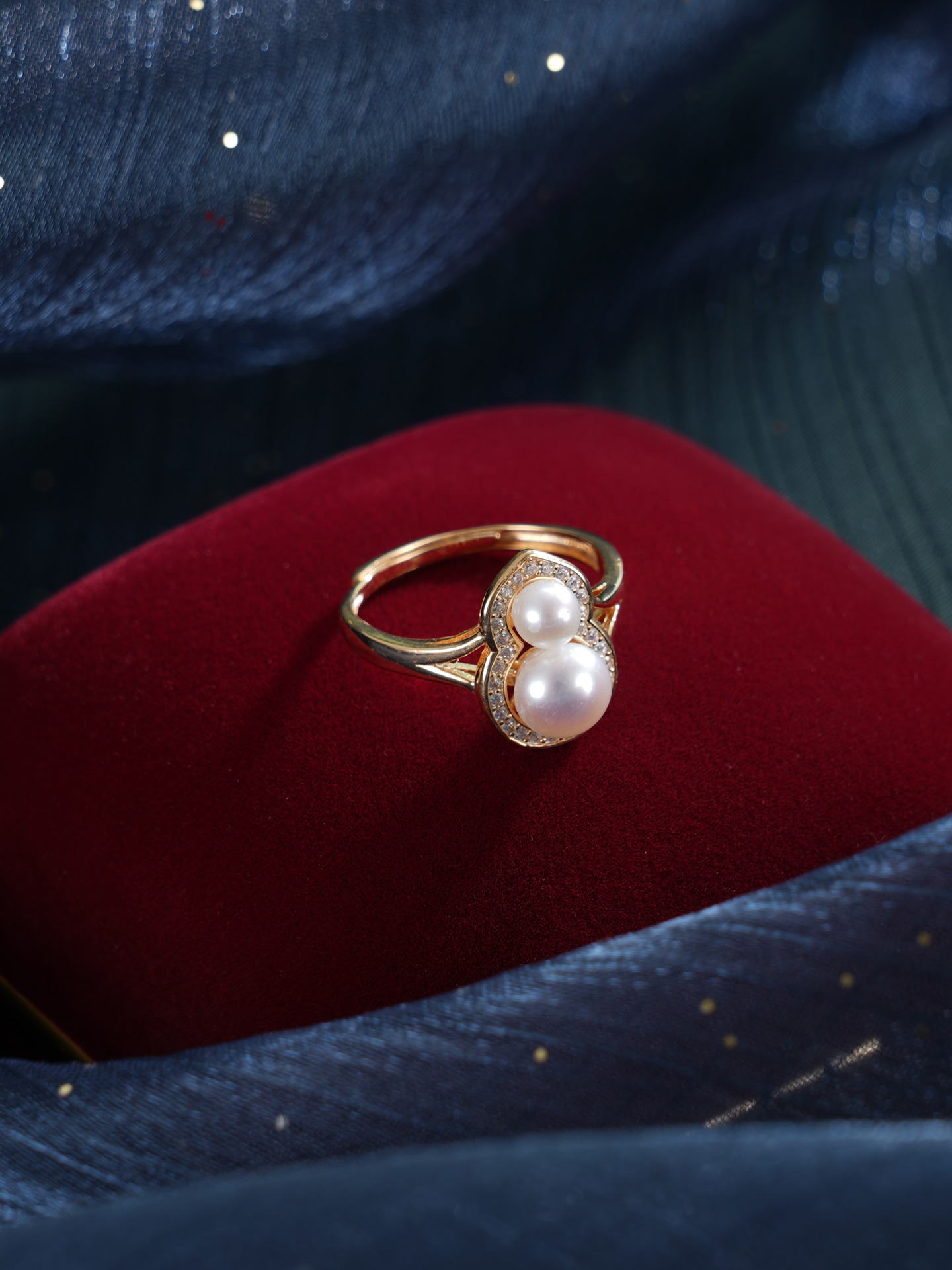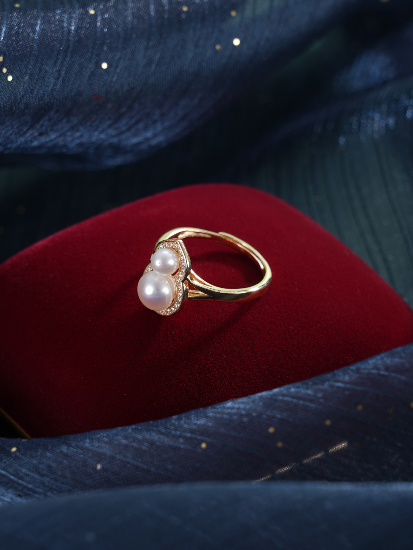 子佩集【福禄成真】银S925珍珠AOYA奥雅戒指【MLJZ015】6.5mm大珠镀金葫芦2512
