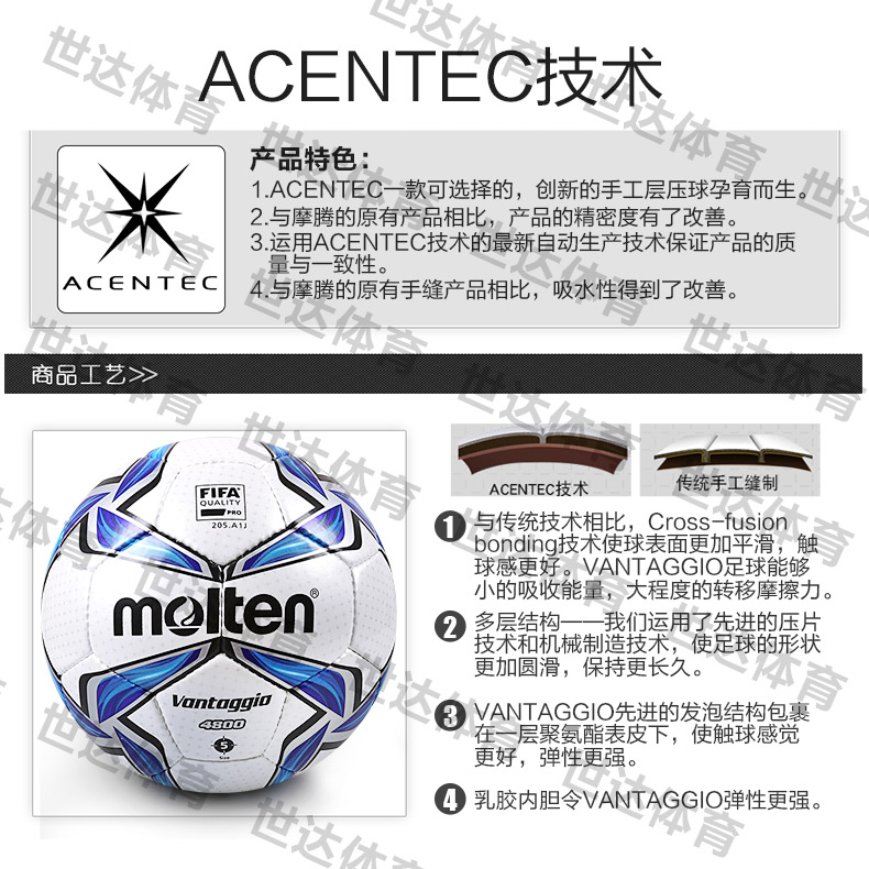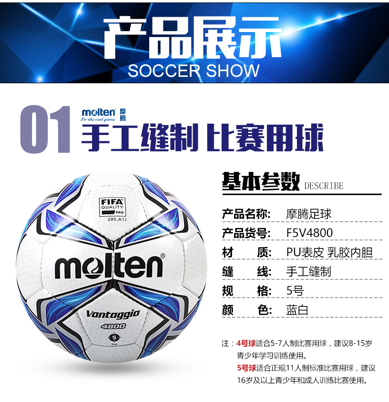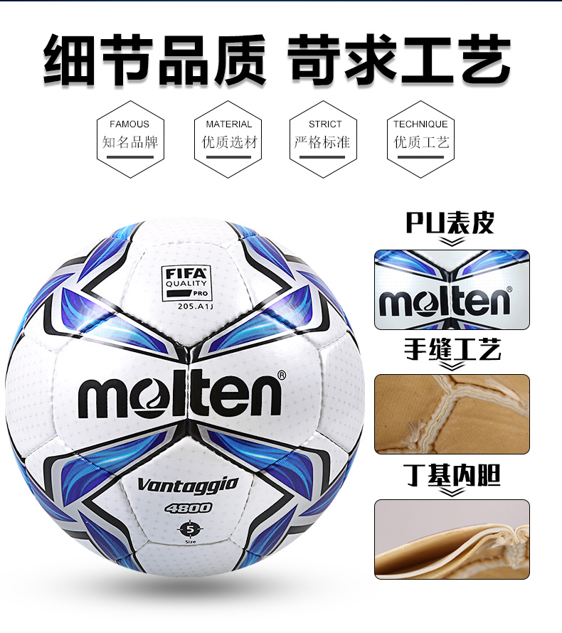 molten摩腾足球FIFA认证标准成人比赛5号足球F5V4800球感舒适乳胶内胆 F5V4800 FIFA公认球