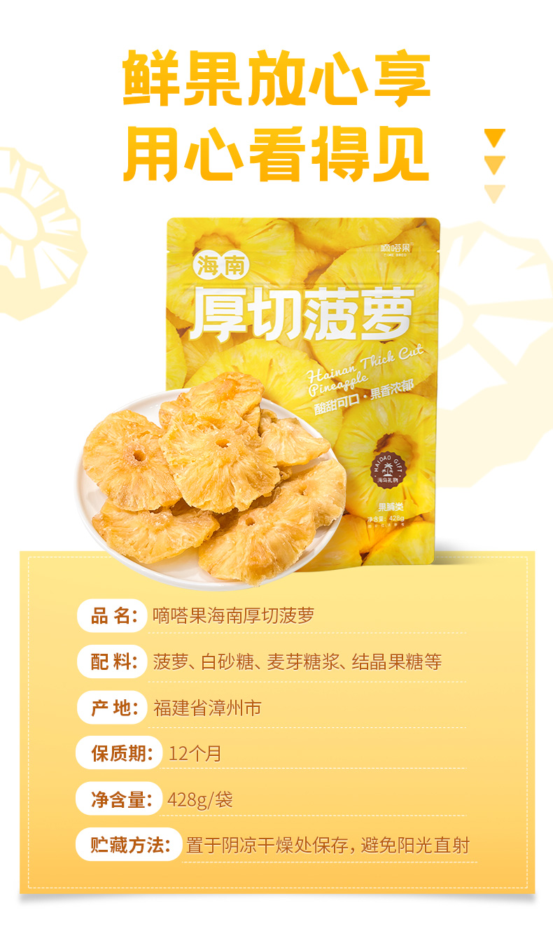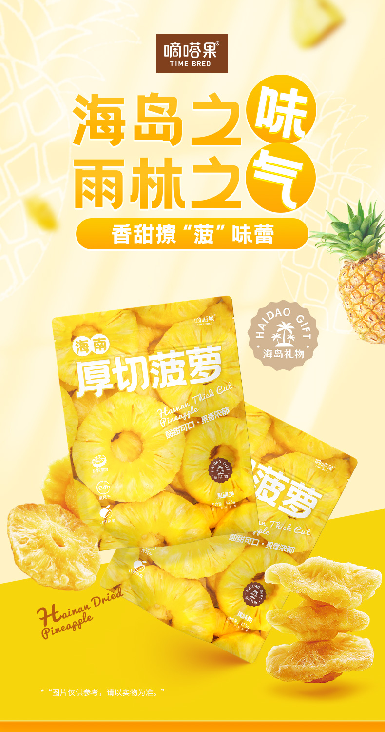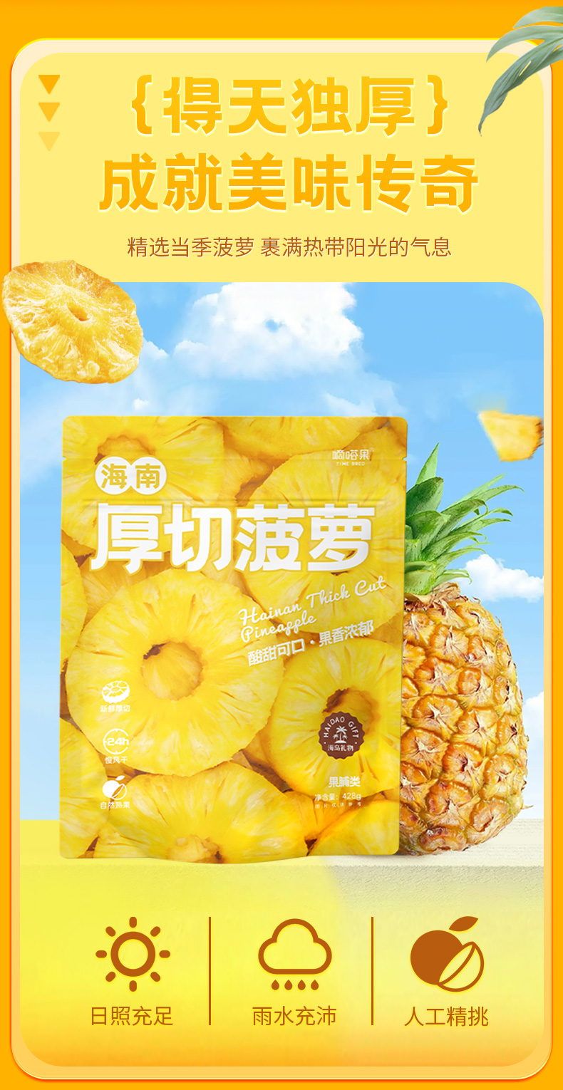 嘀嗒果海南厚切菠萝干菠萝水果干片蜜饯果脯休闲零食小吃