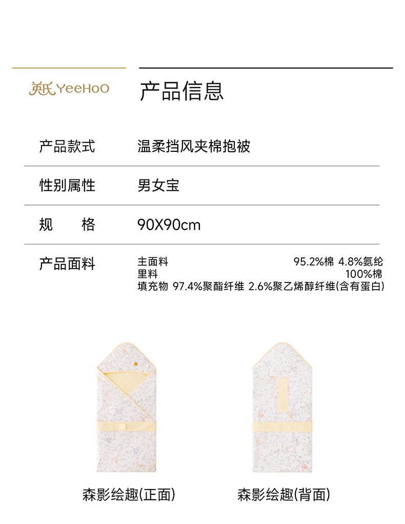 英氏婴儿抱被男女宝宝四季抗菌防惊跳新生儿包单新款YEBAJ0S001A