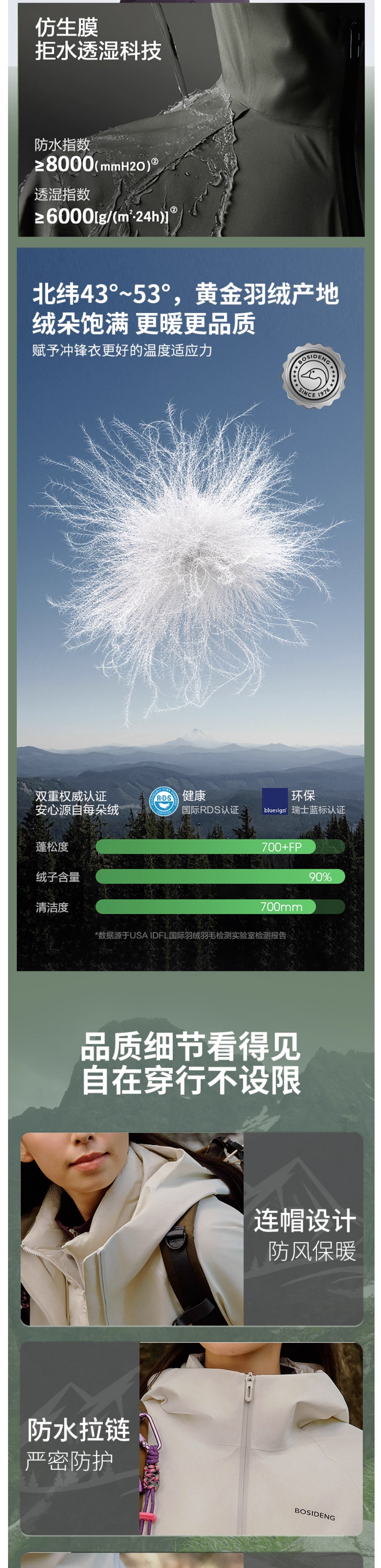 波司登冲锋衣羽绒服女秋冬季户外三合一短款连帽鹅绒服B250331362