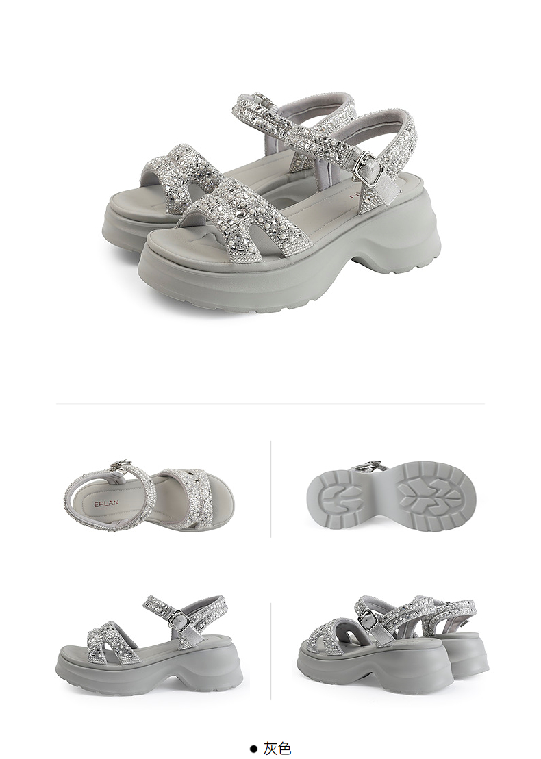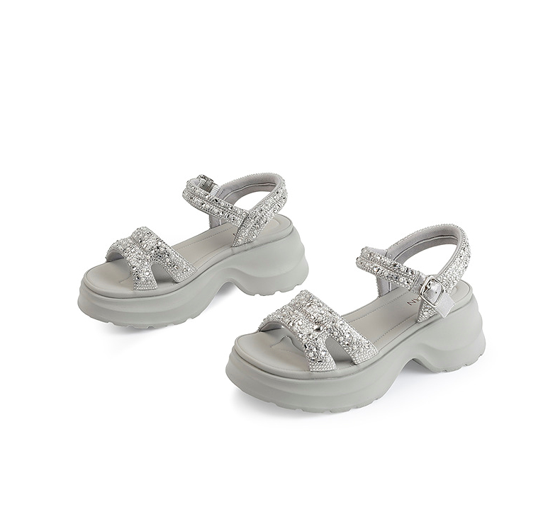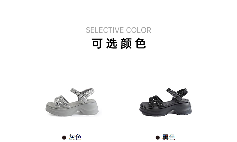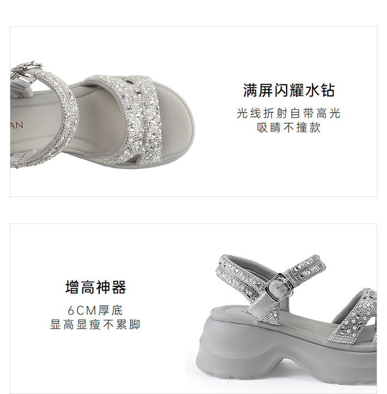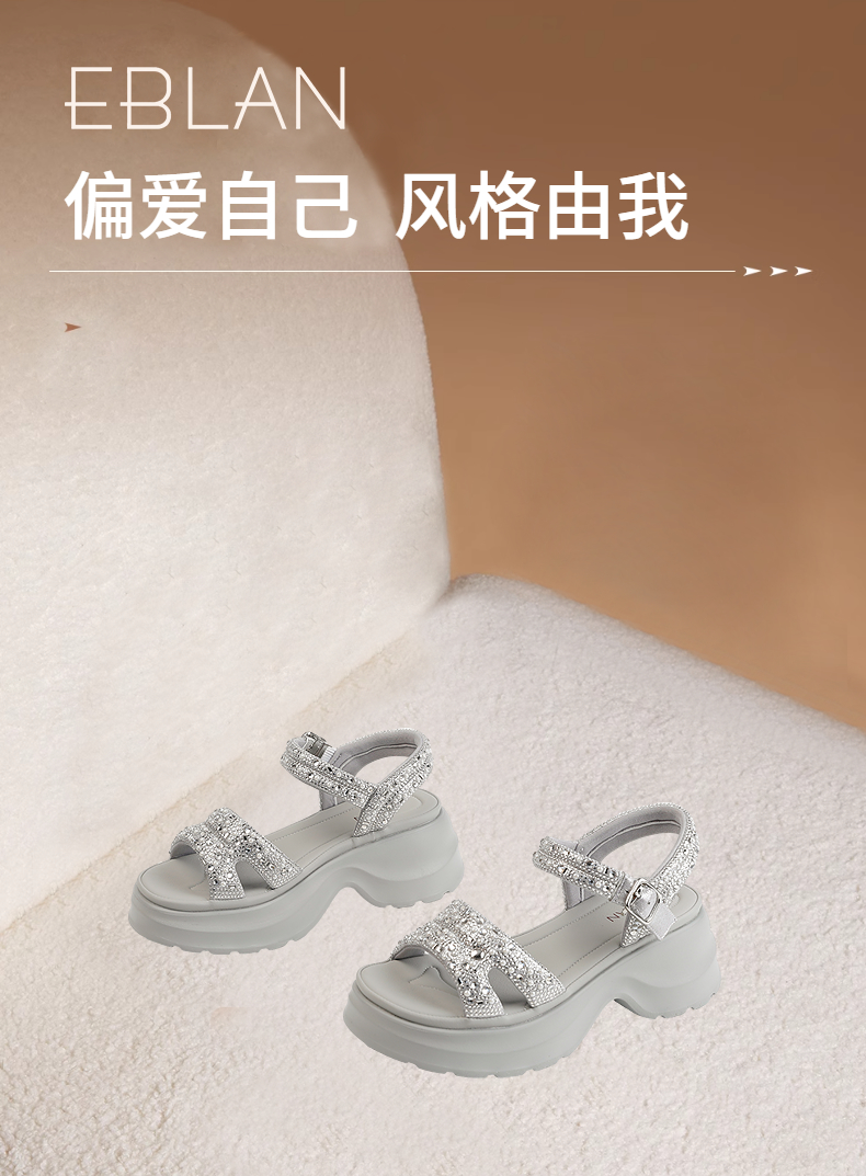 伊伴2026夏季闪耀水钻增高神器休闲一字带凉鞋B26398221