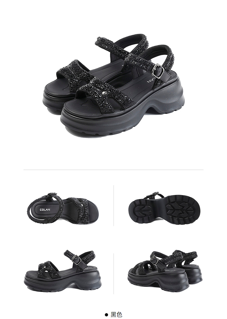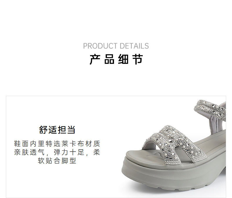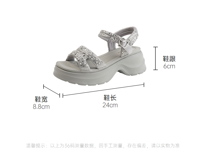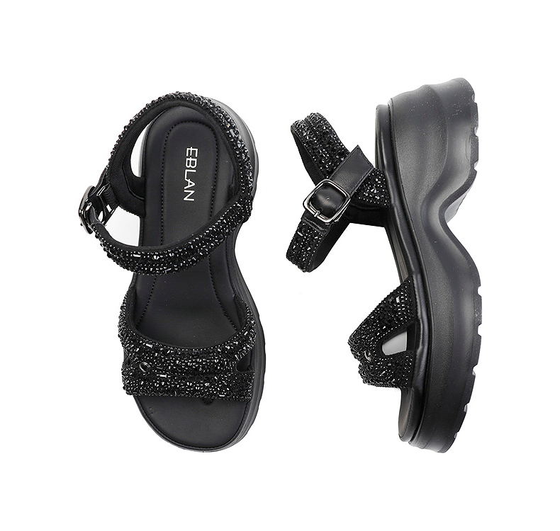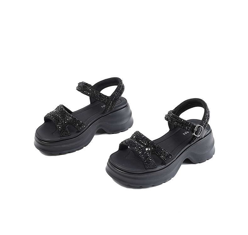 伊伴2026夏季闪耀水钻增高神器休闲一字带凉鞋B26398221