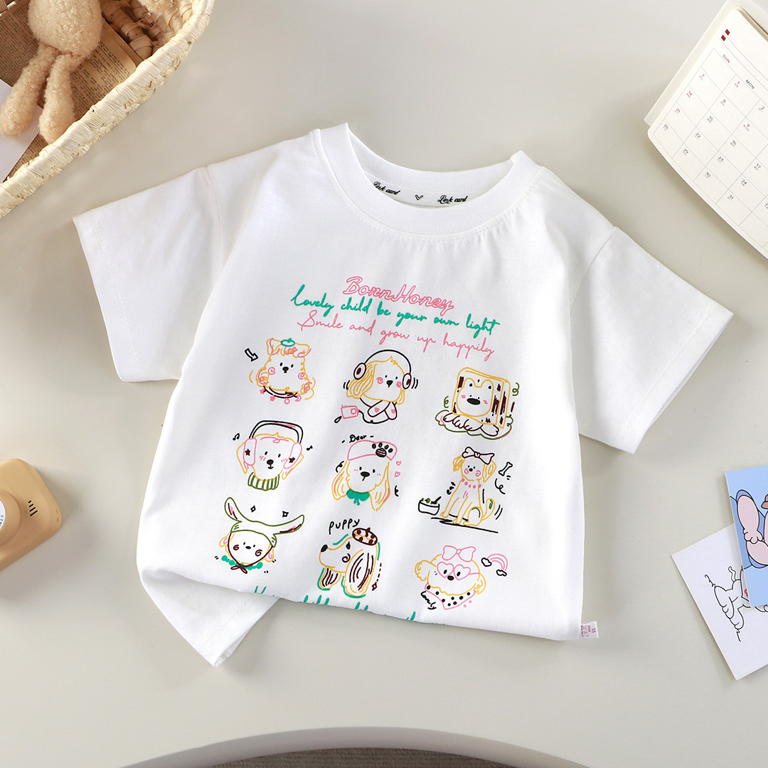 【39.9/任选2件】亲子款儿童短袖t恤80-170纯棉宽松男童女童夏中大童打底衫聚