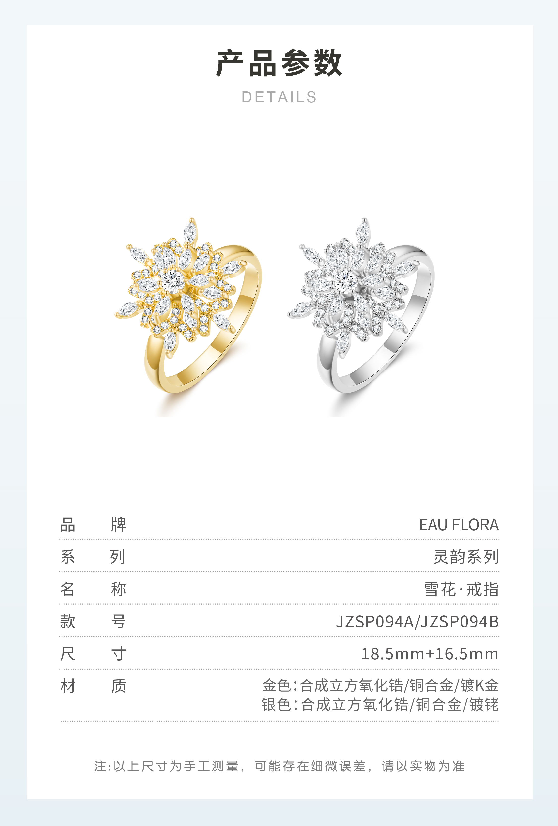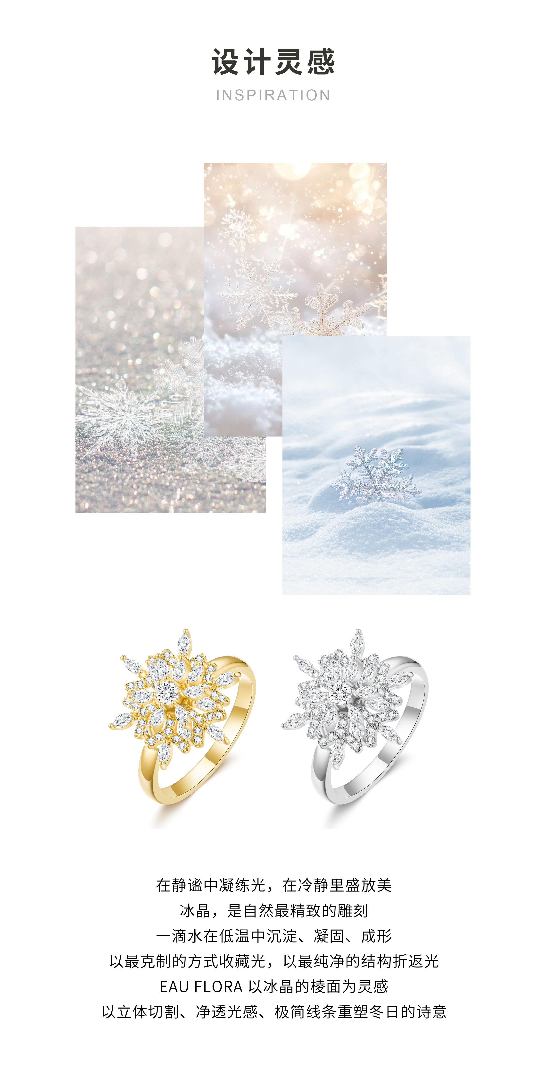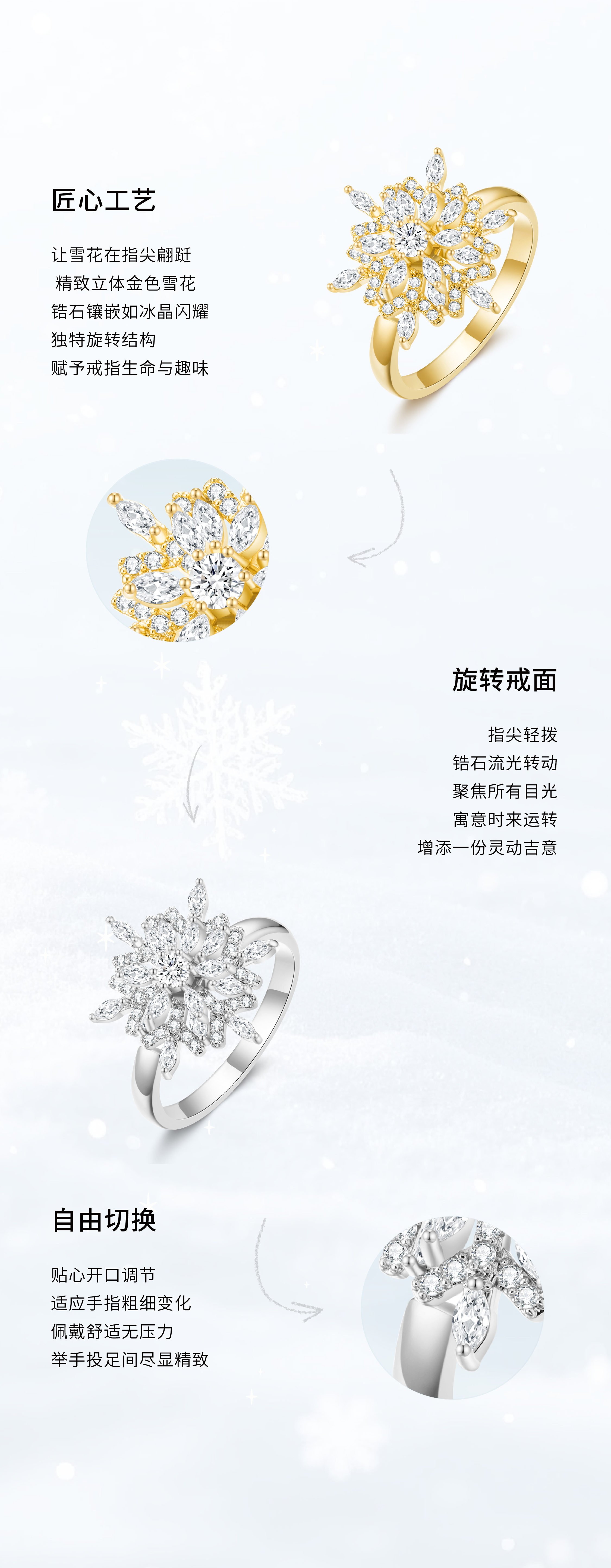 【冬日情书·初雪】可开口旋转雪花戒指·金银双色