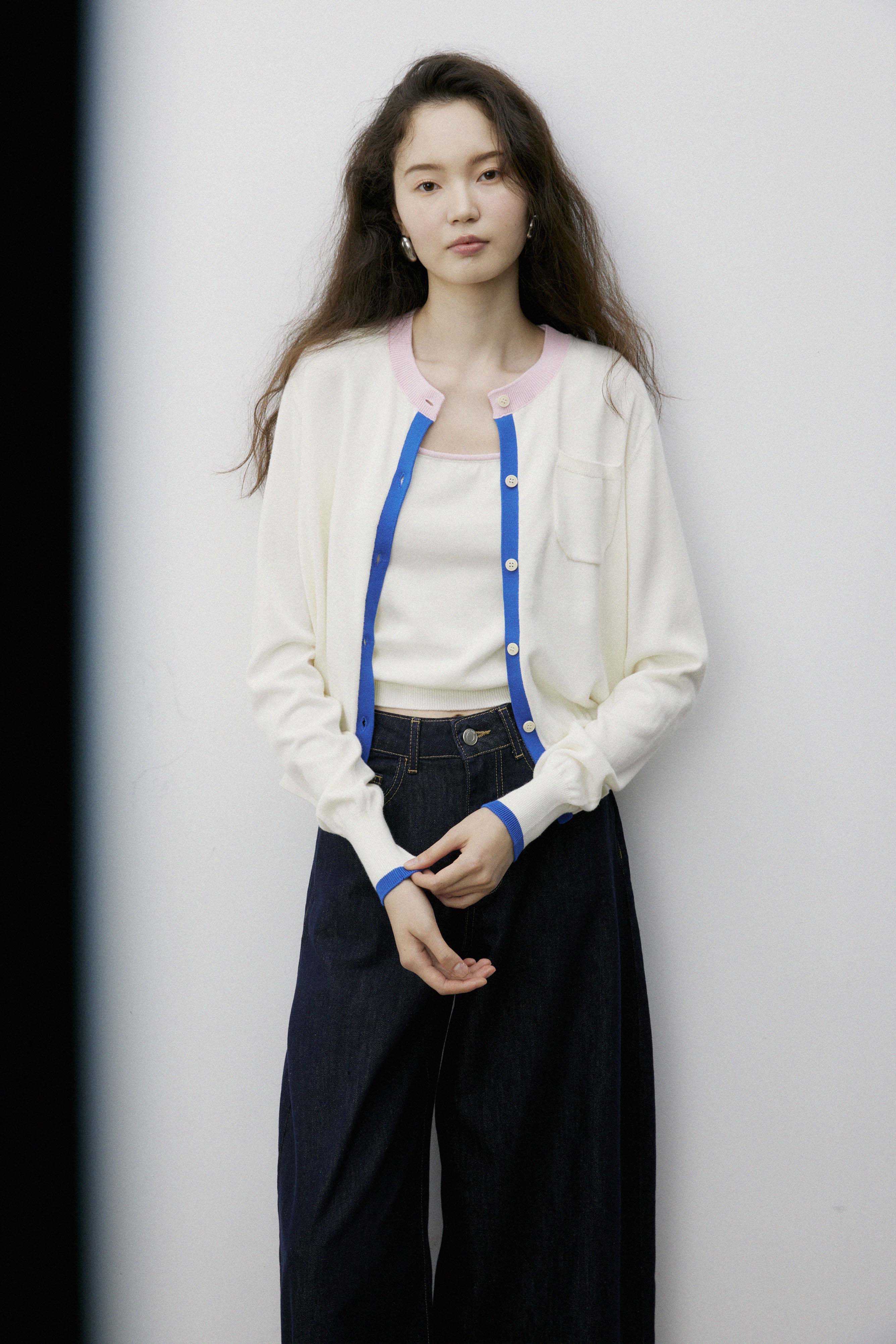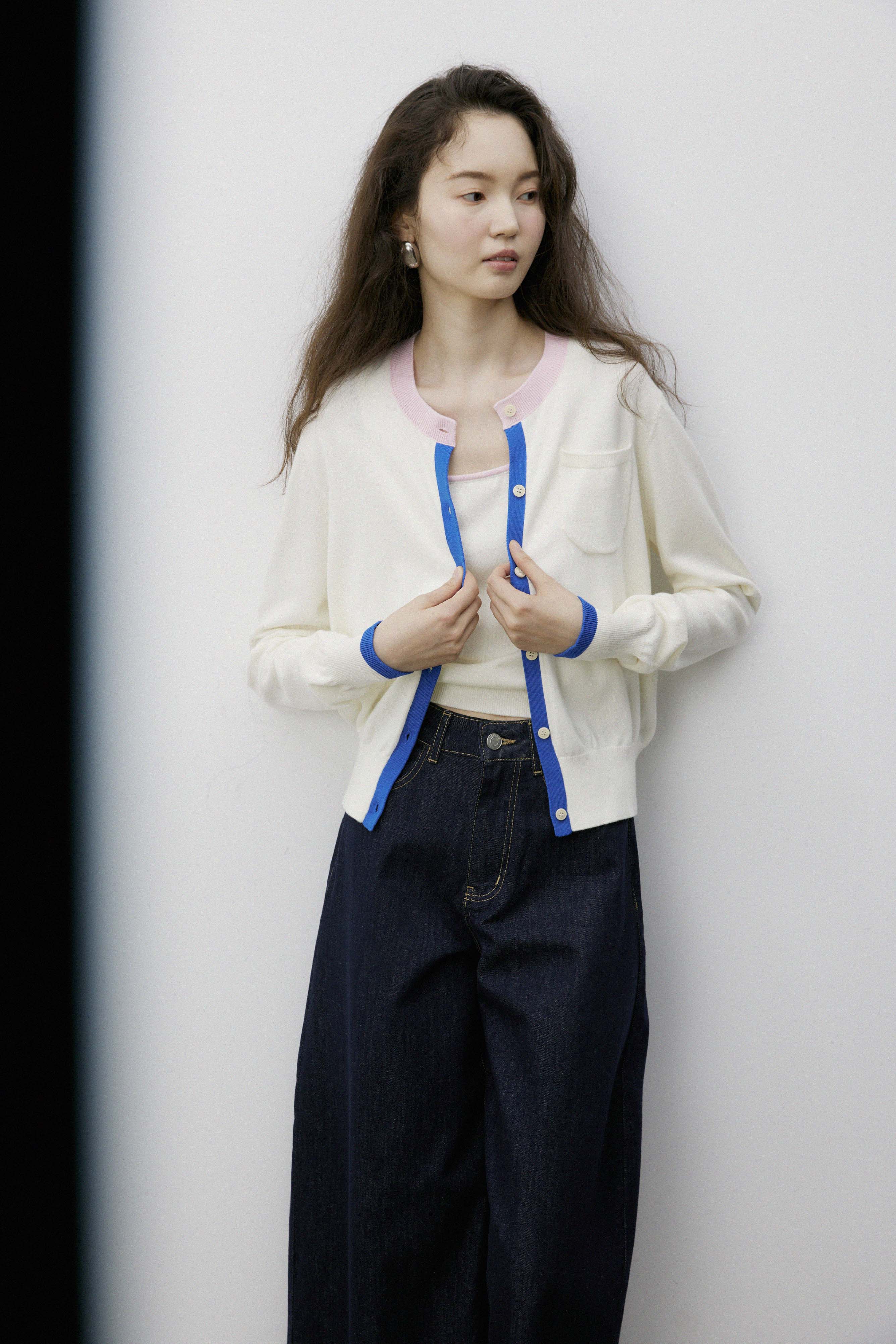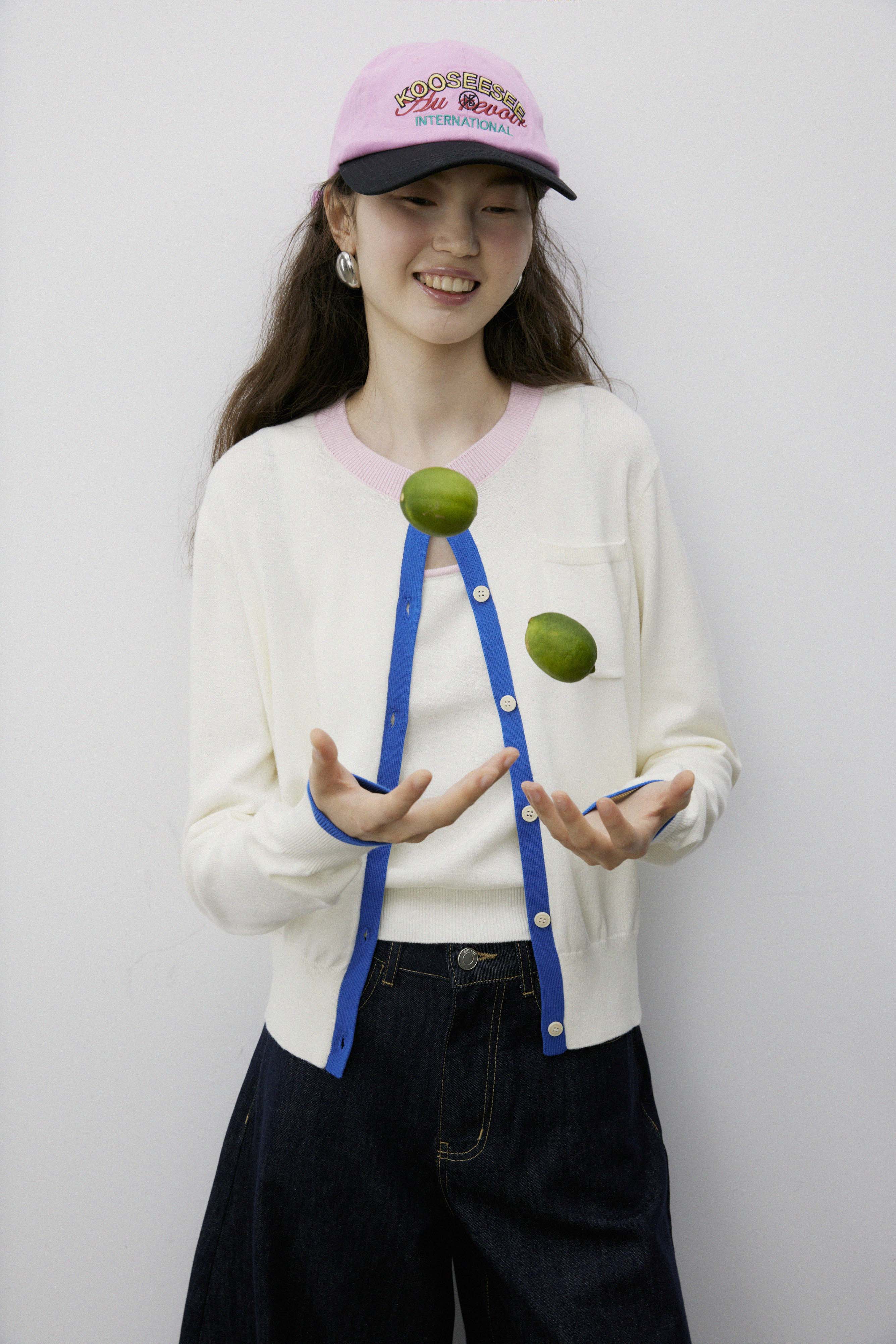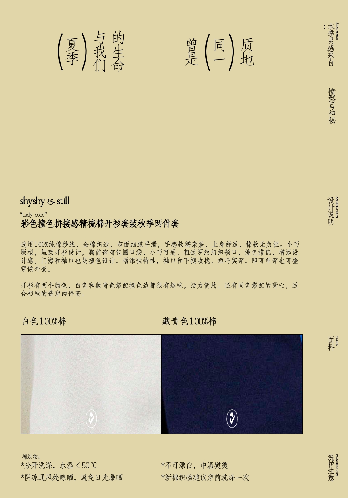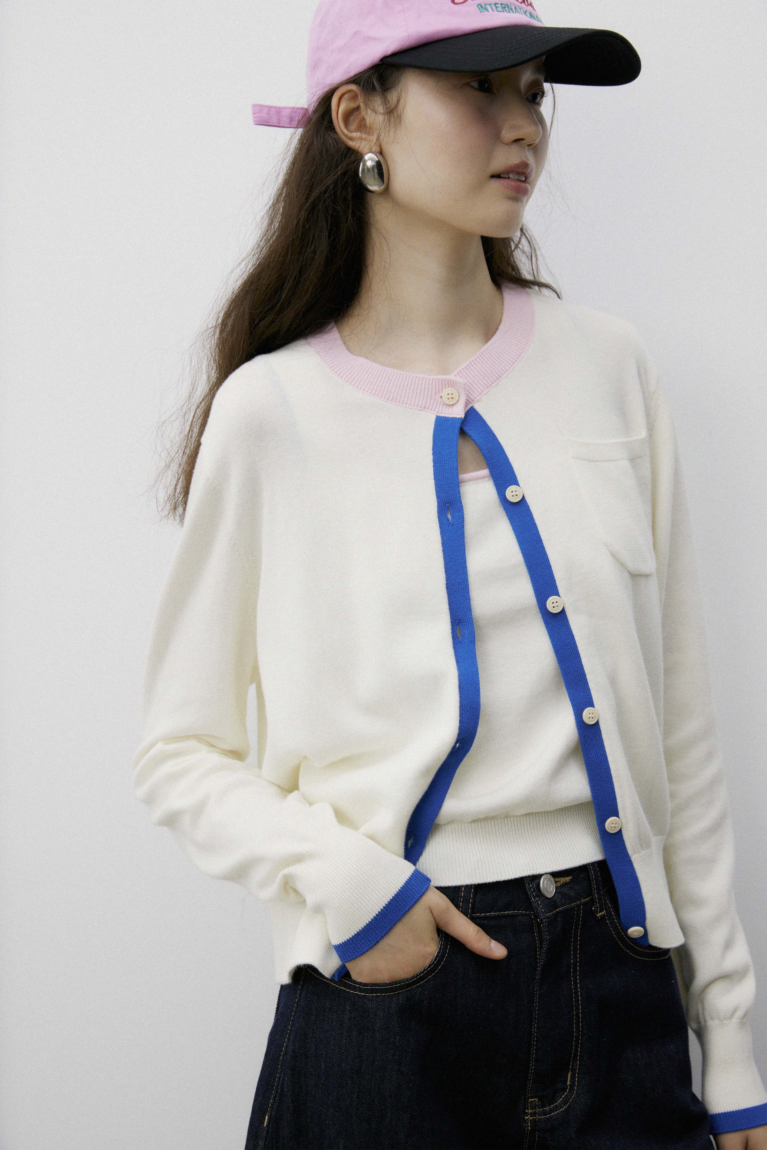 shyshystill/shy202202043/彩色撞色拼接感精梳棉开衫