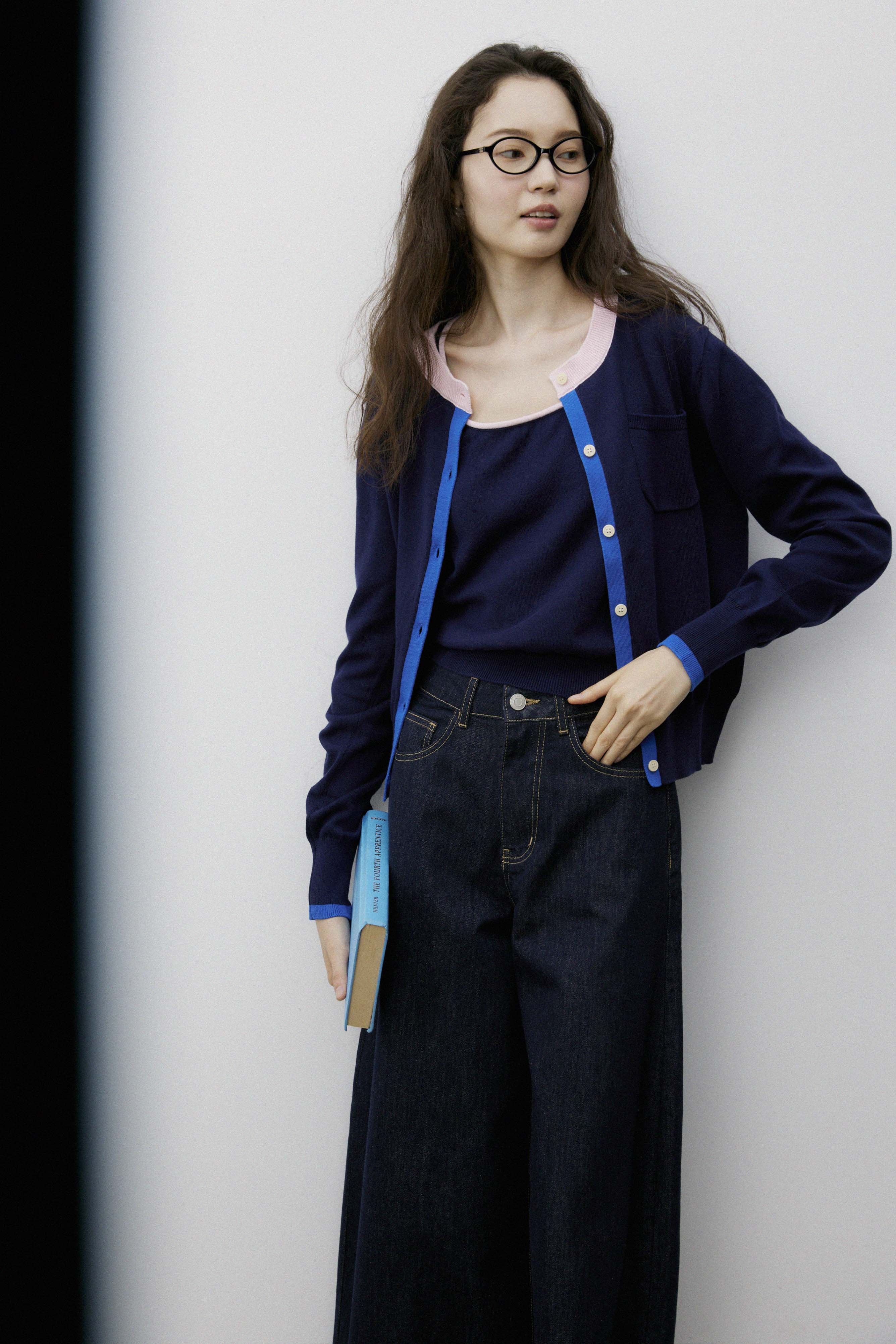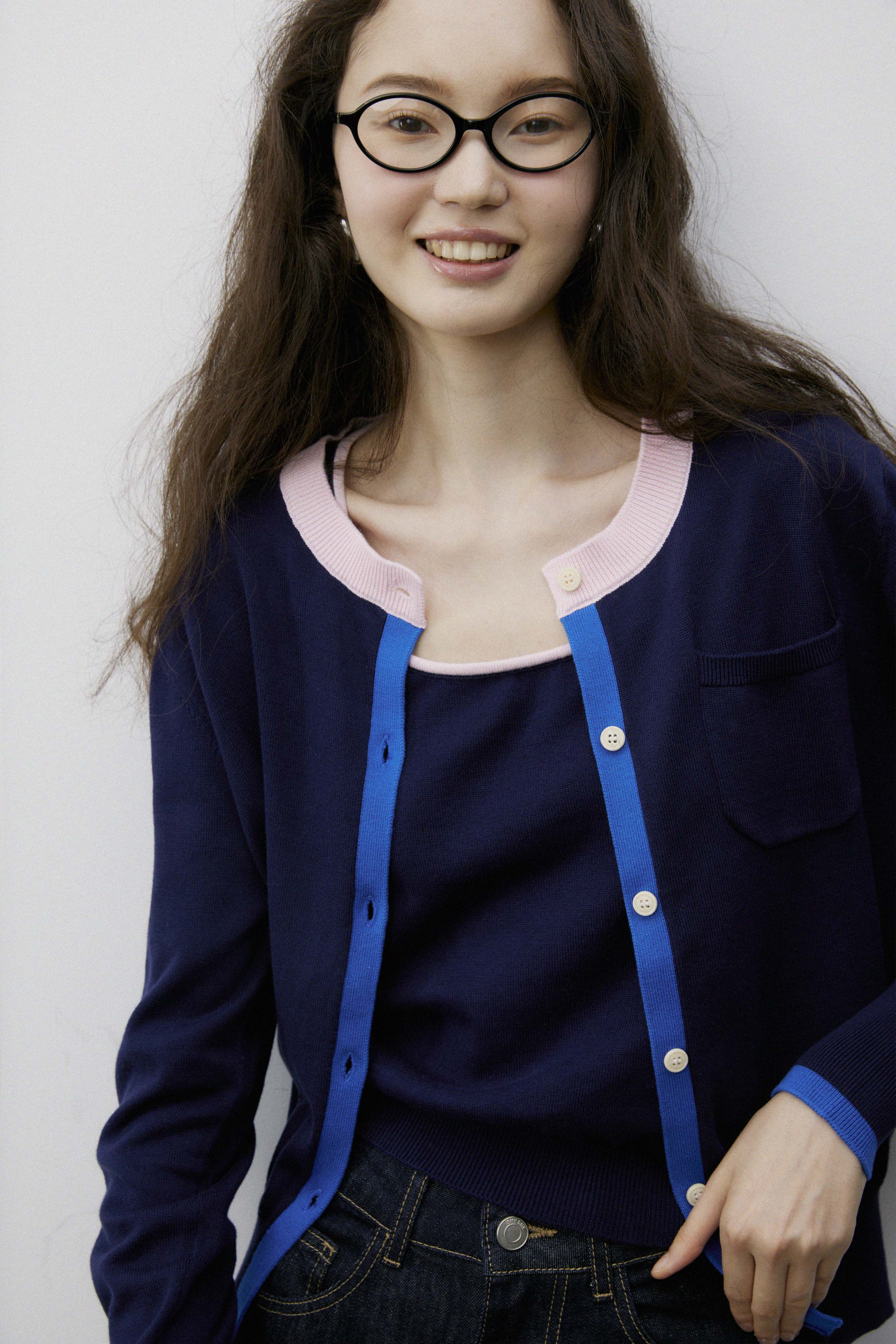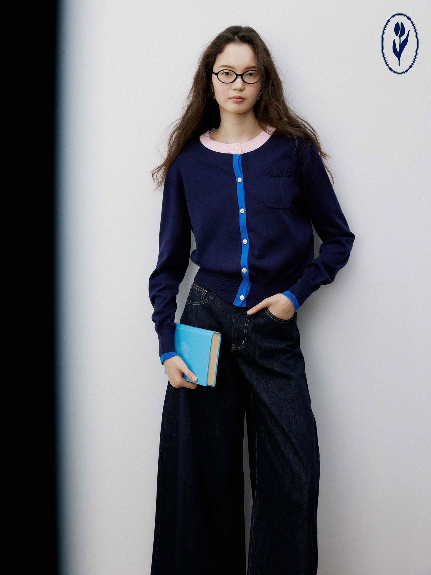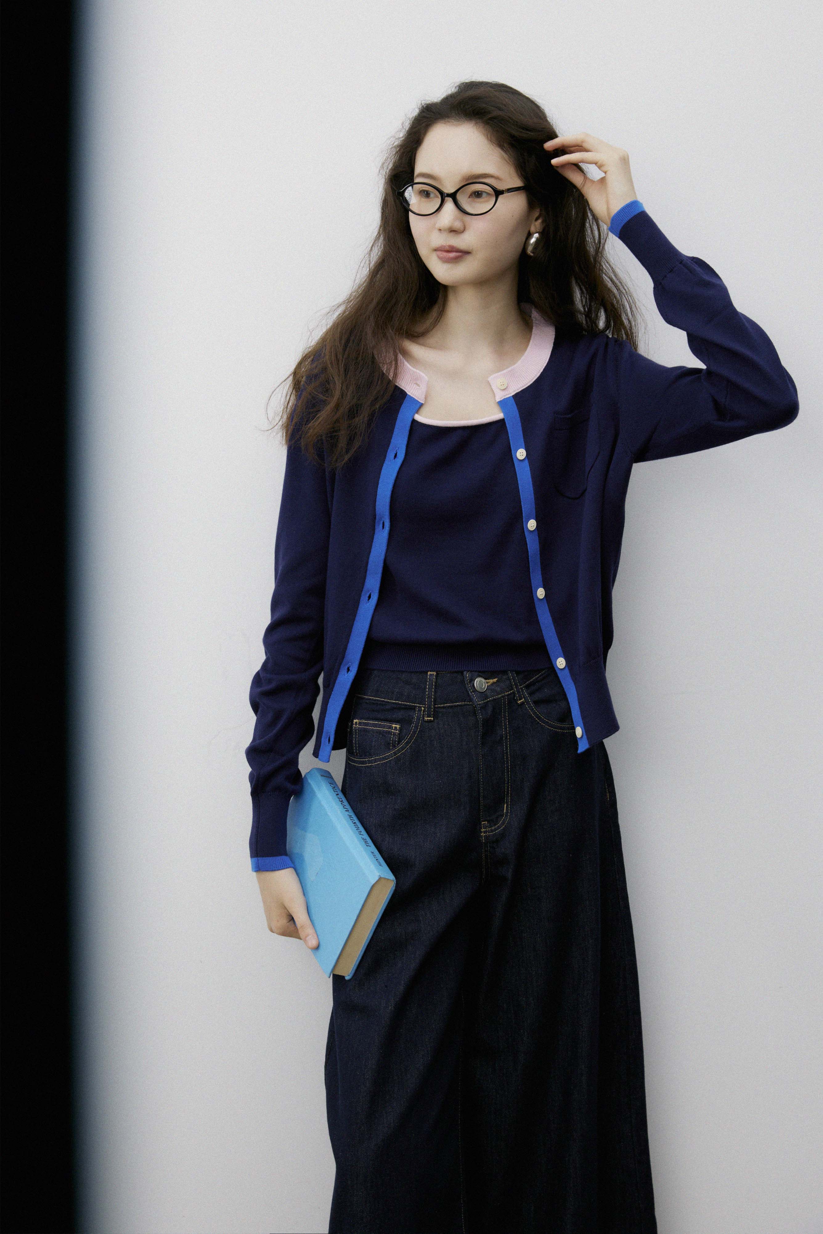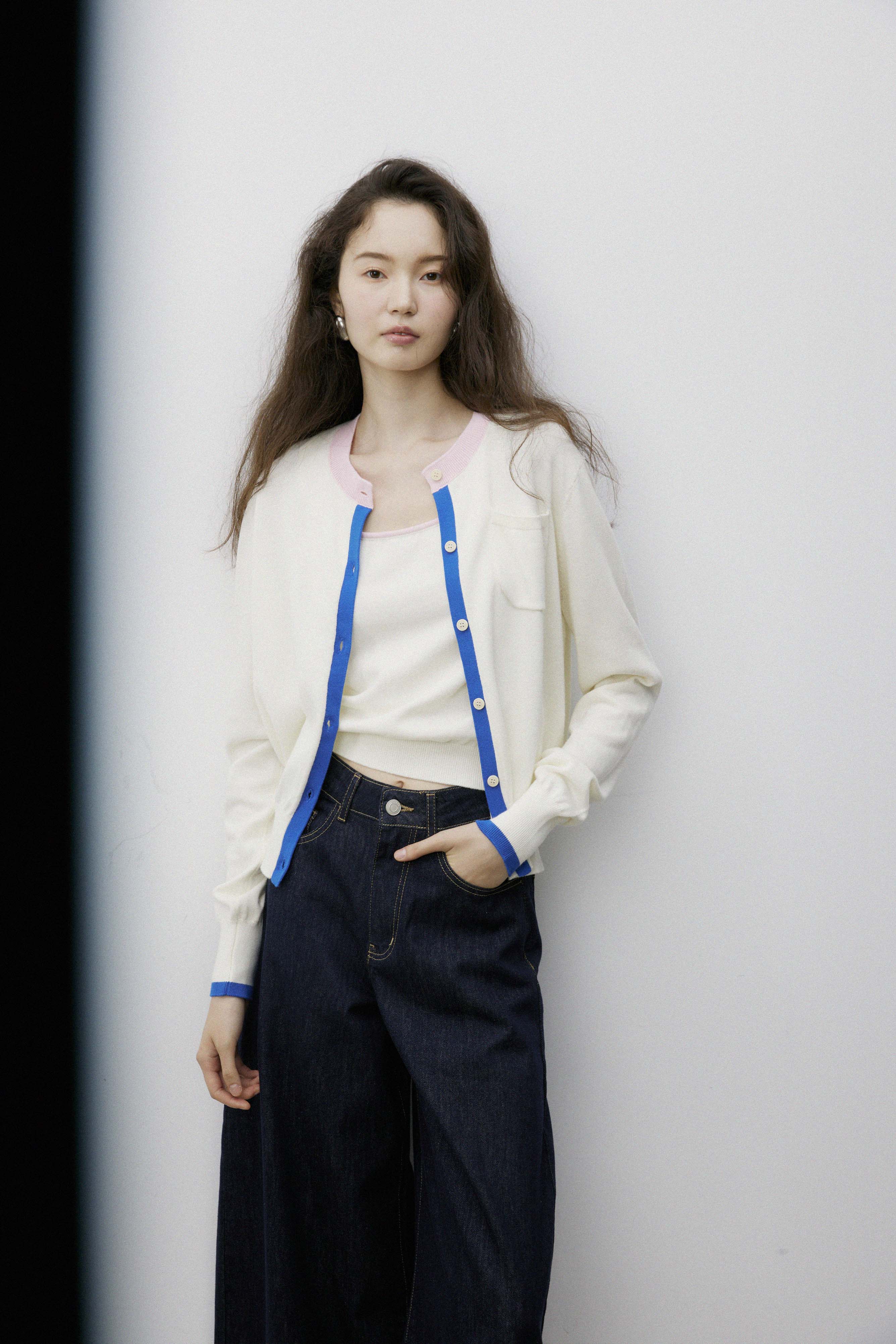 shyshystill/shy202202043/彩色撞色拼接感精梳棉开衫