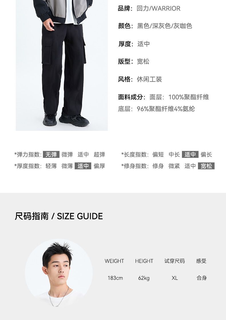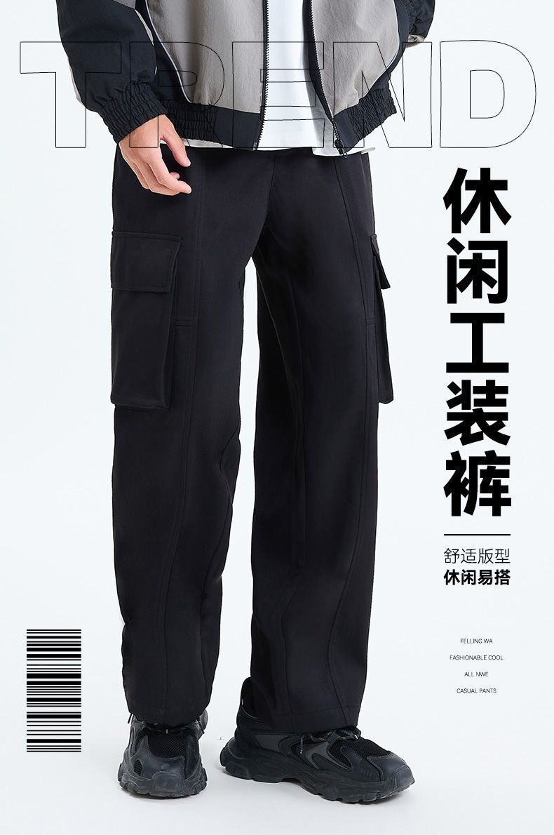 回力机能工装裤男夏季新款美式潮牌阔腿直筒裤宽松休闲大码长裤子
