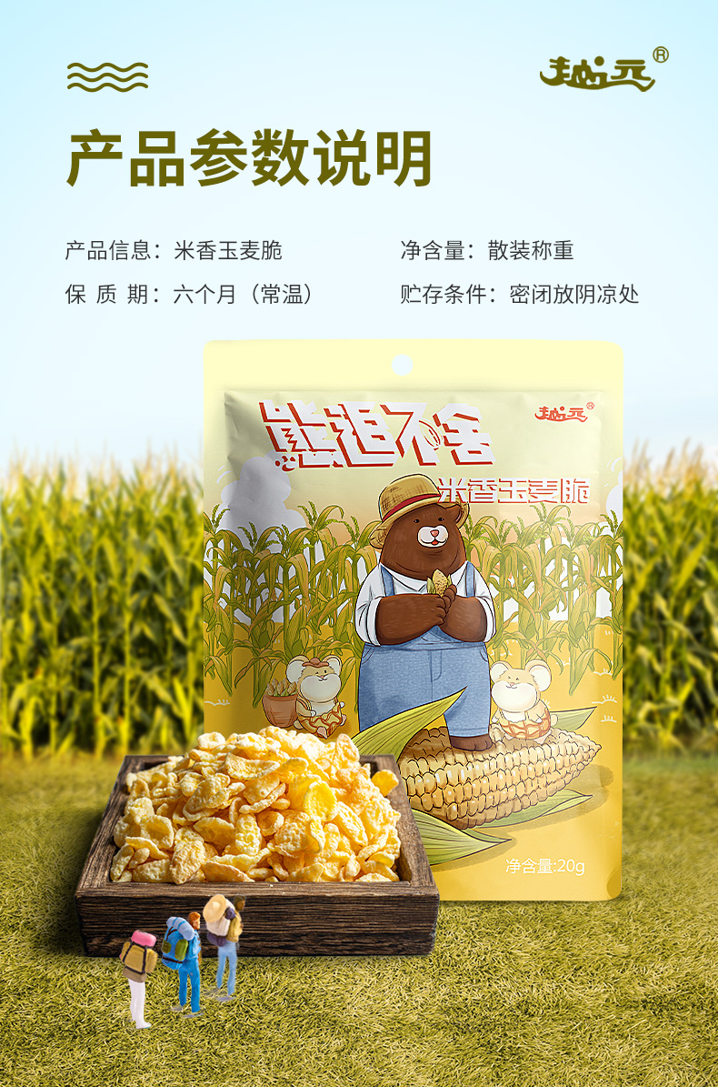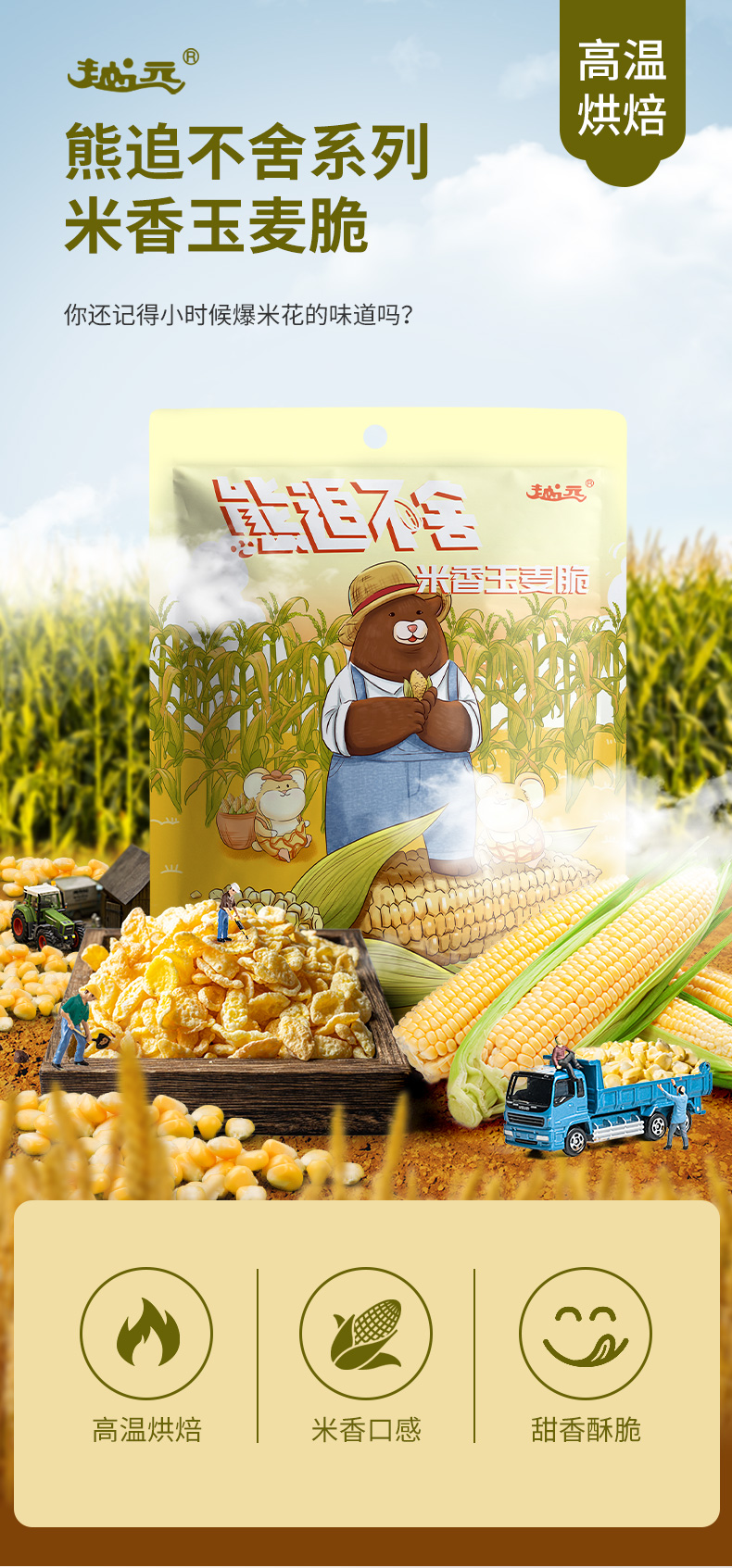 【拼团巨惠】越远熊追不舍袋装玉麦脆麦片即食休闲零食玉米片营养能量早餐食品20g*12包