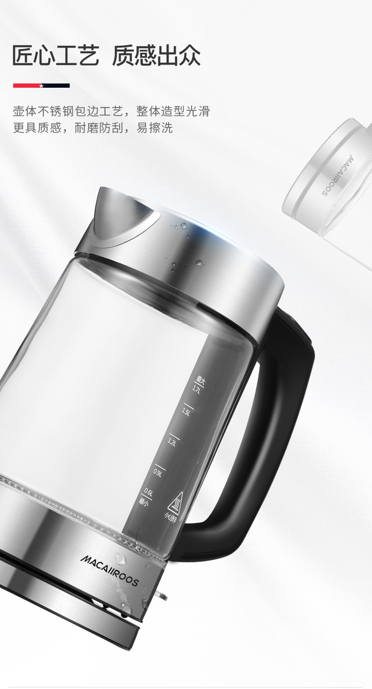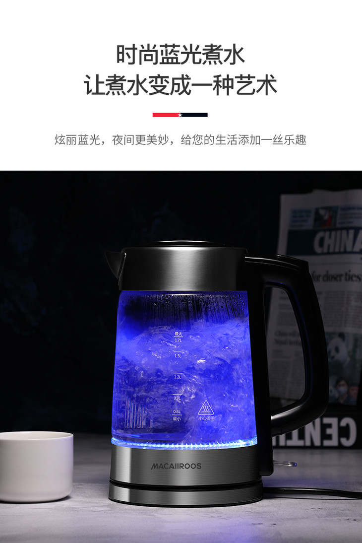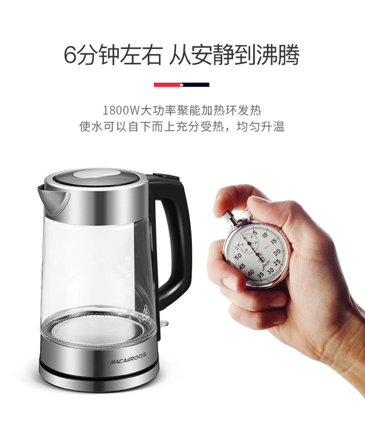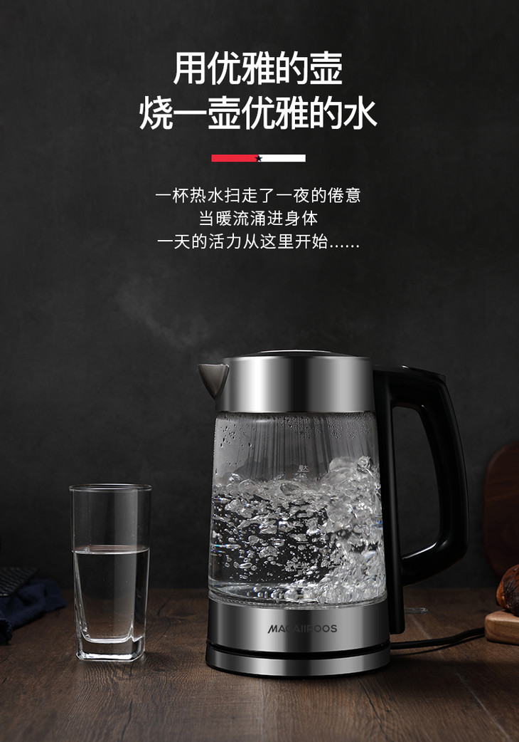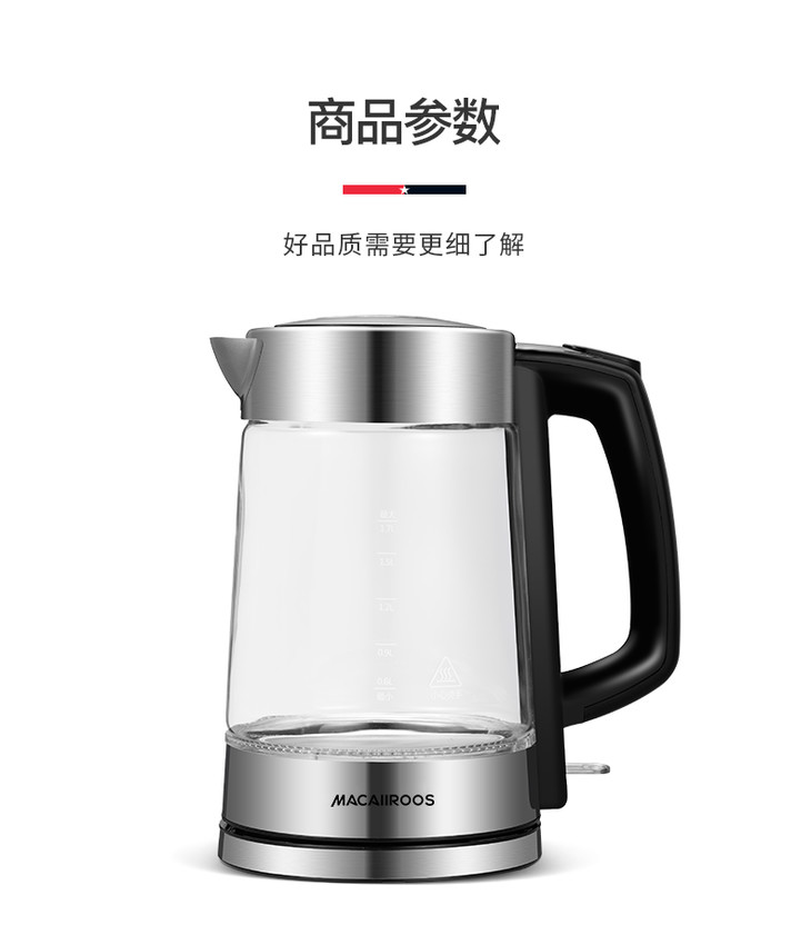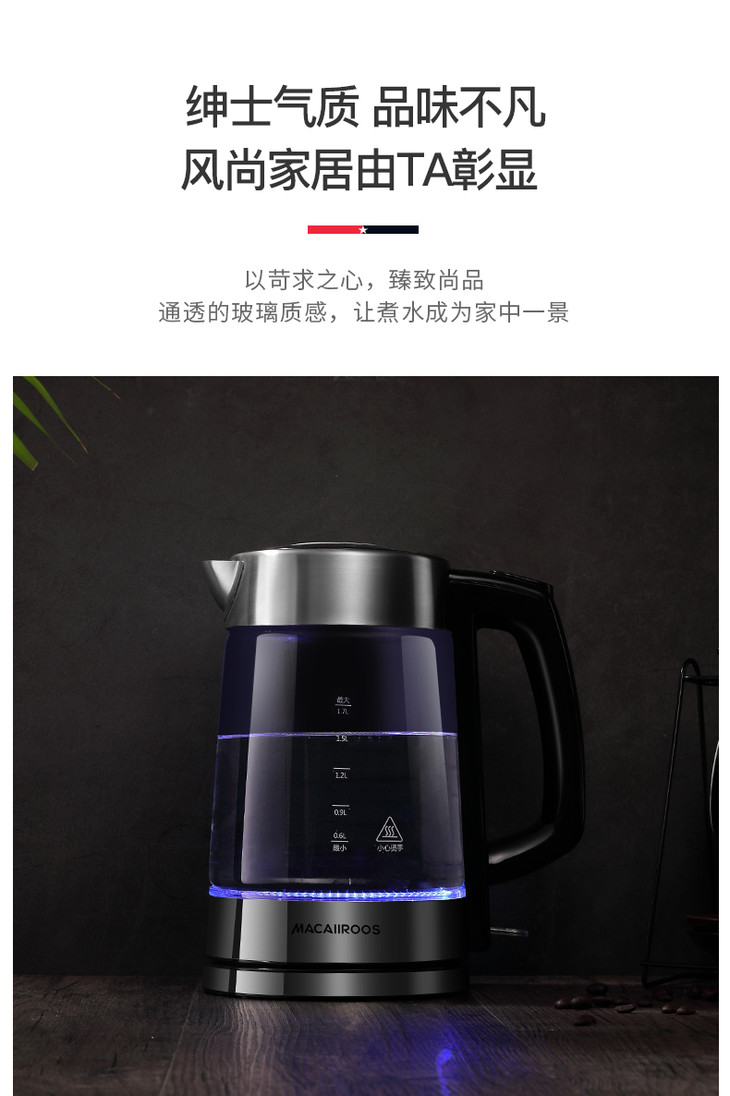 【迈卡罗】Macaiiroos/迈卡罗玻璃电热水壶家用自动断电开水烧水壶MC-3051