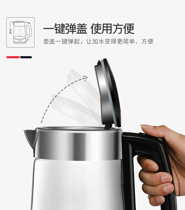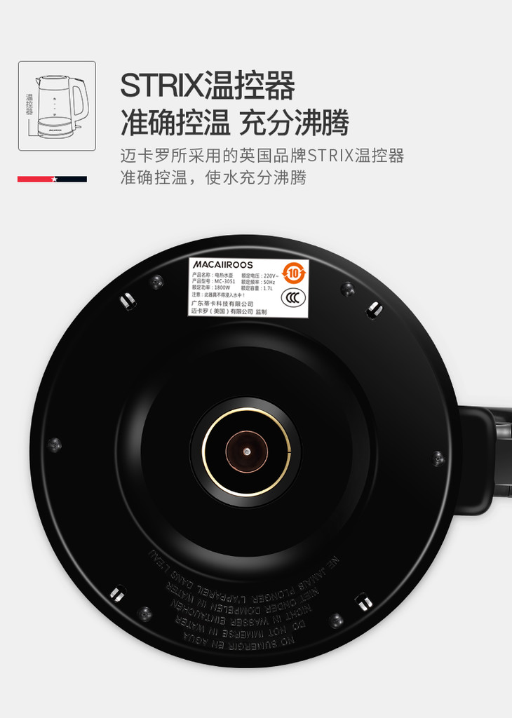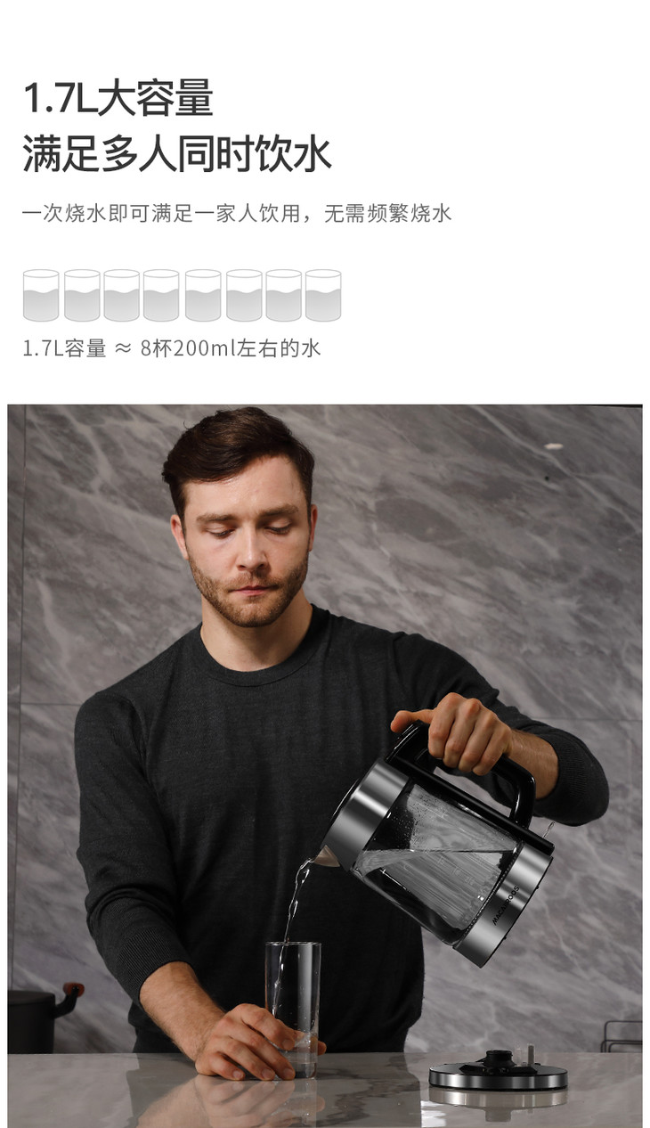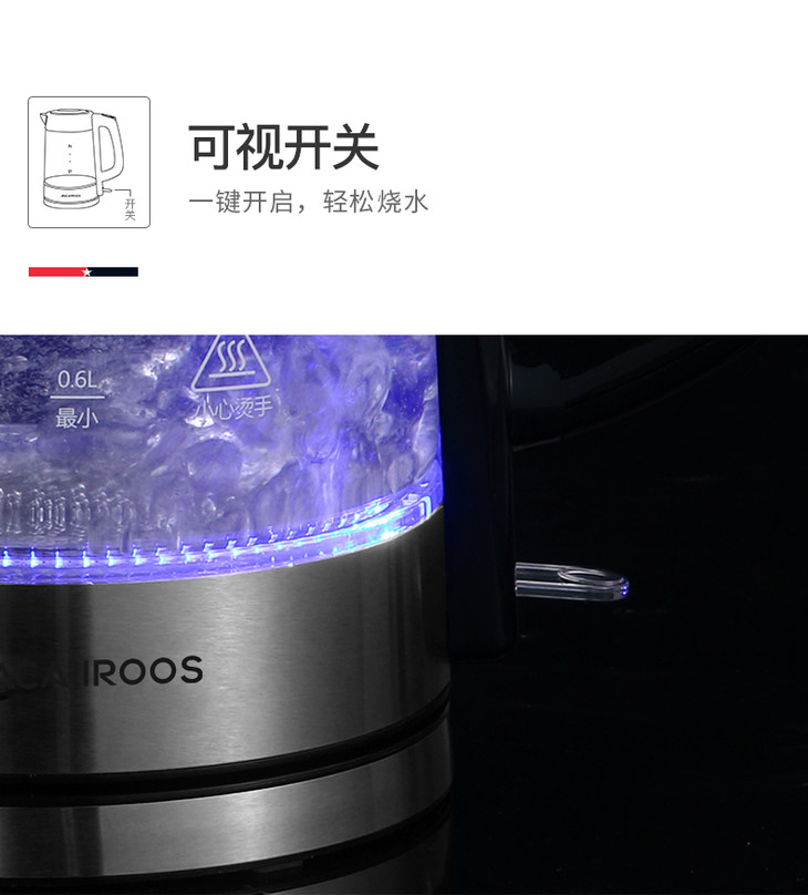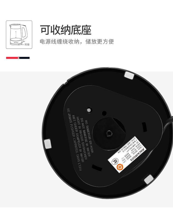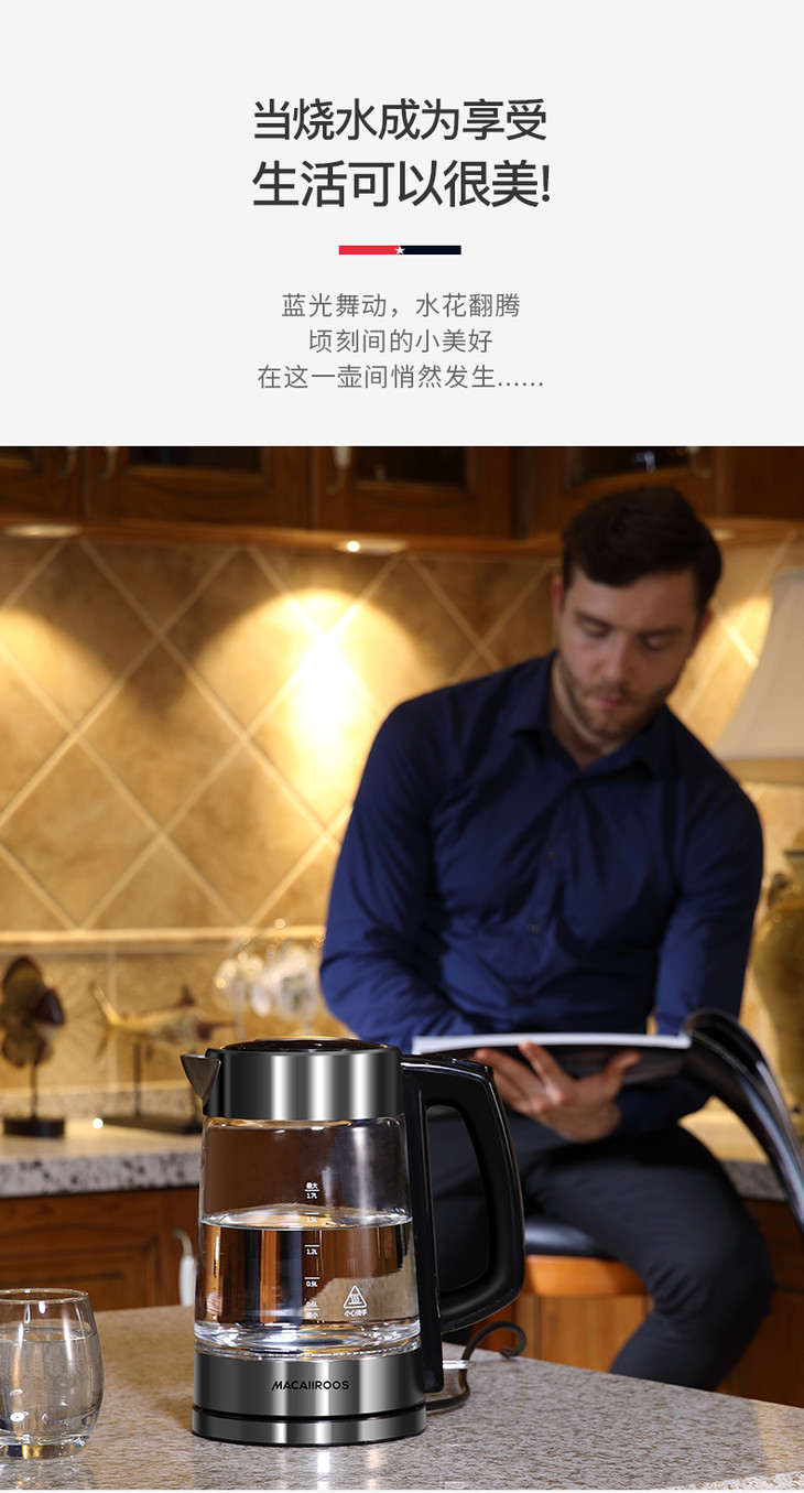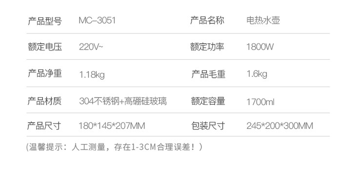 【迈卡罗】Macaiiroos/迈卡罗玻璃电热水壶家用自动断电开水烧水壶MC-3051