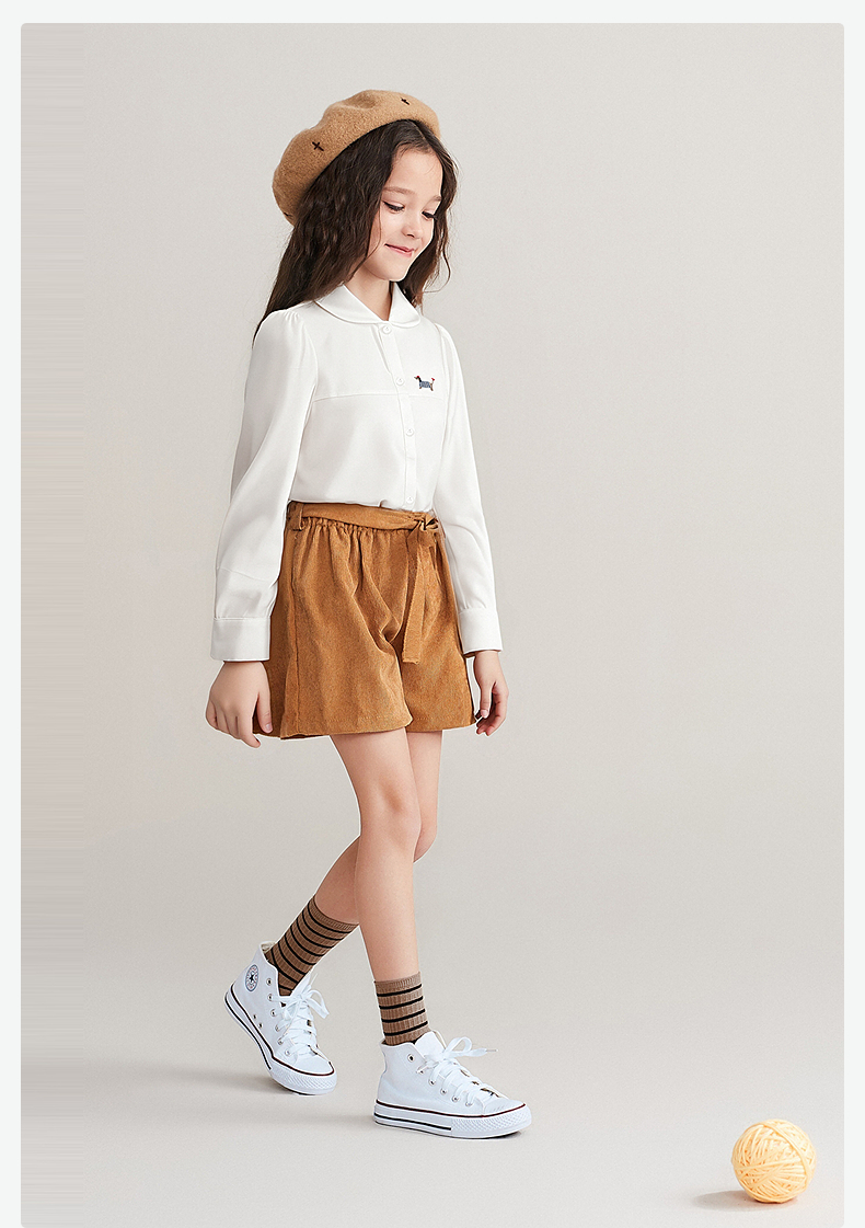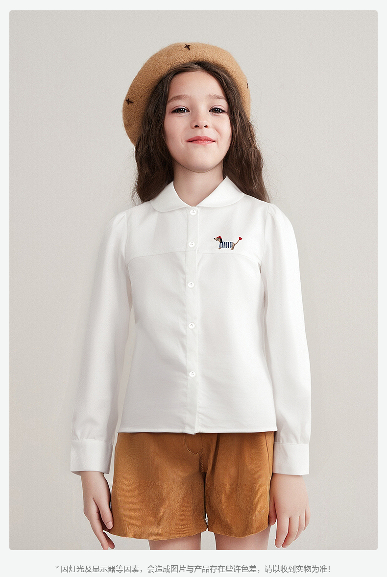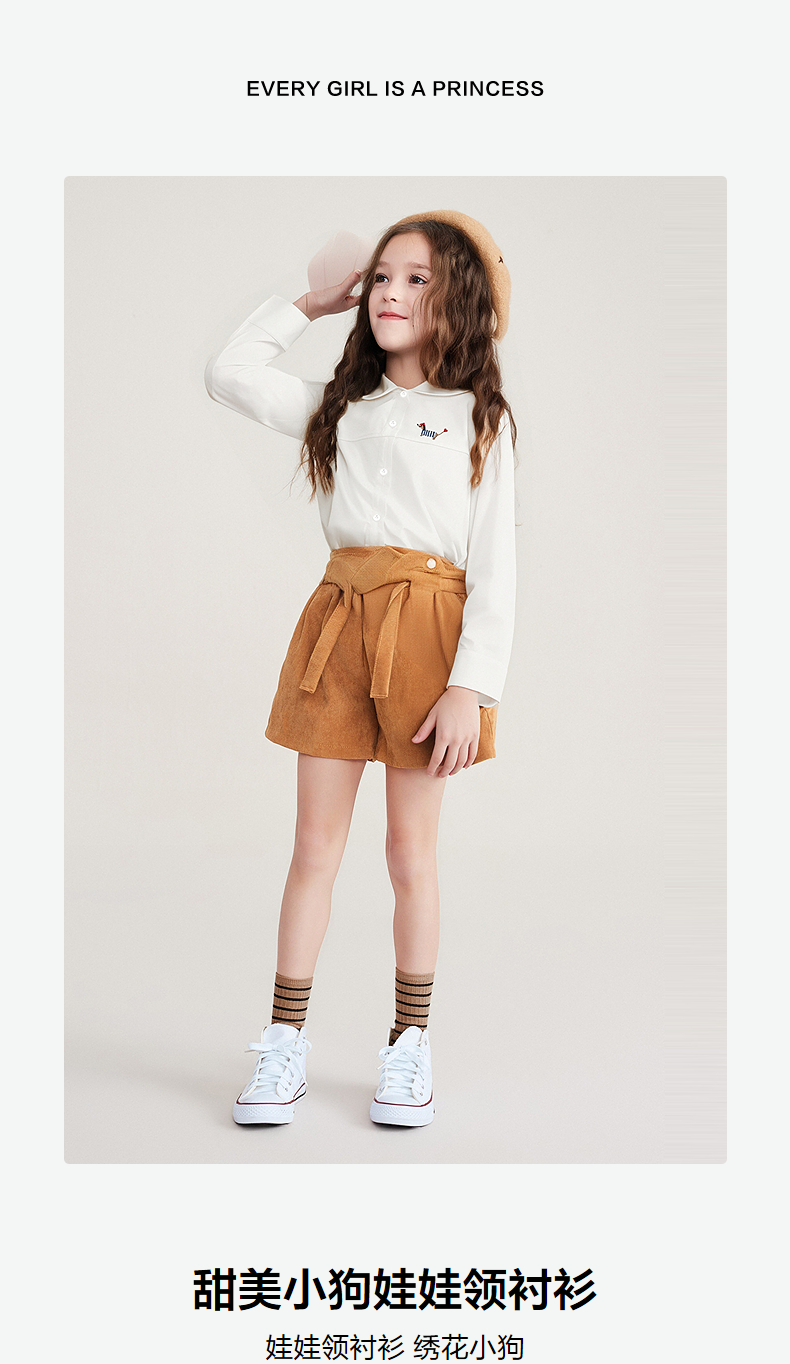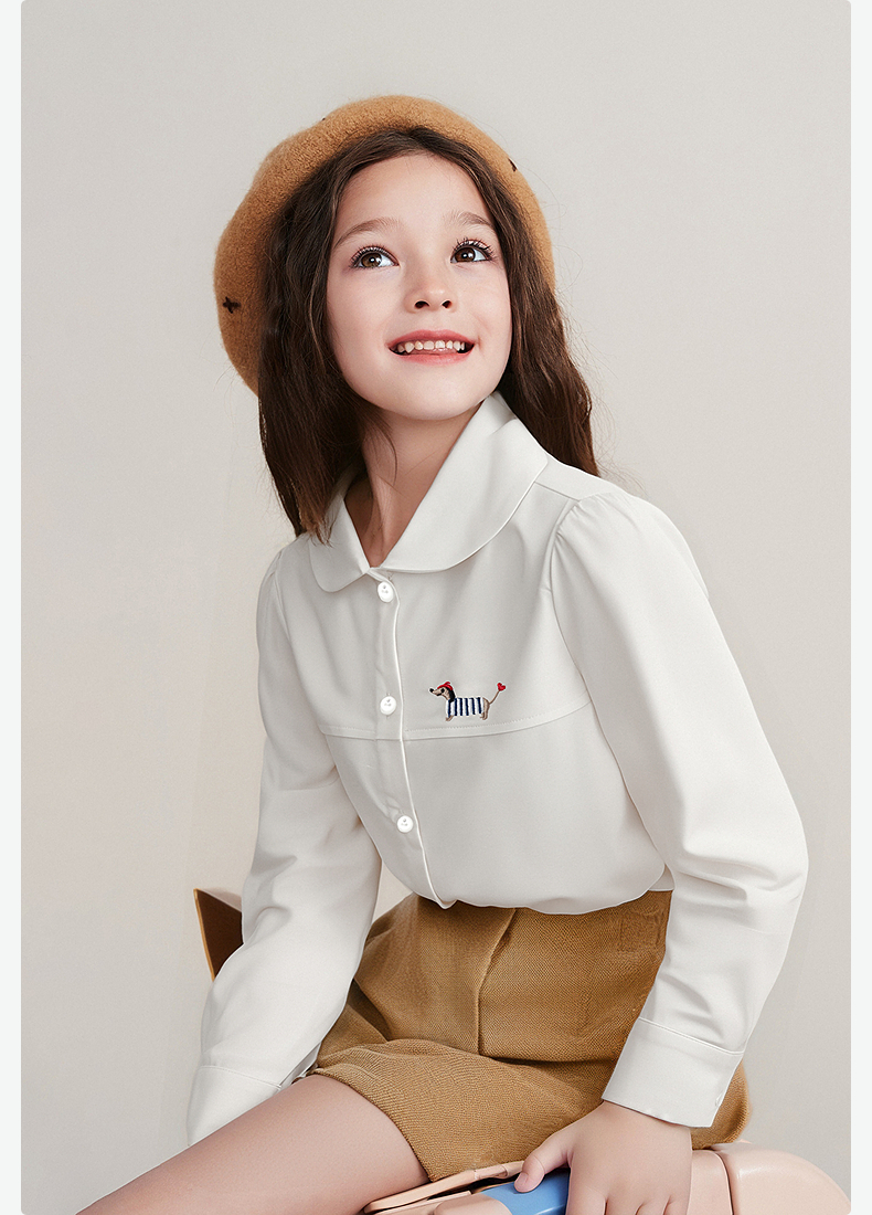 笛莎Deesha 童装女童衬衫2025秋新款女童甜美小狗娃娃领衬衫