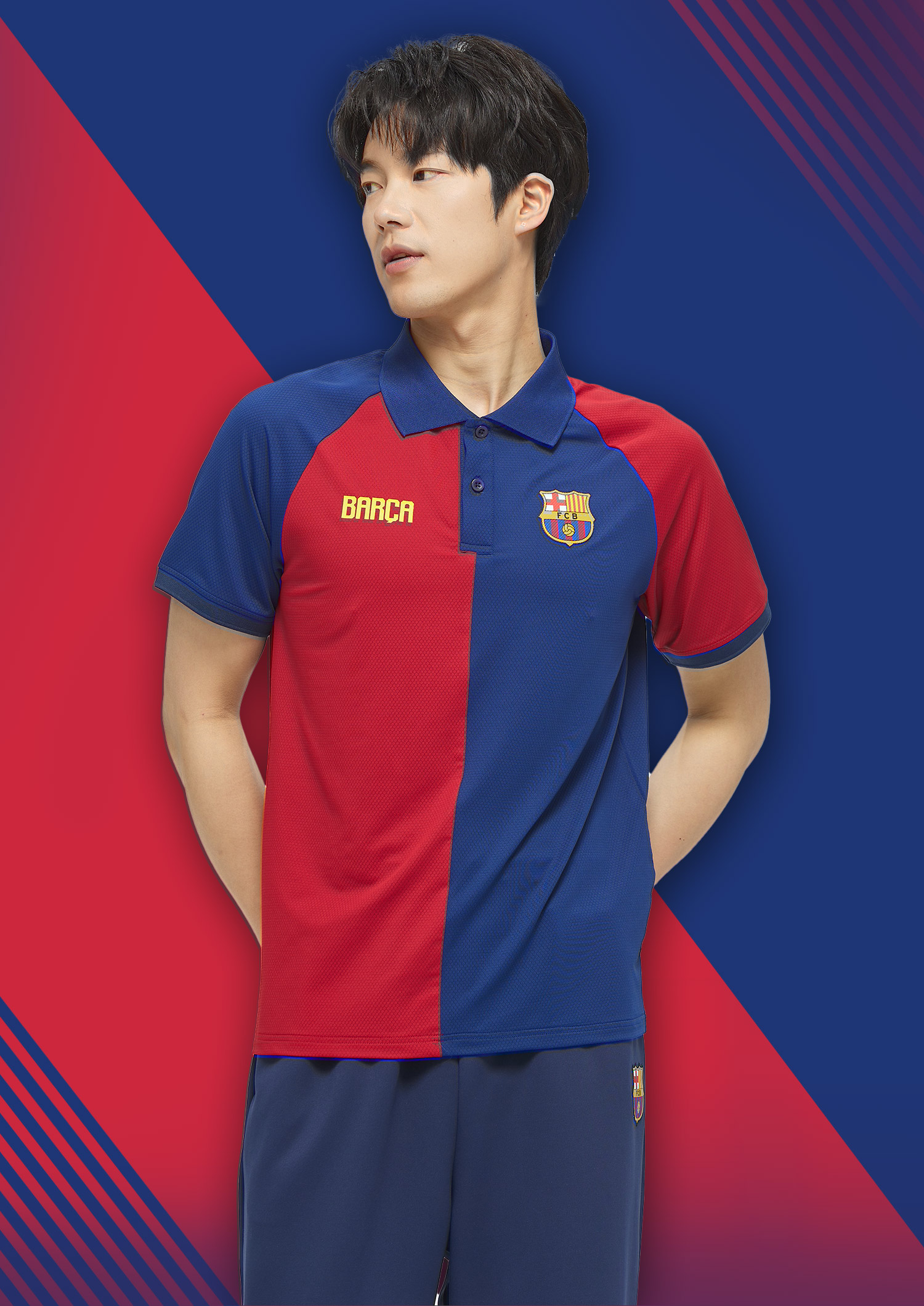 【官方正版】巴塞罗那俱乐部丨巴萨春夏红蓝拼色POLO衫速干透气球迷