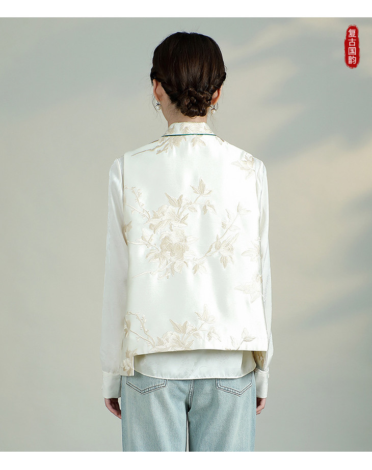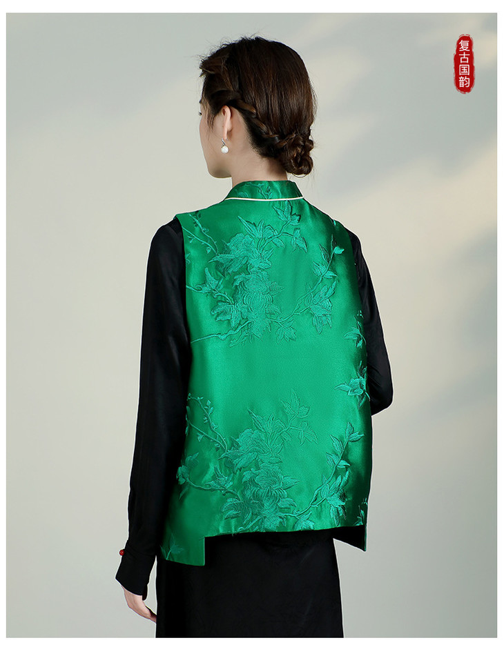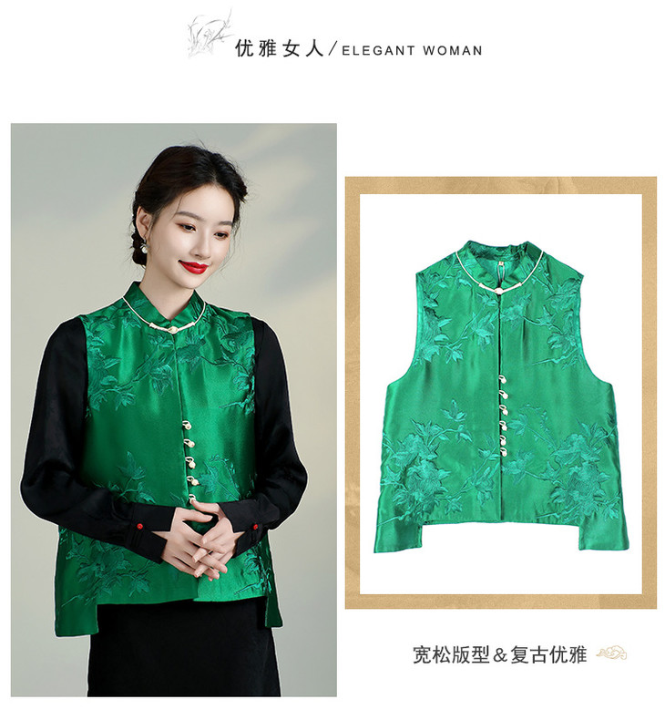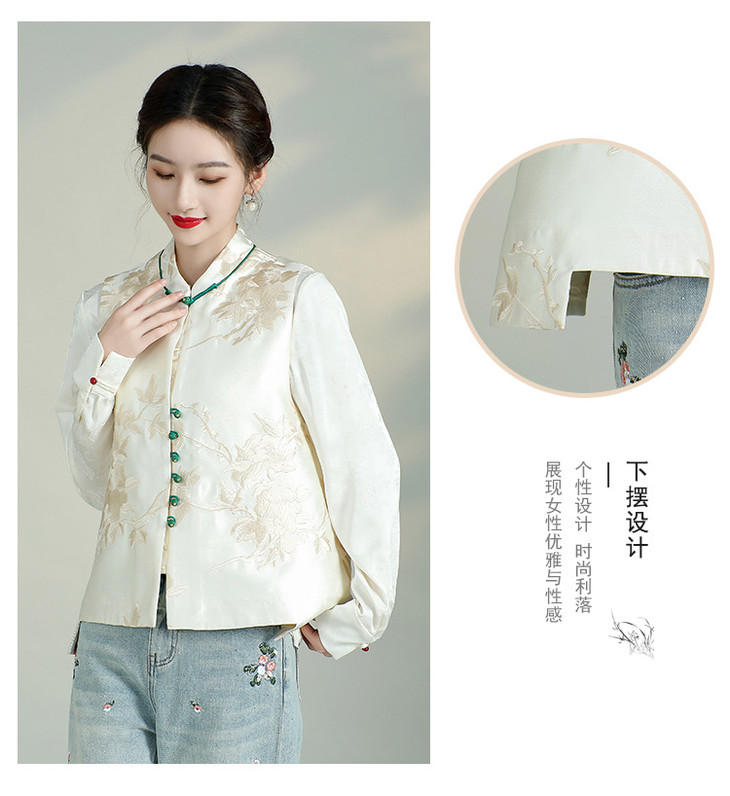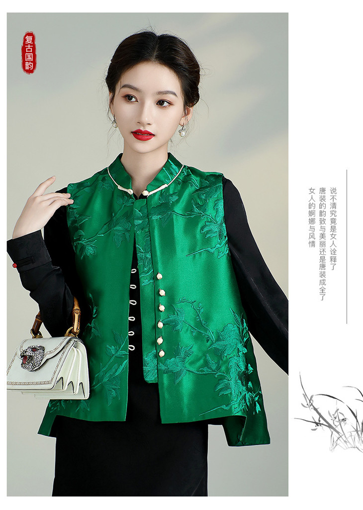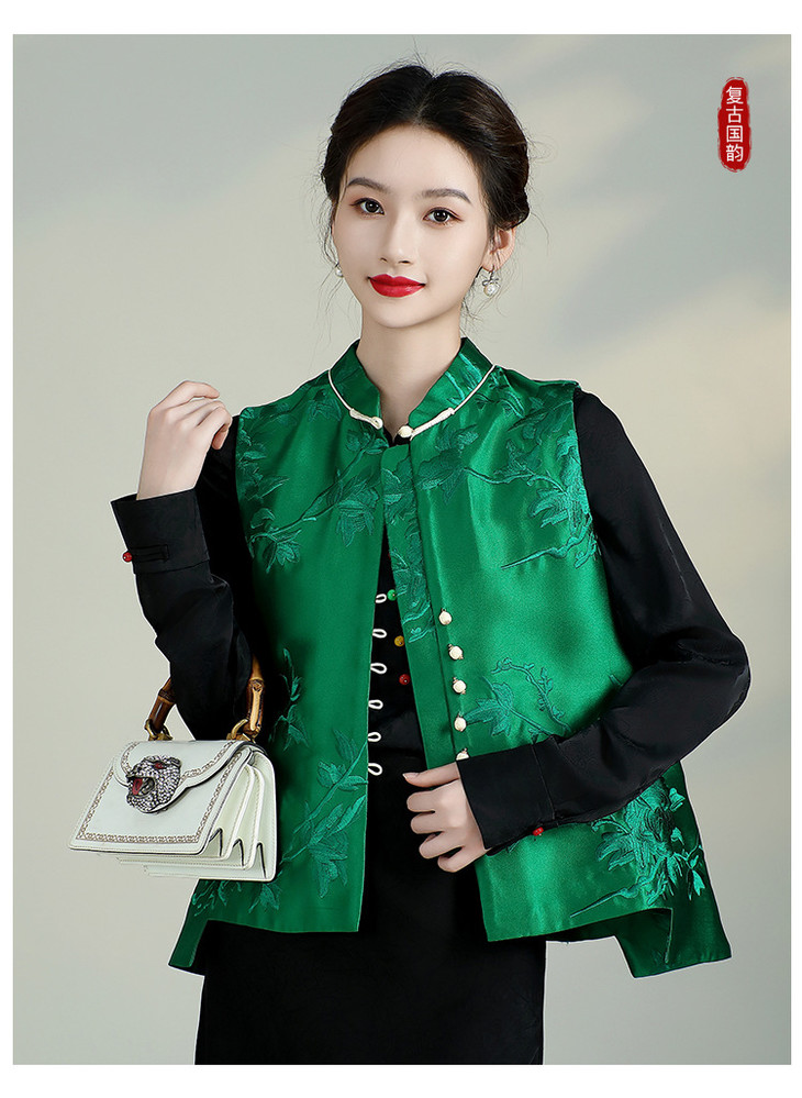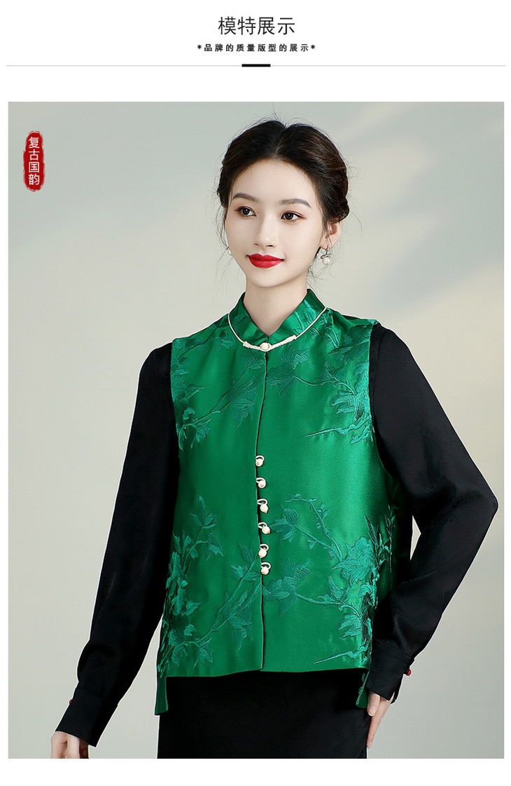 新中式复古立领坎肩显瘦唐装上衣,重工刺绣马甲背心AYK-QF-240227