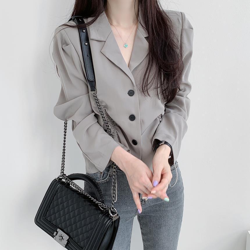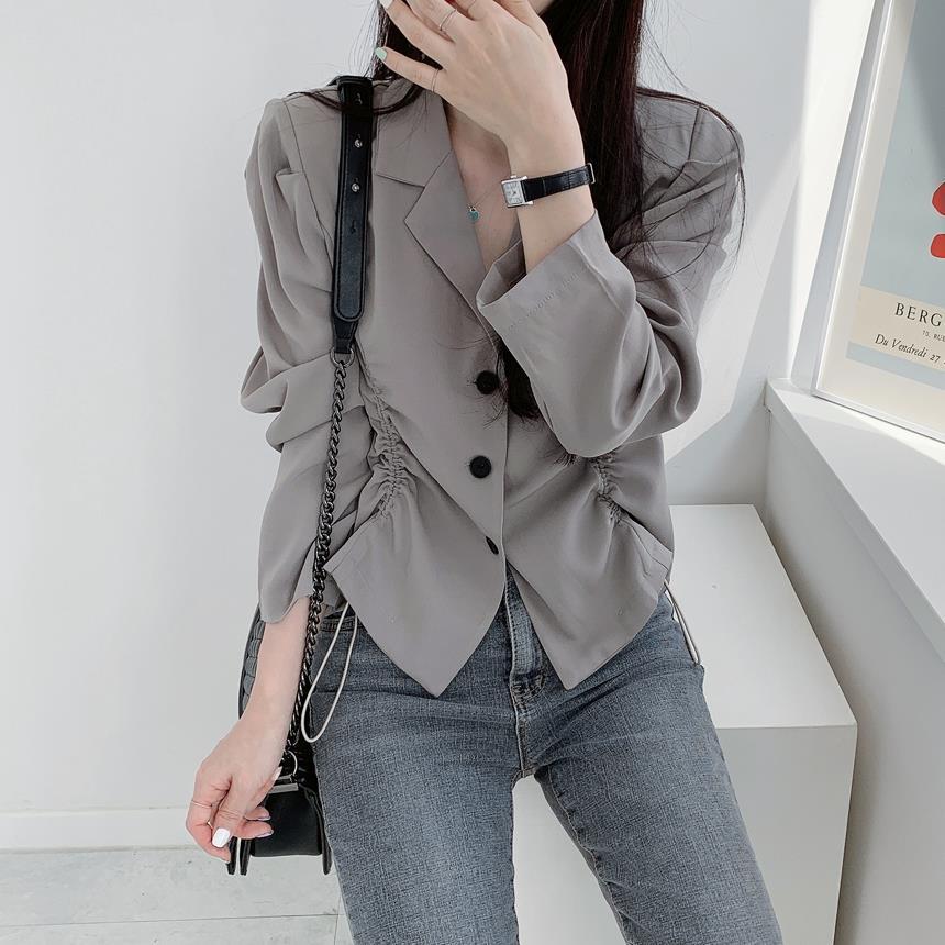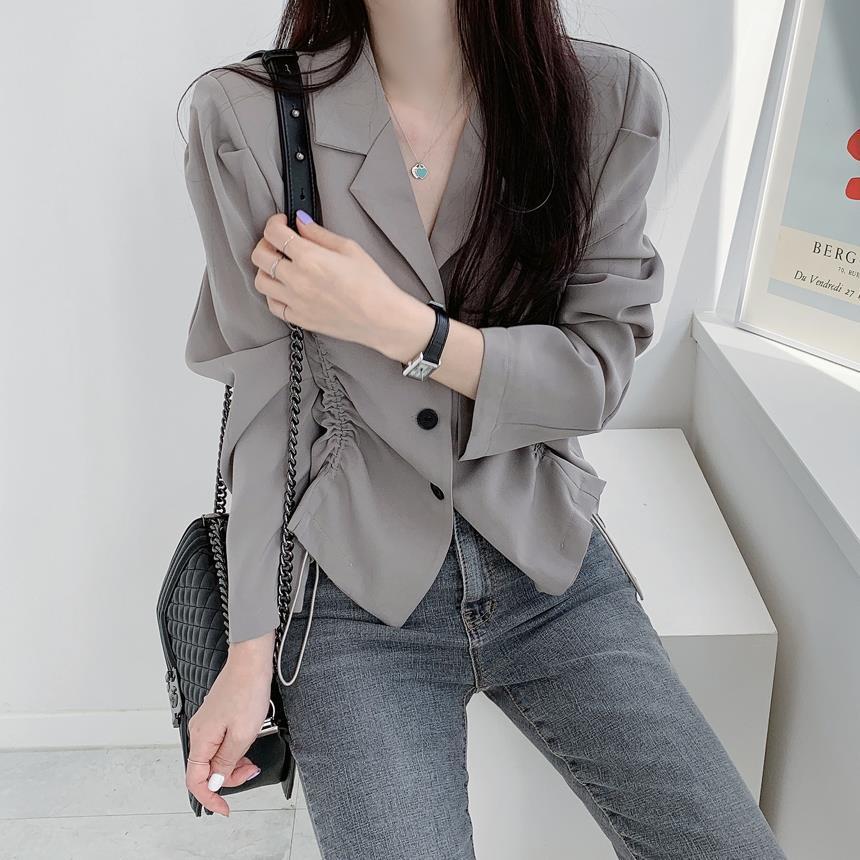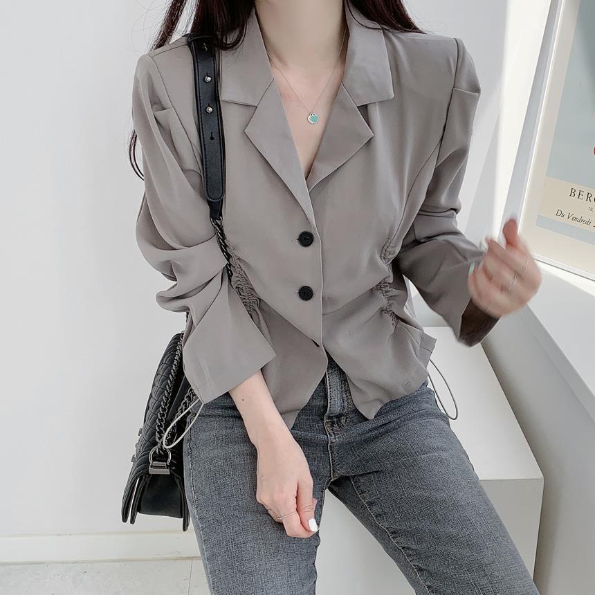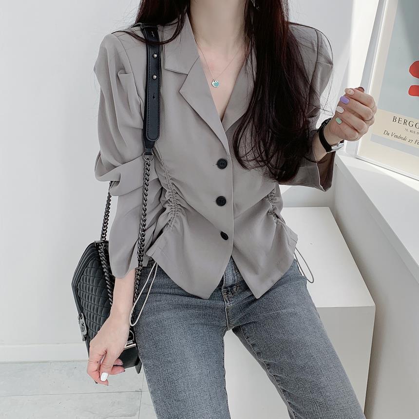 【韩国chic秋季西装外套】简约气质翻领三粒扣 抽绳收腰显瘦长袖西装外套上衣 优质面料不易变形 版型好显气质