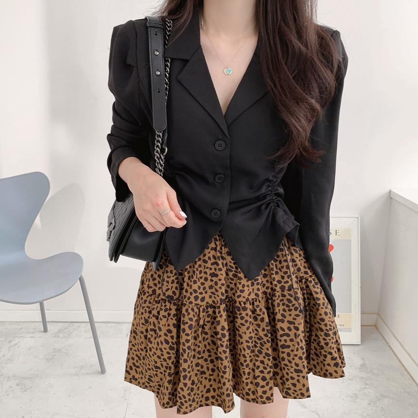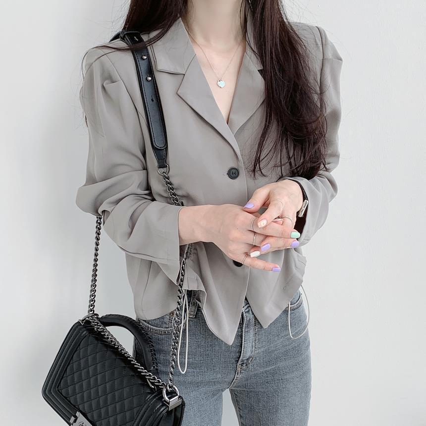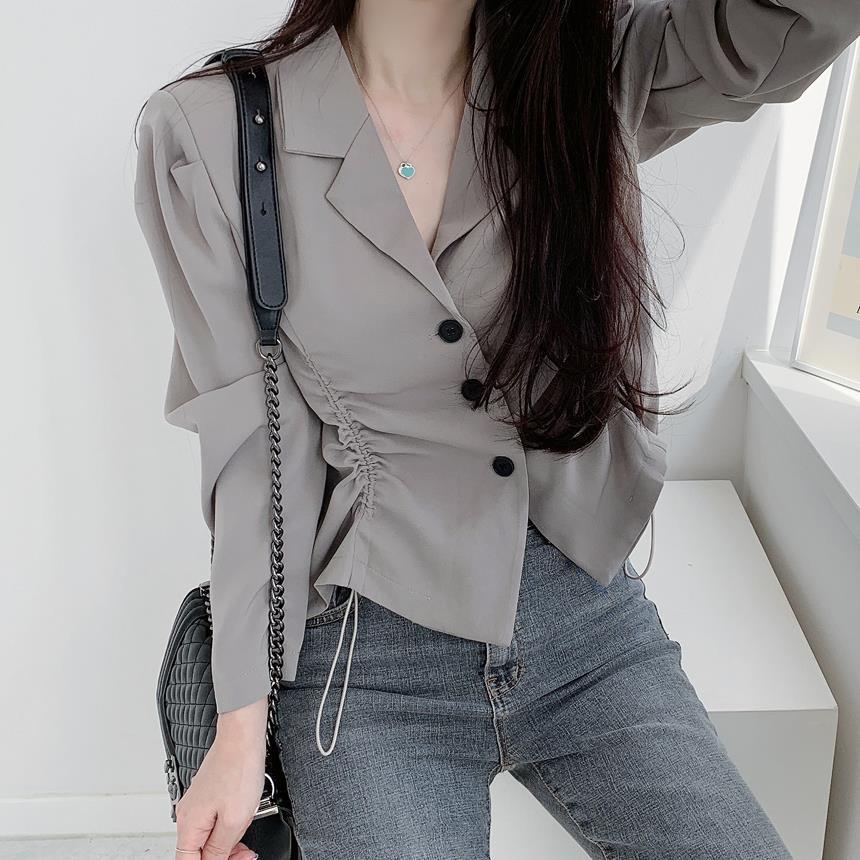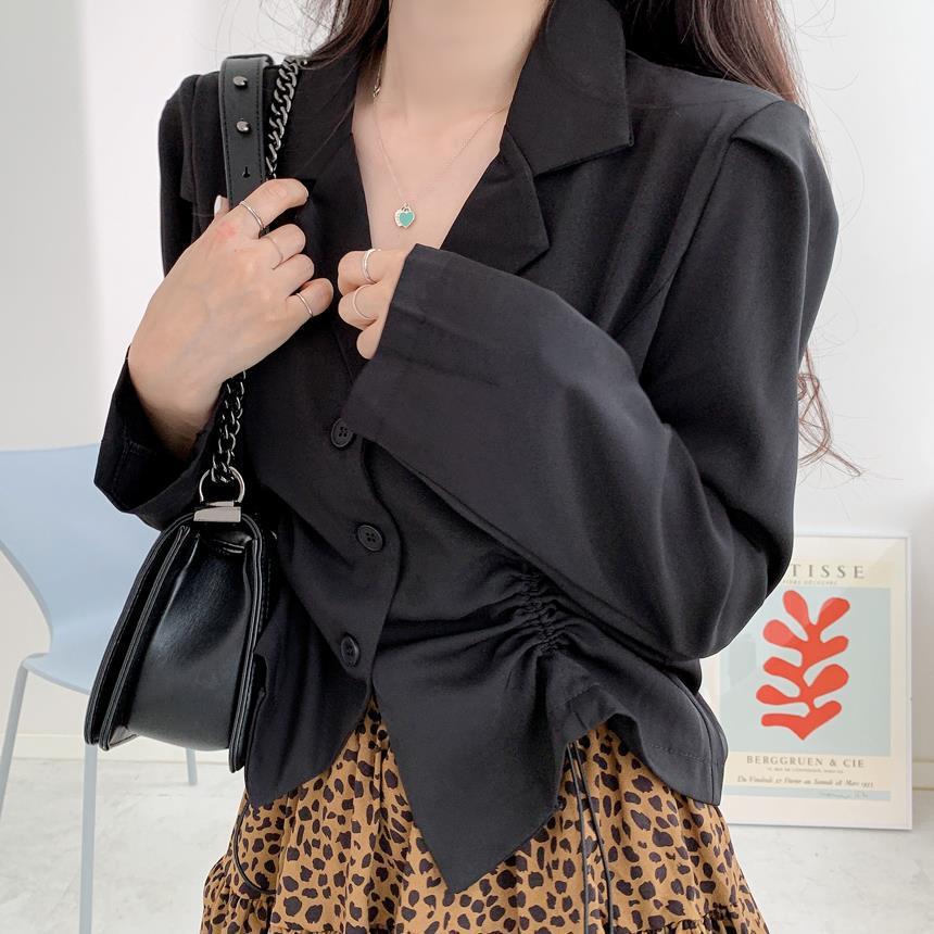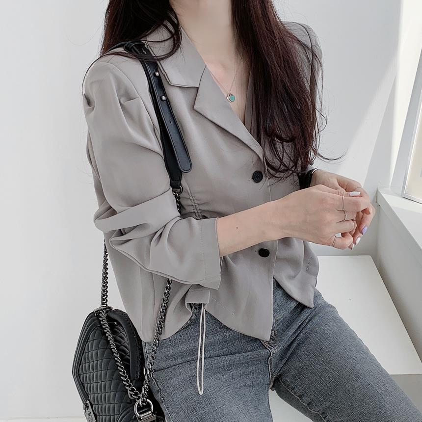 【韩国chic秋季西装外套】简约气质翻领三粒扣 抽绳收腰显瘦长袖西装外套上衣 优质面料不易变形 版型好显气质