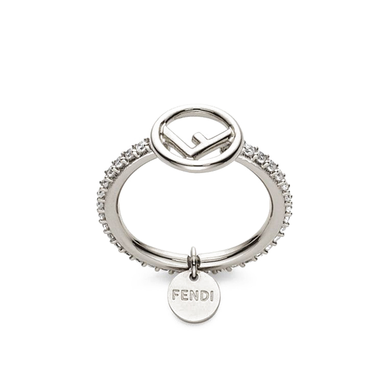 【包税】FENDI/芬迪 2021春夏新款 F IS FENDI系列 女士钯色金属徽标白色锆石戒指8AG7886DMF0GGH