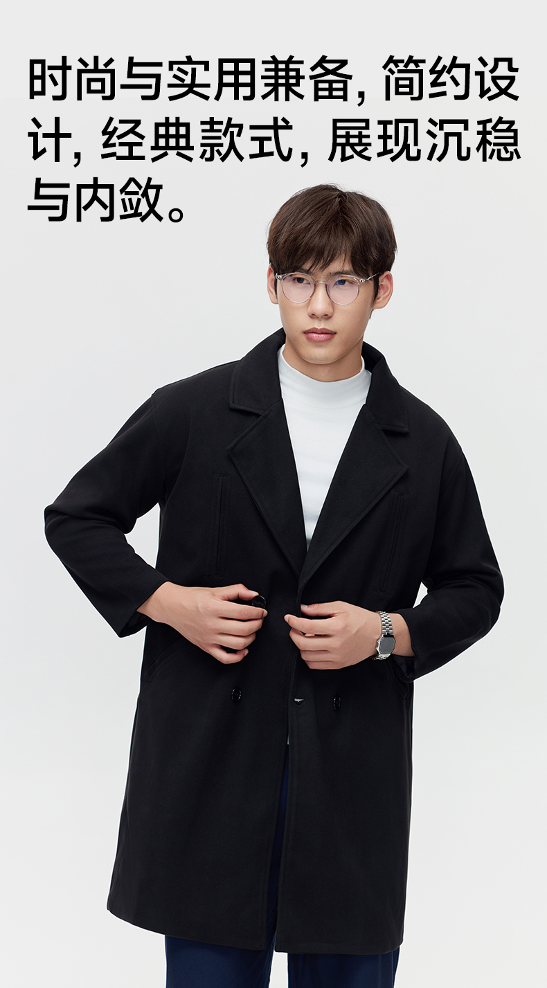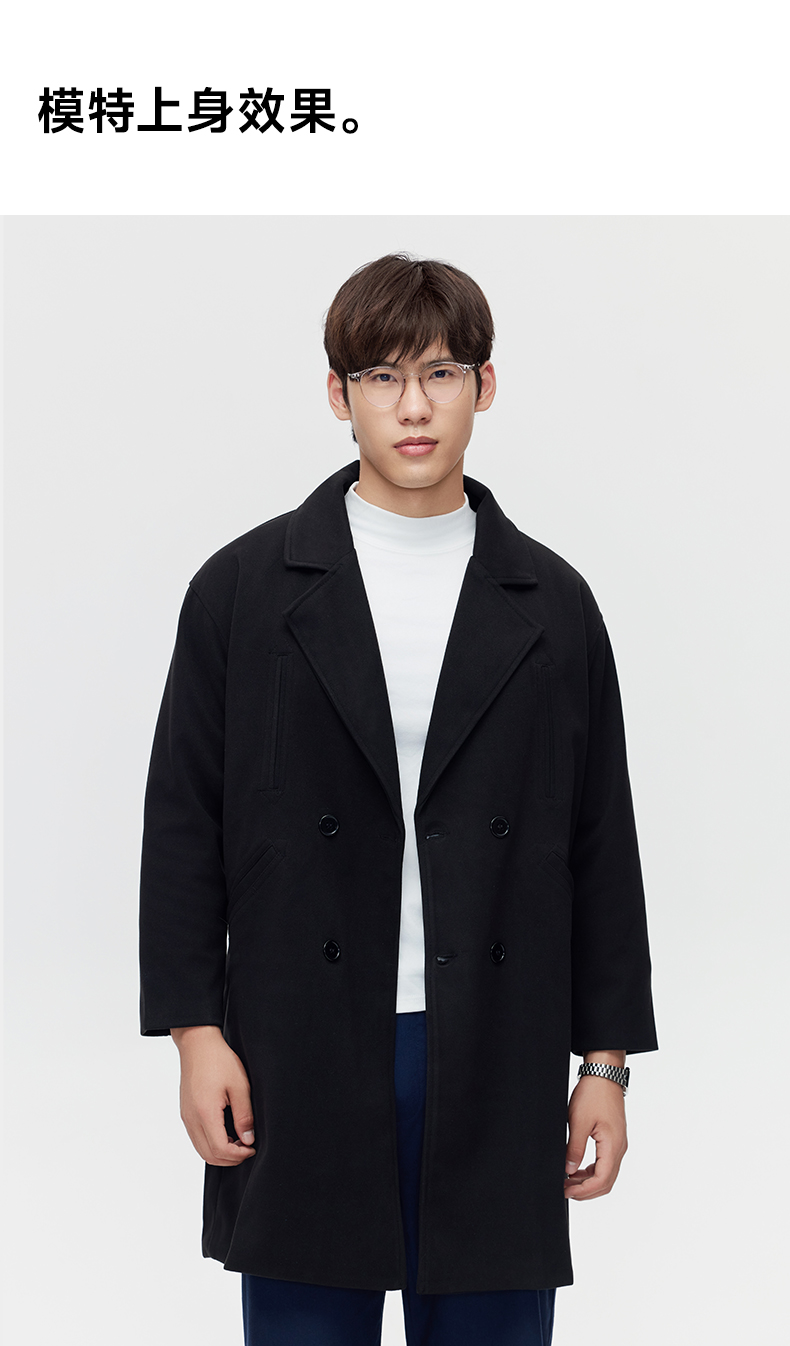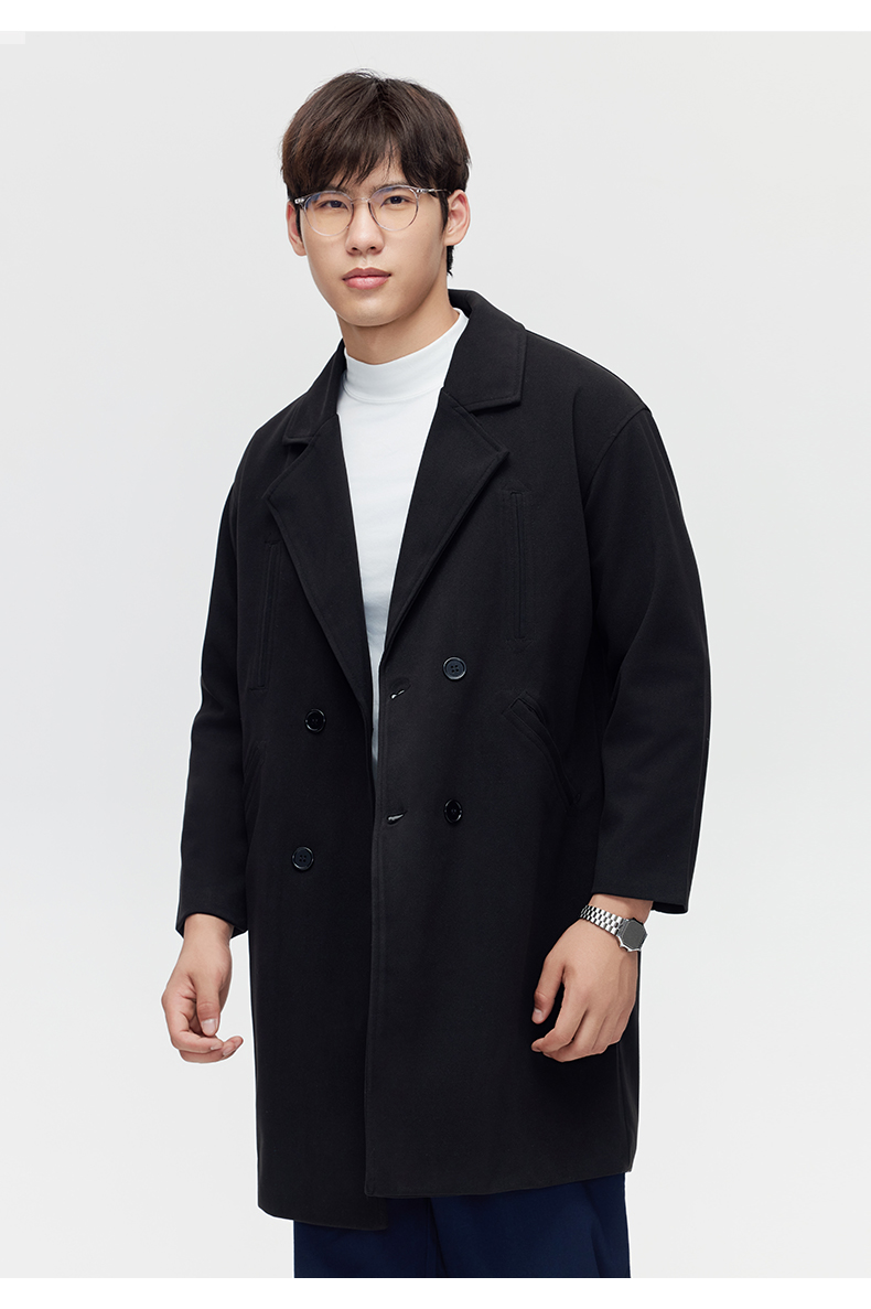 赤兔嗨购秋冬季毛呢大衣男中长款西装领双排扣呢子风衣外套加厚ins潮流