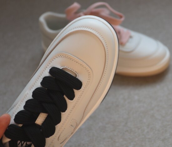 粉鞋带和黑鞋带 鞋面/意产小牛皮 内里/意产小羊皮 鞋底/Tpu透色耐磨大底