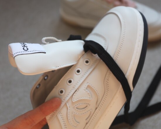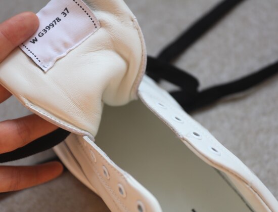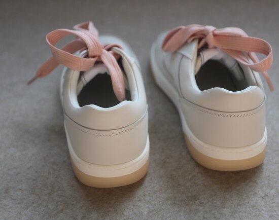 但 鞋带得绑紧些 不然穿薄袜时 会有点掉跟 鞋型很秀气 37码 不会显脚大