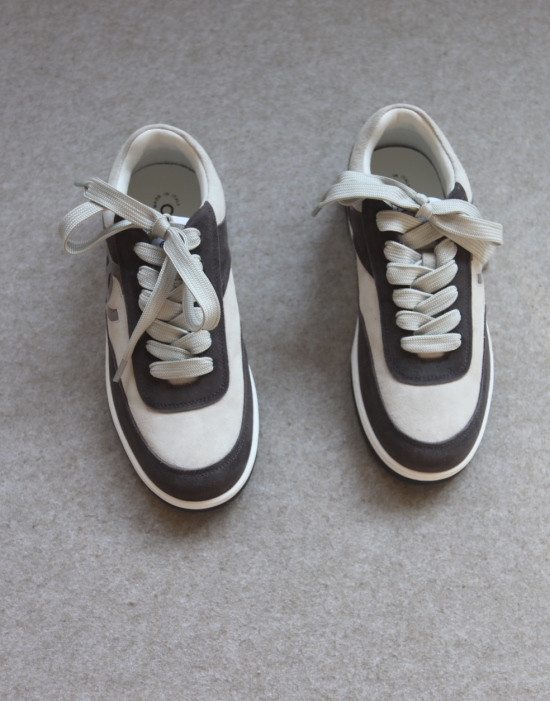 灰拼的 鞋面是意产小牛的反绒皮 内里和鞋底 同上 哈~