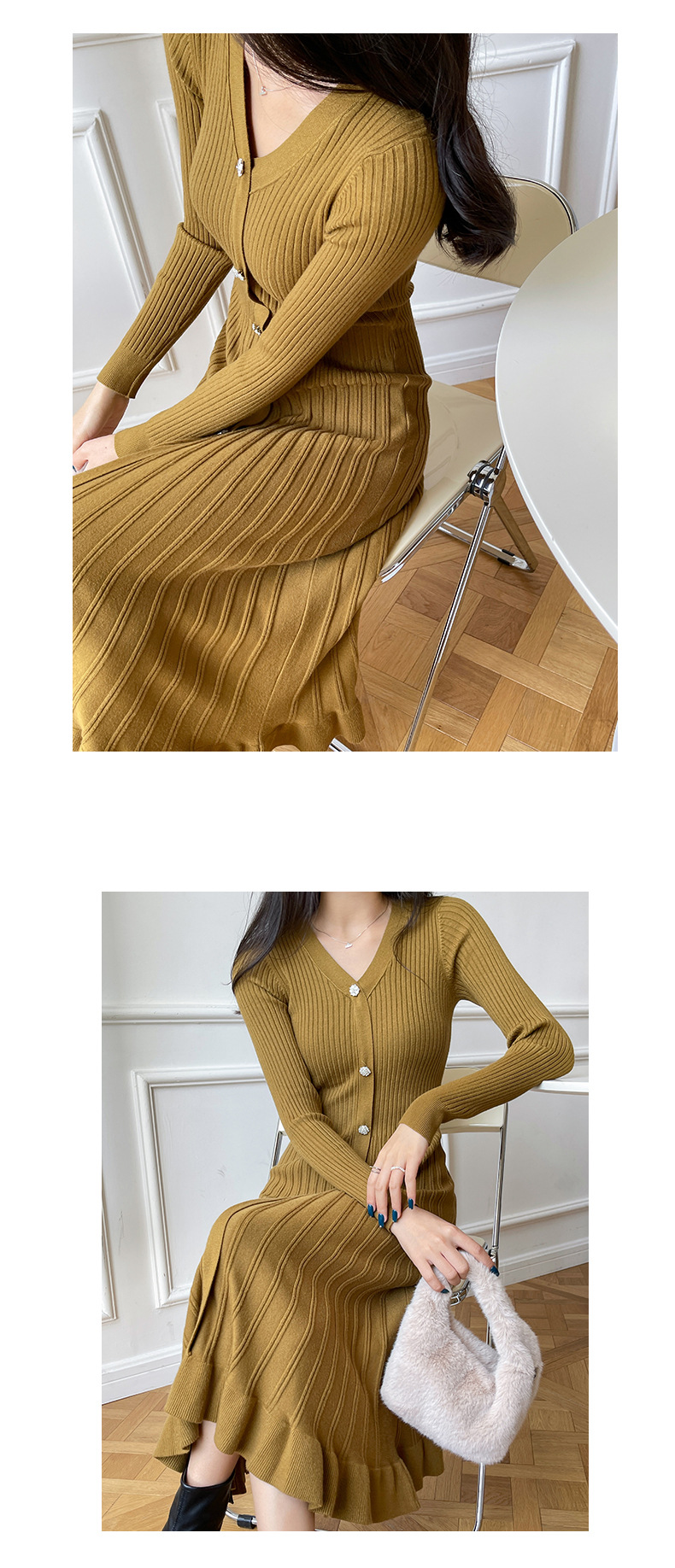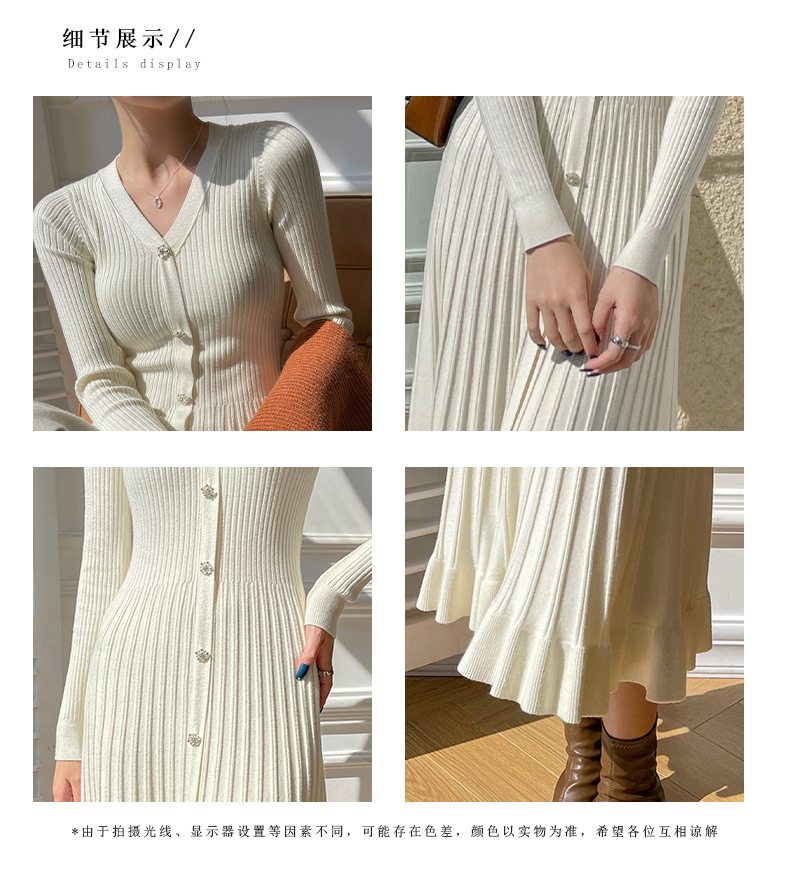 崔秀英明星同款时尚针织连衣裙女过膝长款减龄气质显瘦毛衣裙