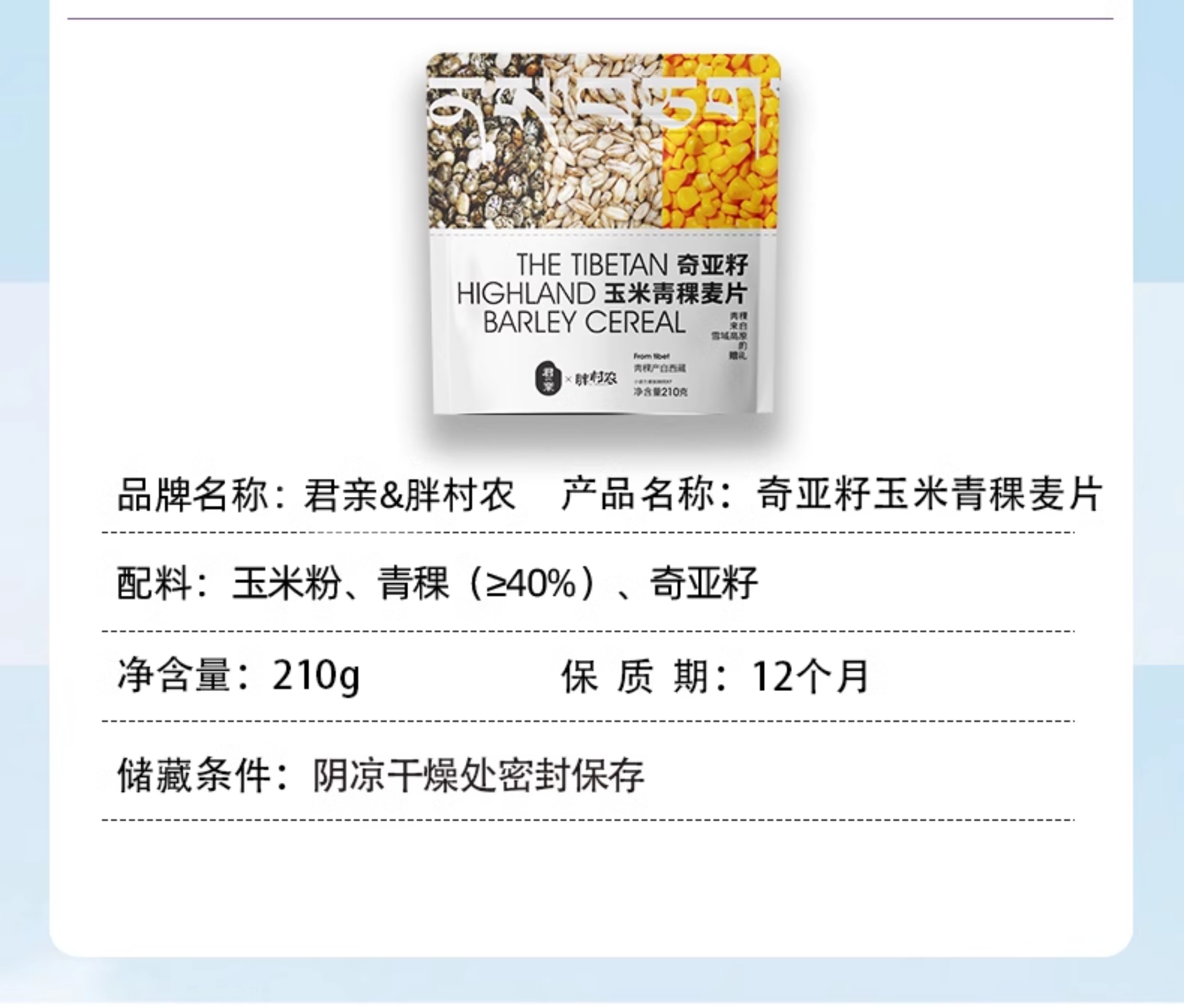 西藏君亲奇亚籽玉米青稞麦片 来自青藏高原的礼物 比澳洲麦片还稀有