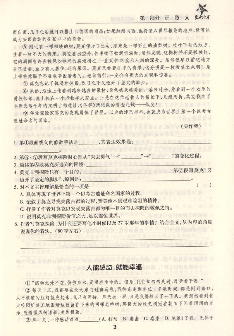 交大之星 中考语文专项高分突破 现代文阅读 上海交通大学出版社 初三中考语文总复习满分冲刺资料 记述文说明文挑战满分星级训练