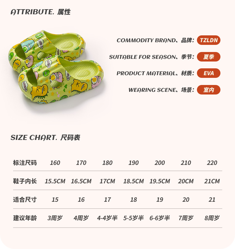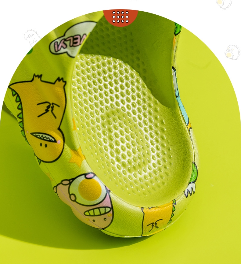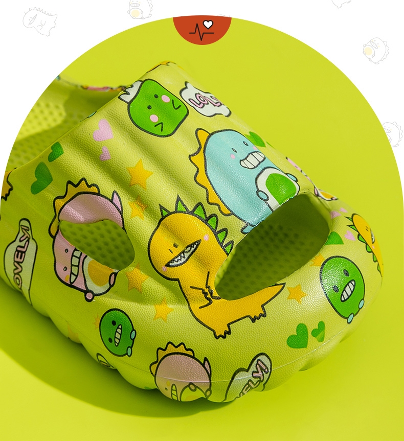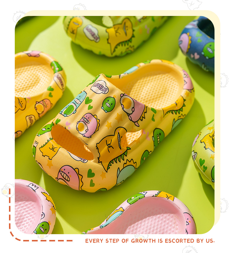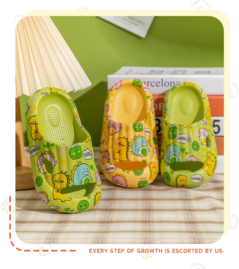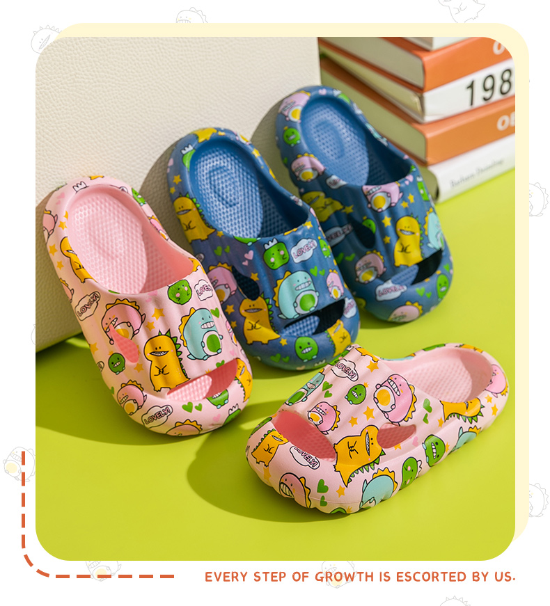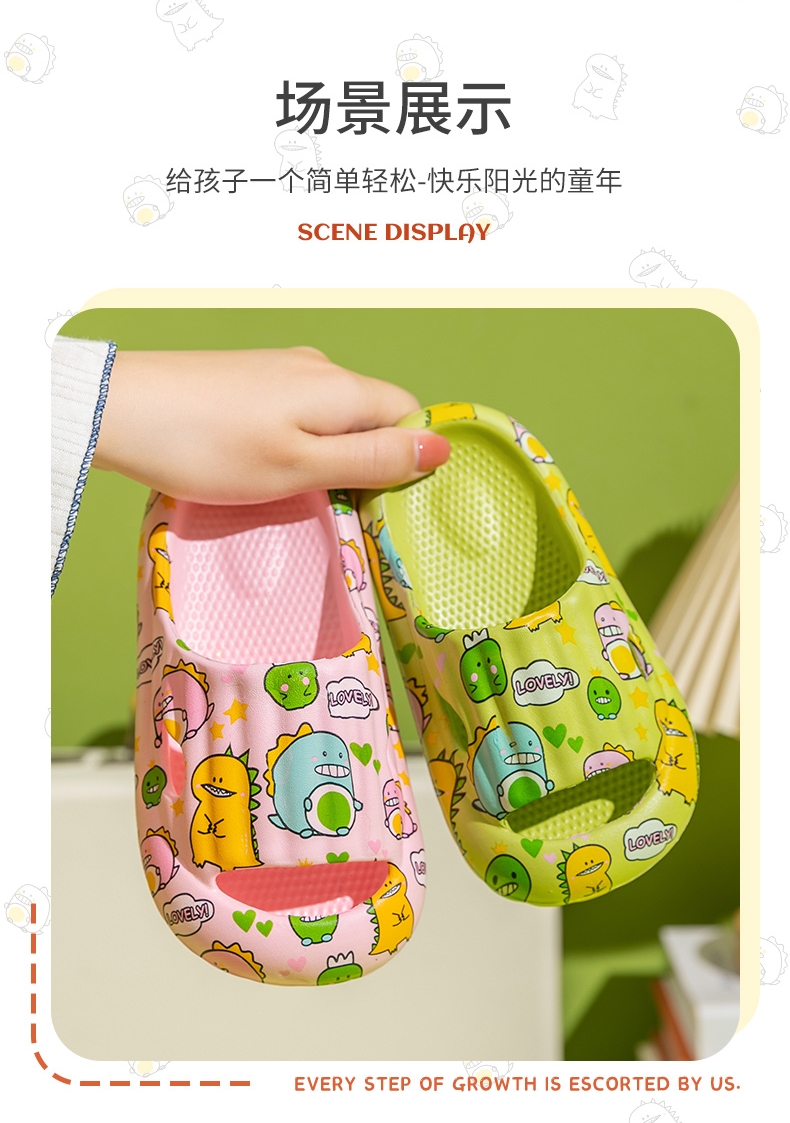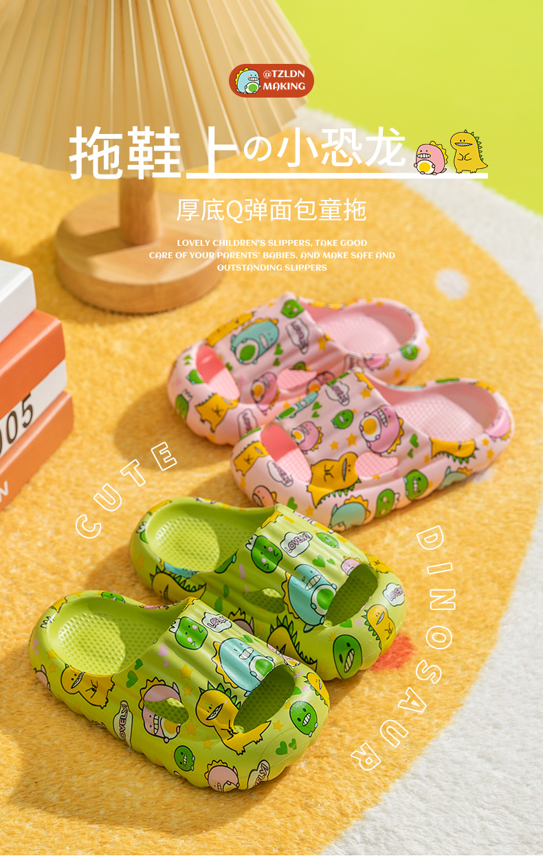 儿童拖鞋最重要的就是保护宝宝柔软的小脚丫, 这款拖鞋以圆弧设计加强保护宝宝脚趾, 加厚鞋底Q弹防滑,足底抓地感强劲,提升宝宝站立时的平衡力! 不仅如此,萌萌哒可爱小恐龙图案设计,也会让宝贝更容易喜欢上拖鞋哦~