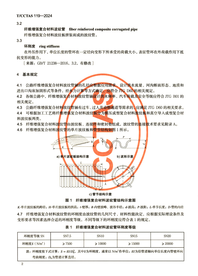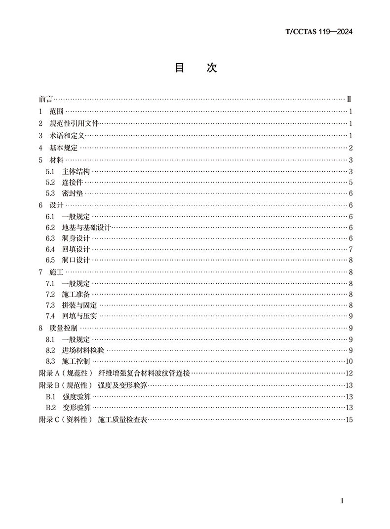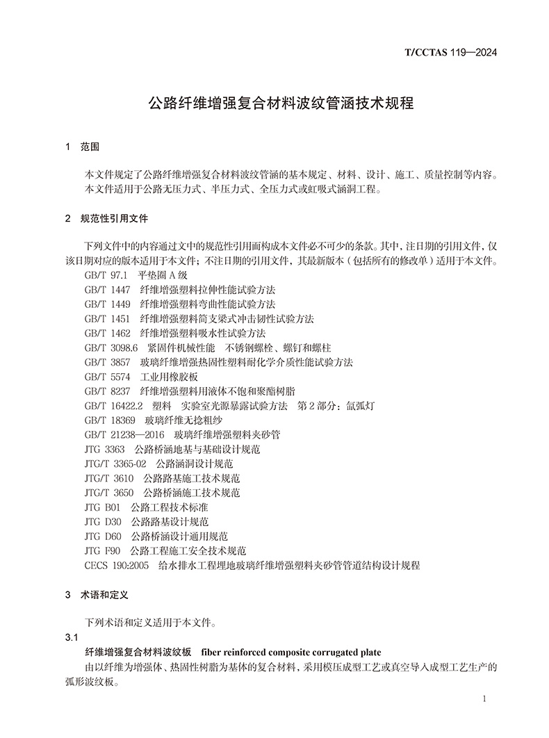 书名:公路纤维增强复合材料波纹管涵技术规程T/CCTAS 119—2024