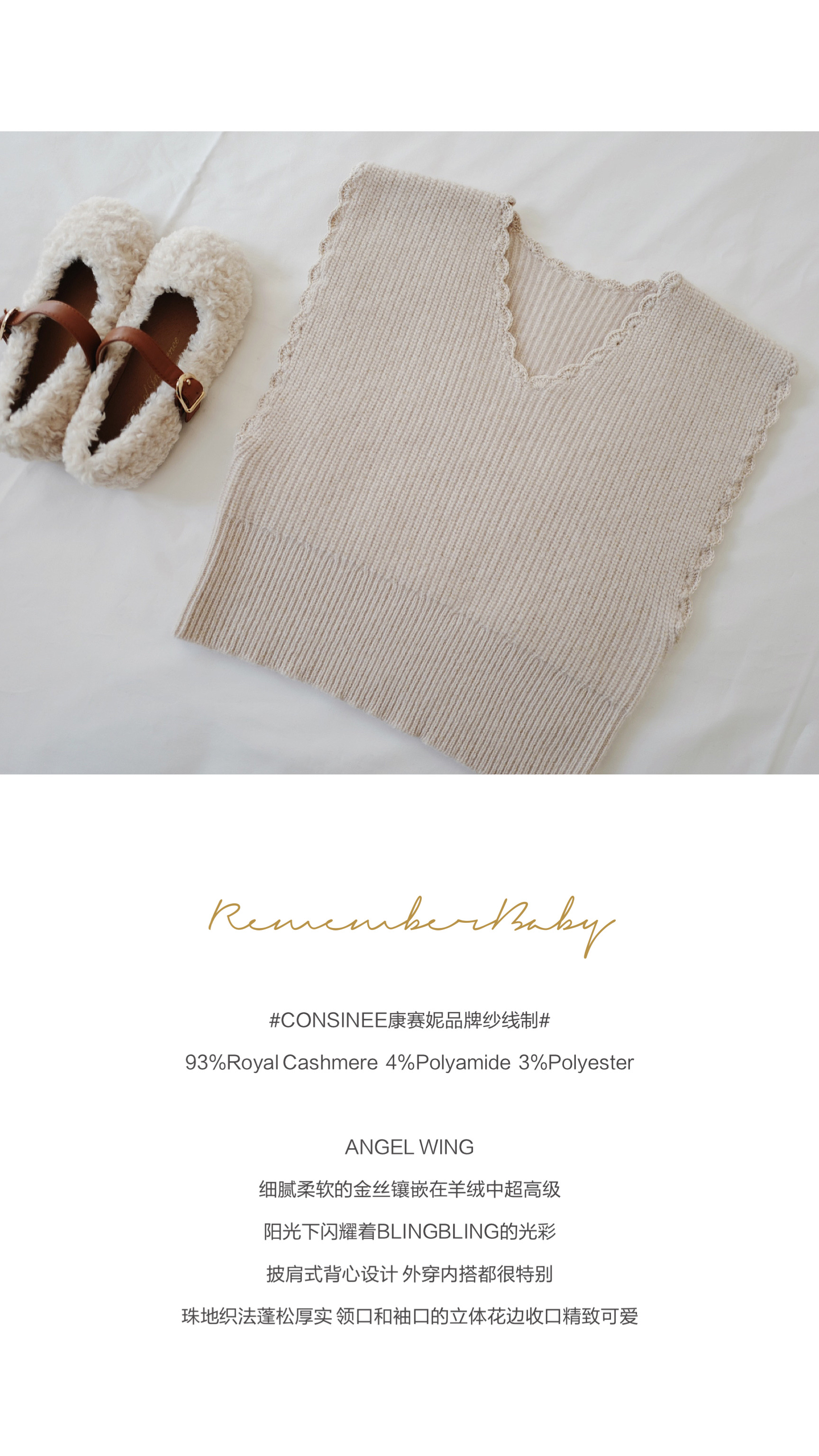 现货 / ANGEL WING | 亲子款 康赛妮品牌纱线制 BLINGBLING金丝羊绒立体花边披肩式背心