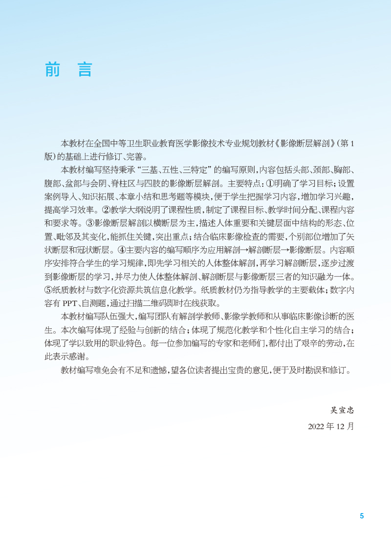 影像断层解剖 第2版 十四五规划教材 全国中等卫生职业教育教材 供医学影像技术专业用 吴宣忠主编 人民卫生出版社9787117341691