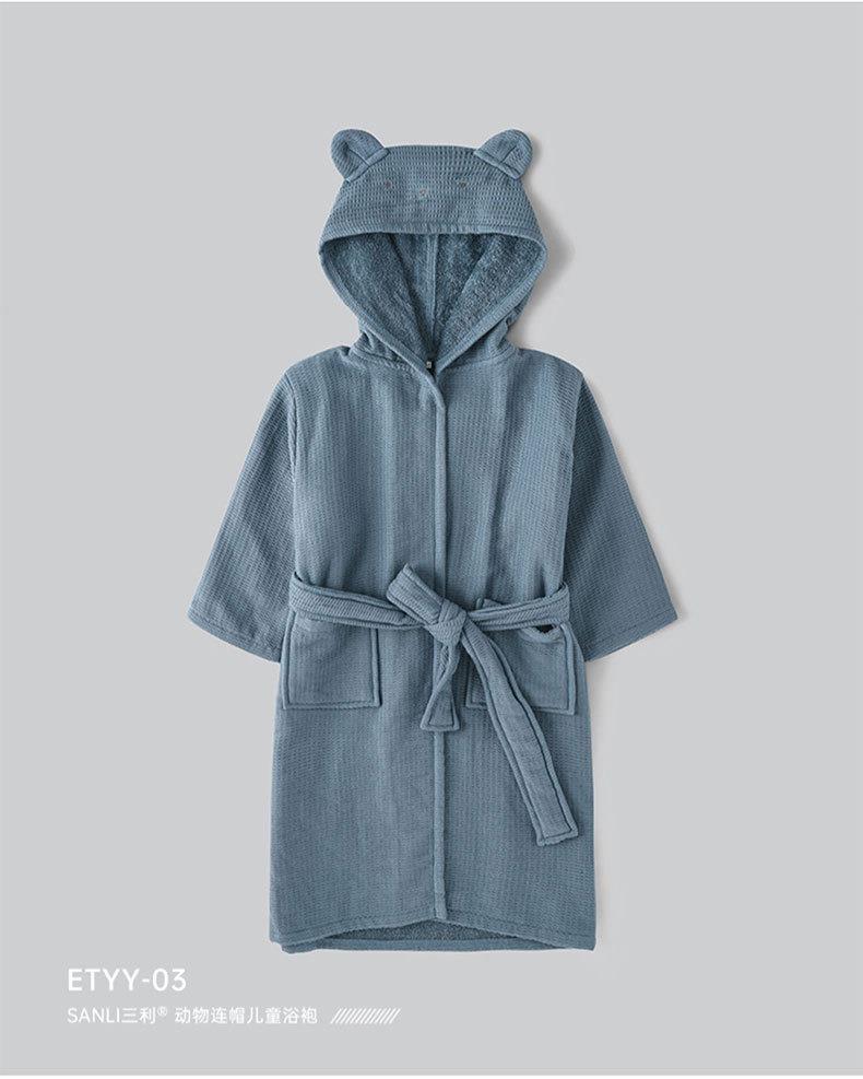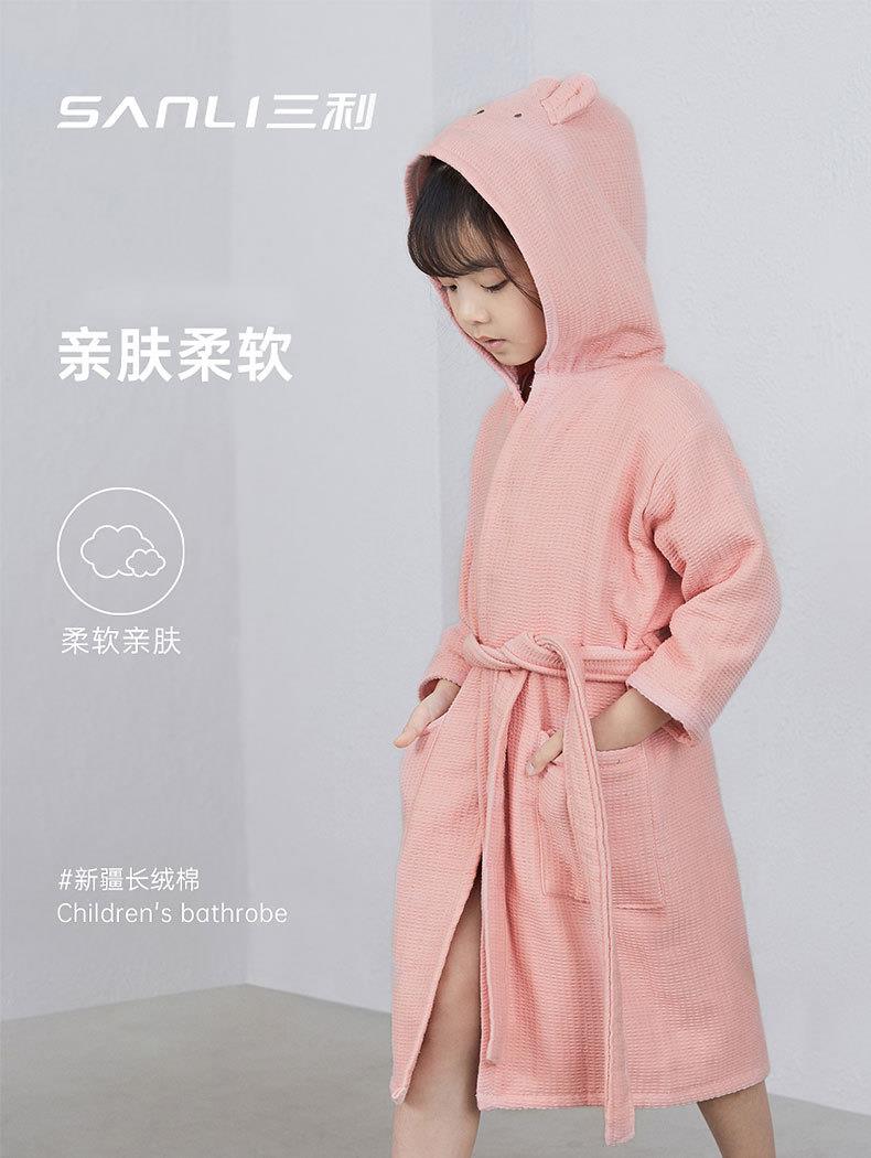 三利毛巾跨境全棉毛巾料睡袍长袖带帽亲子浴衣睡衣[新款儿童浴袍]