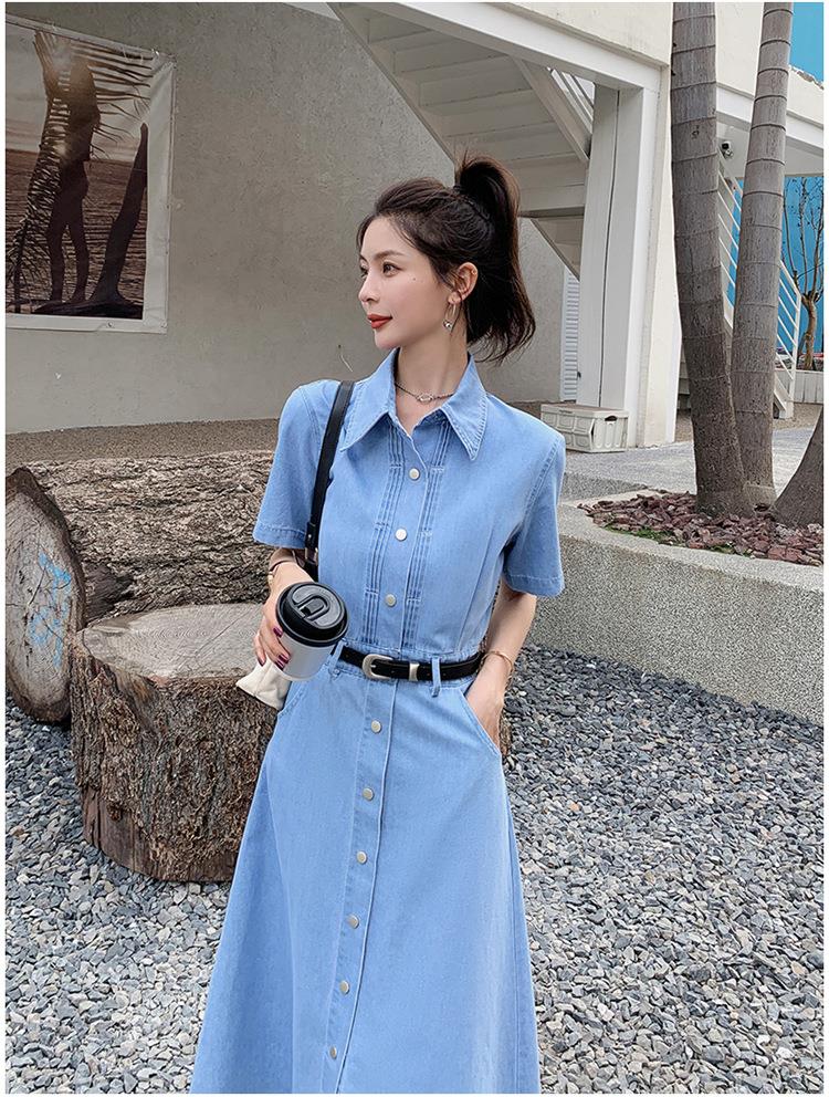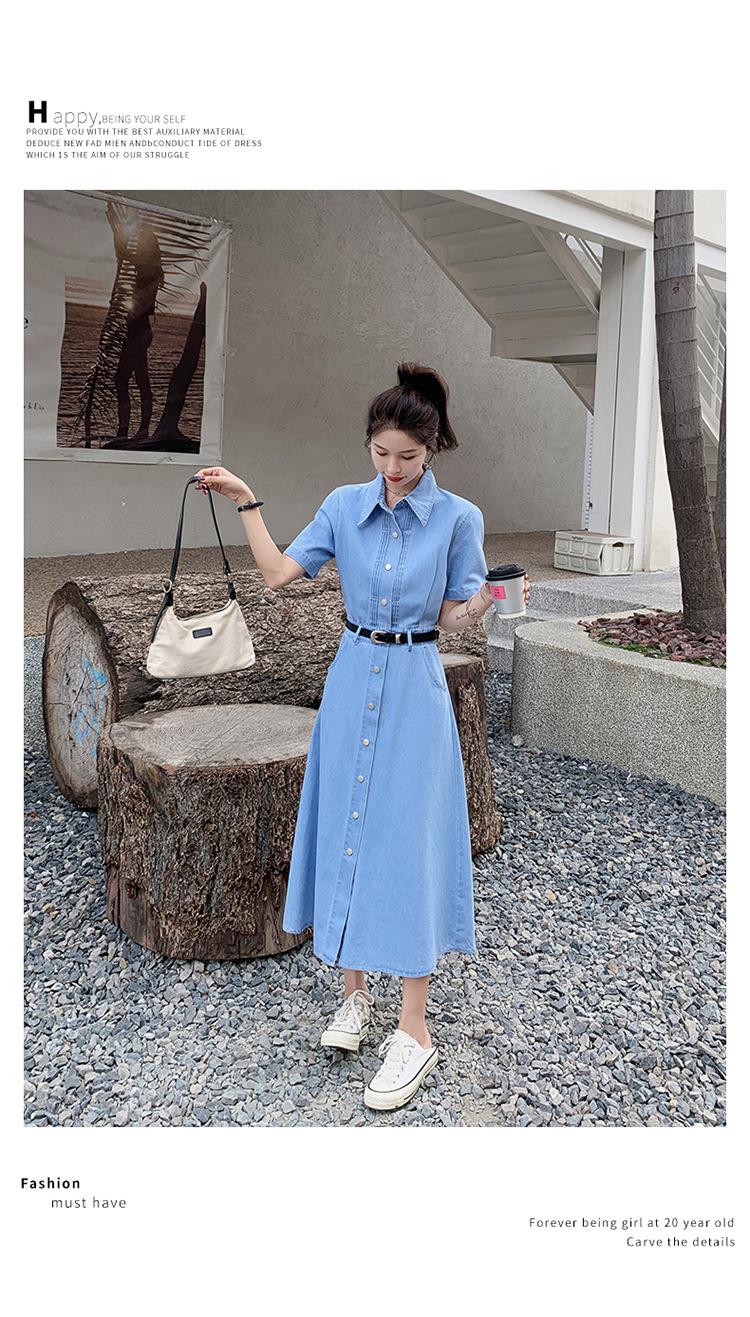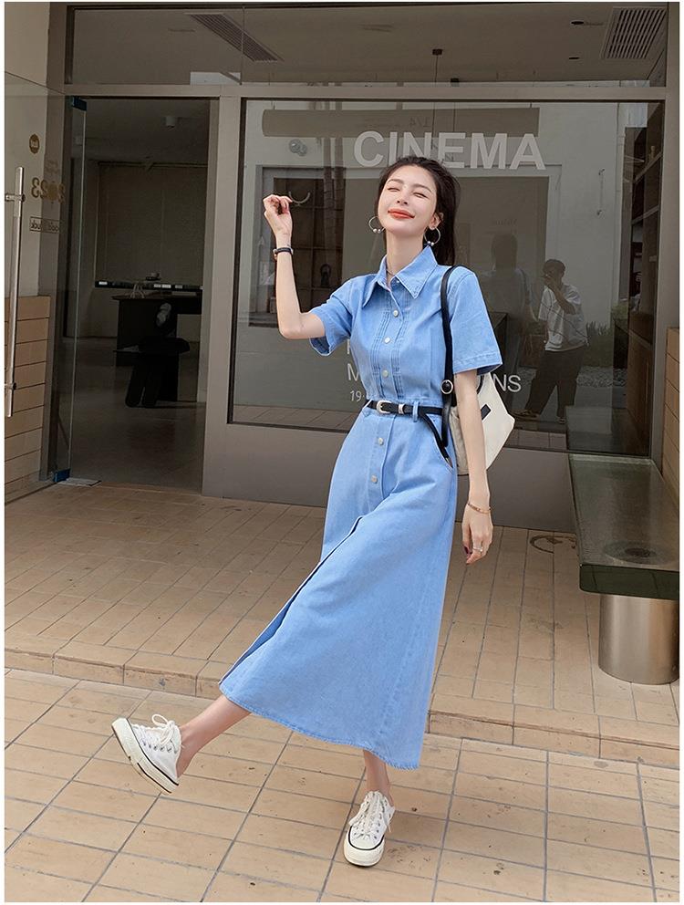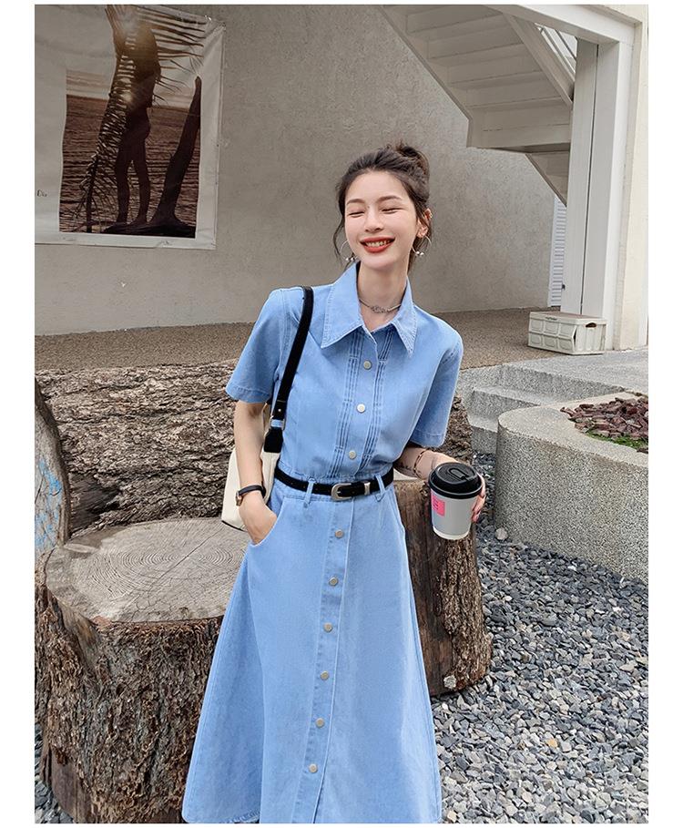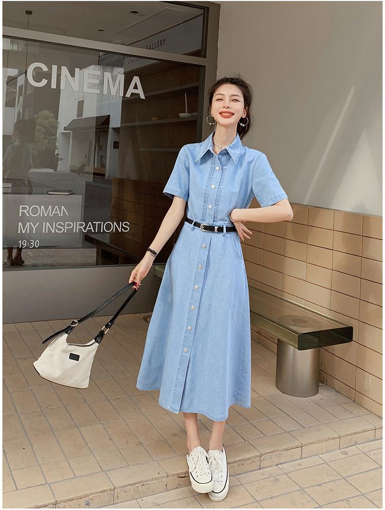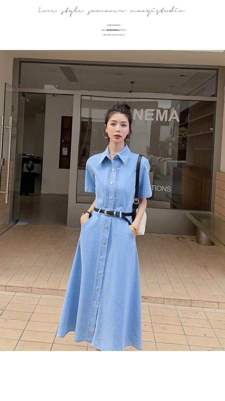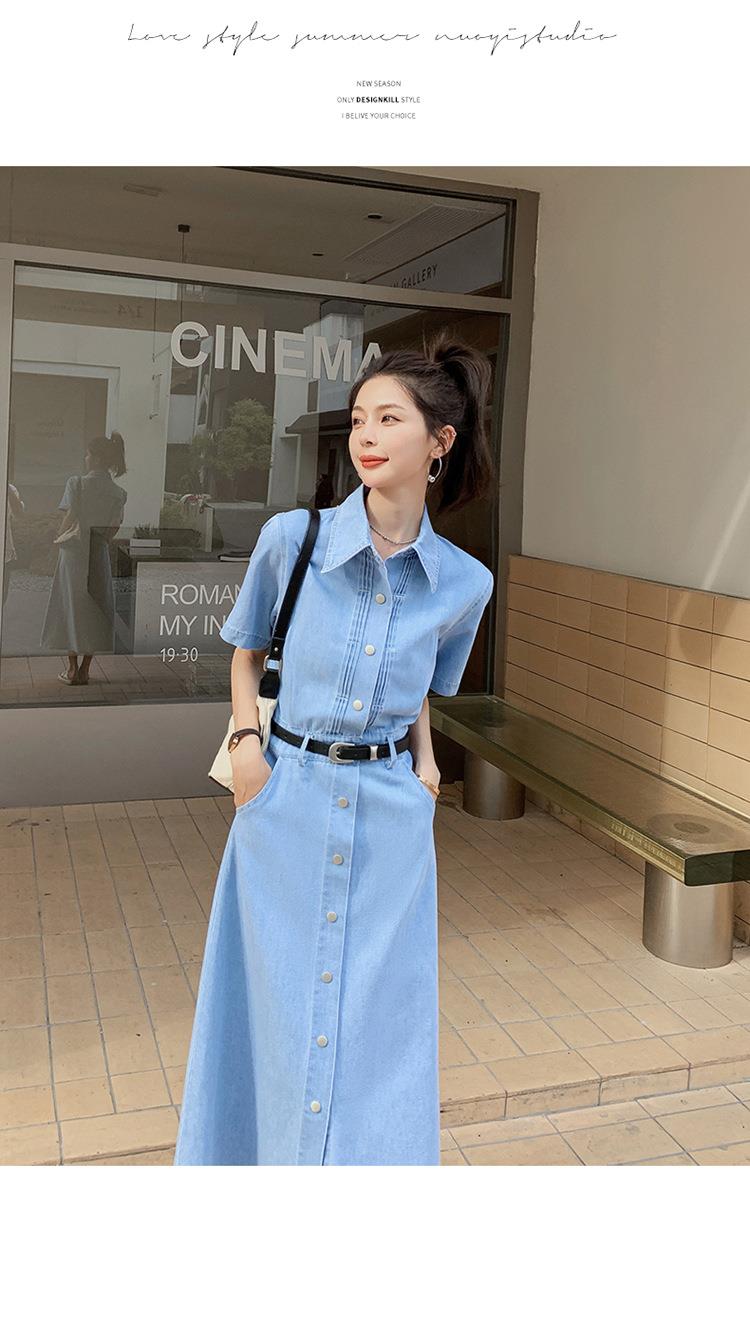 2023新款衬衫新中式短袖法式牛仔连衣裙子夏季女装a字裙长裙批发