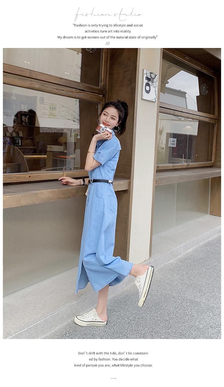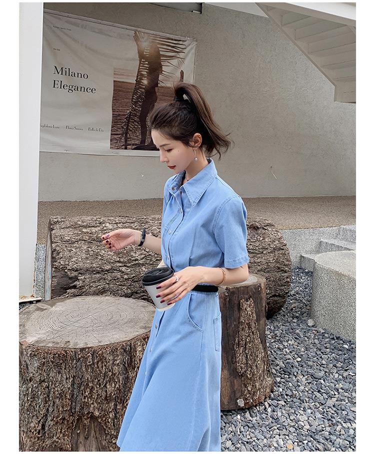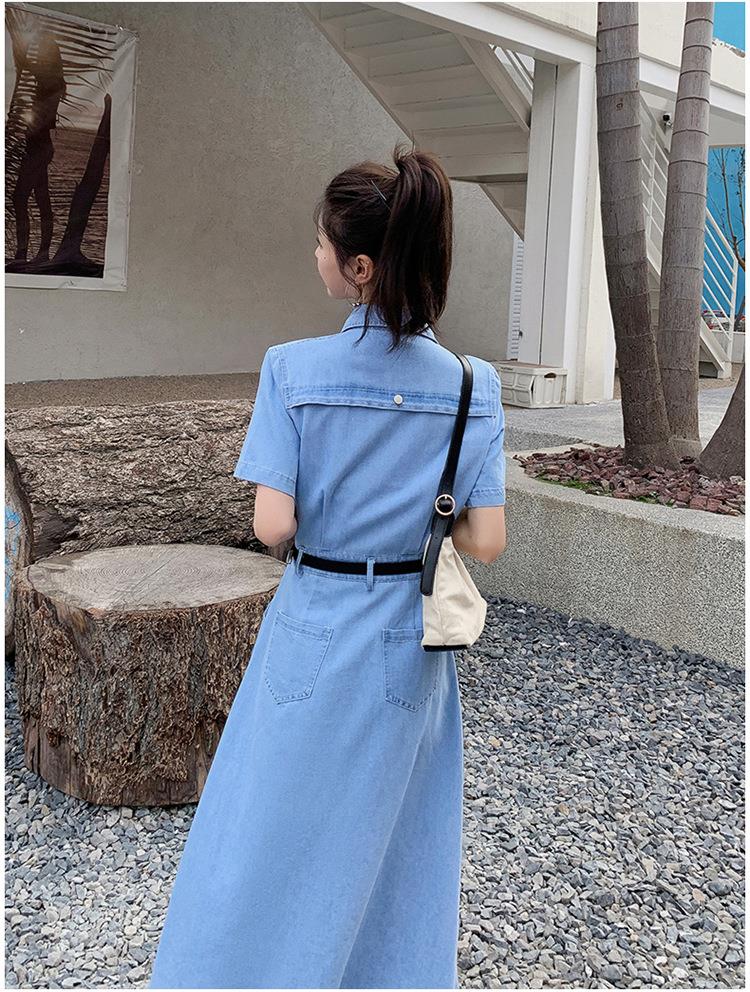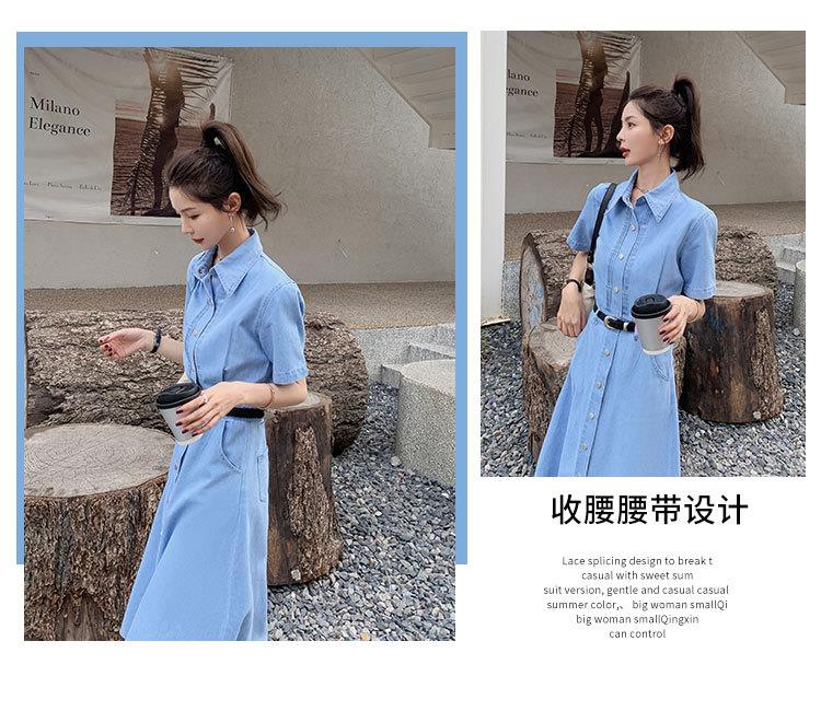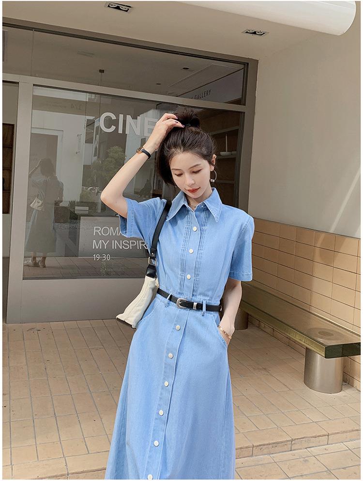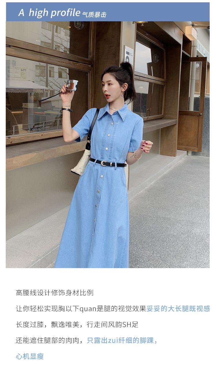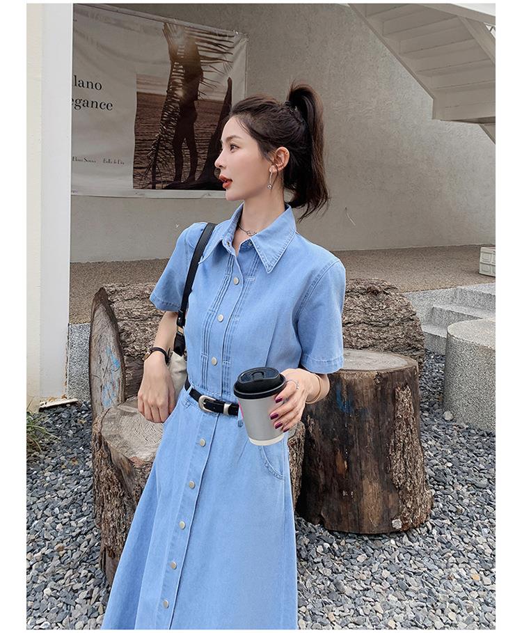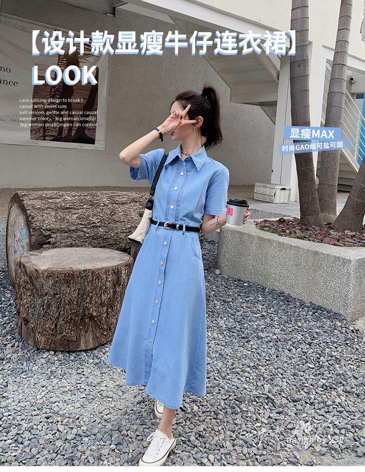 2023新款衬衫新中式短袖法式牛仔连衣裙子夏季女装a字裙长裙批发